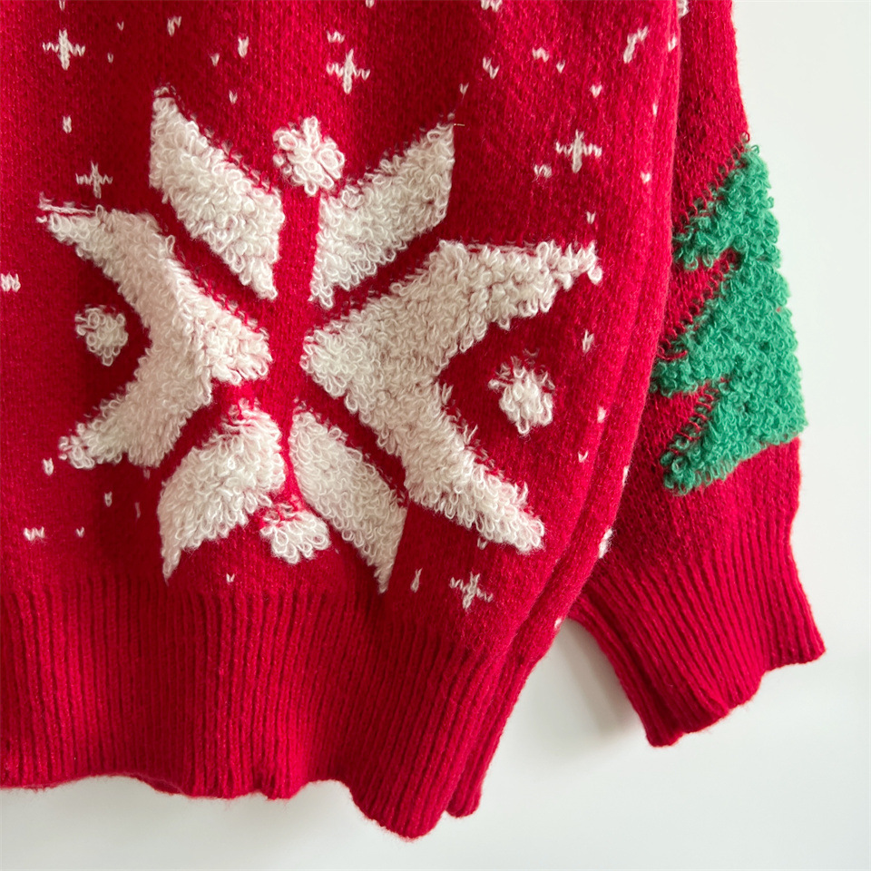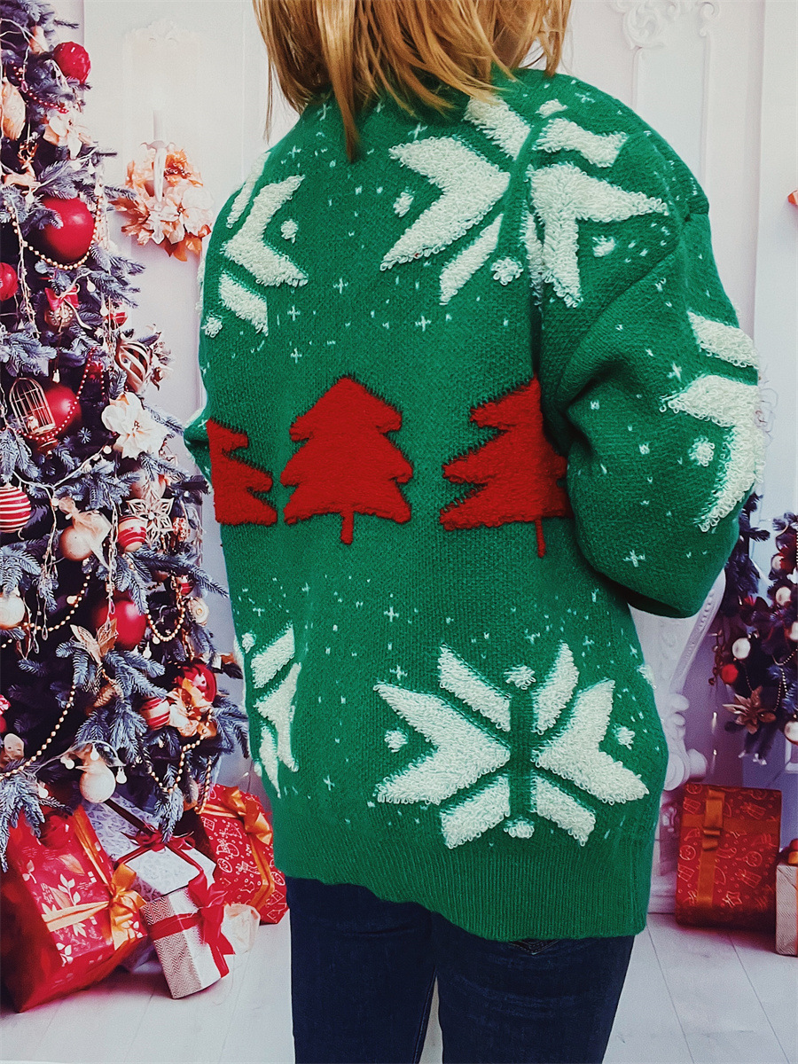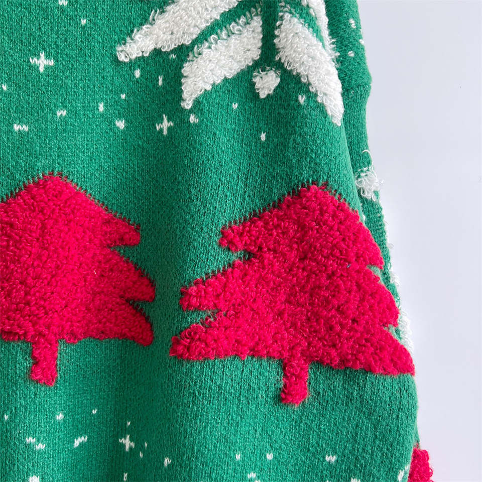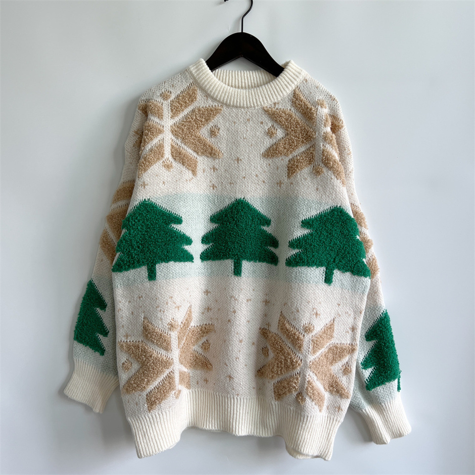 Copy| Product Name | Autumn & Winter Christmas Tree Jacquard Round Neck Long Sleeve Knitted Pullover Sweater |