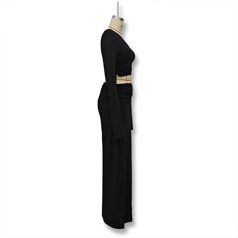 Copy| Product Name | Autumn/Winter Women's Chic Solid Color Slash Shoulder One-Shoulder Crop Long Sleeve Top with Bodycon Skirt Set |