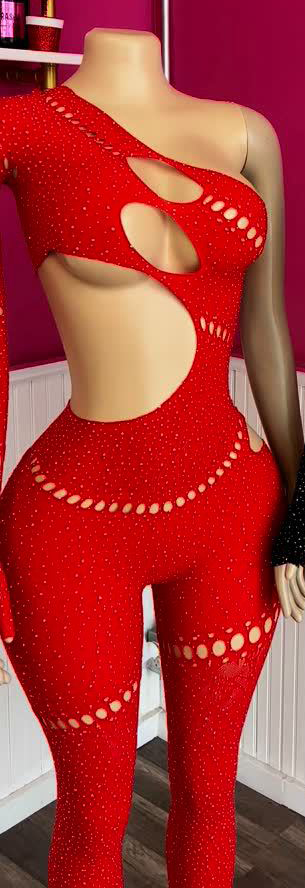 Copy| Product Name | Beaded Mesh One-Piece Long-Sleeve Jumpsuit |