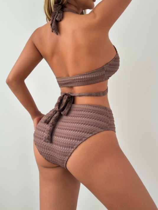 Copy| Product Name | Fashion Texture Brown Halter Neck Two-Piece Swimsuit |