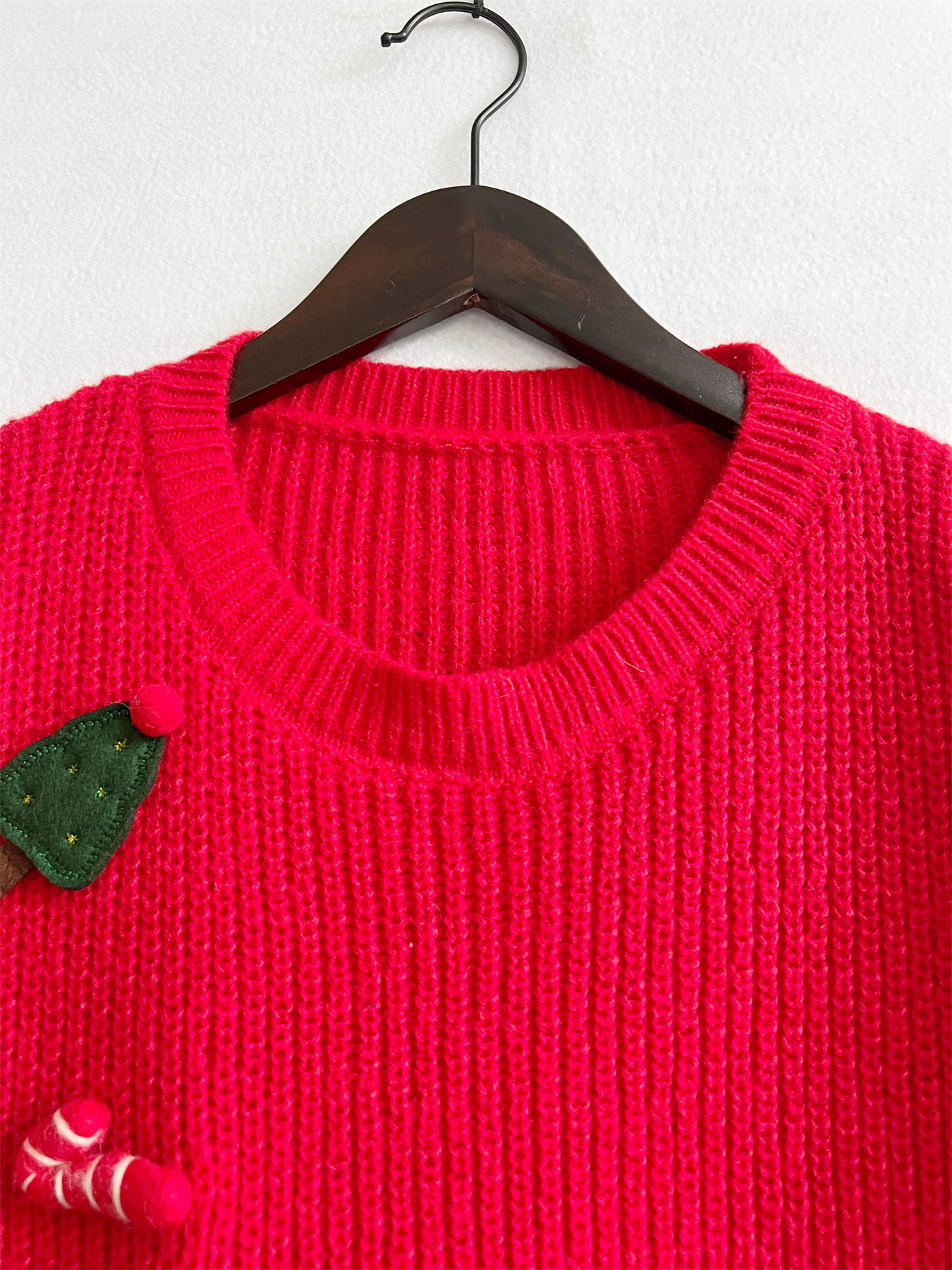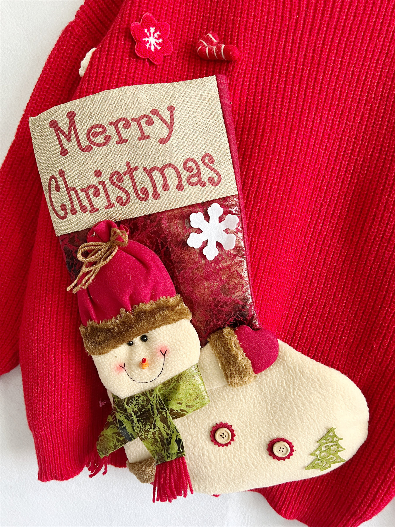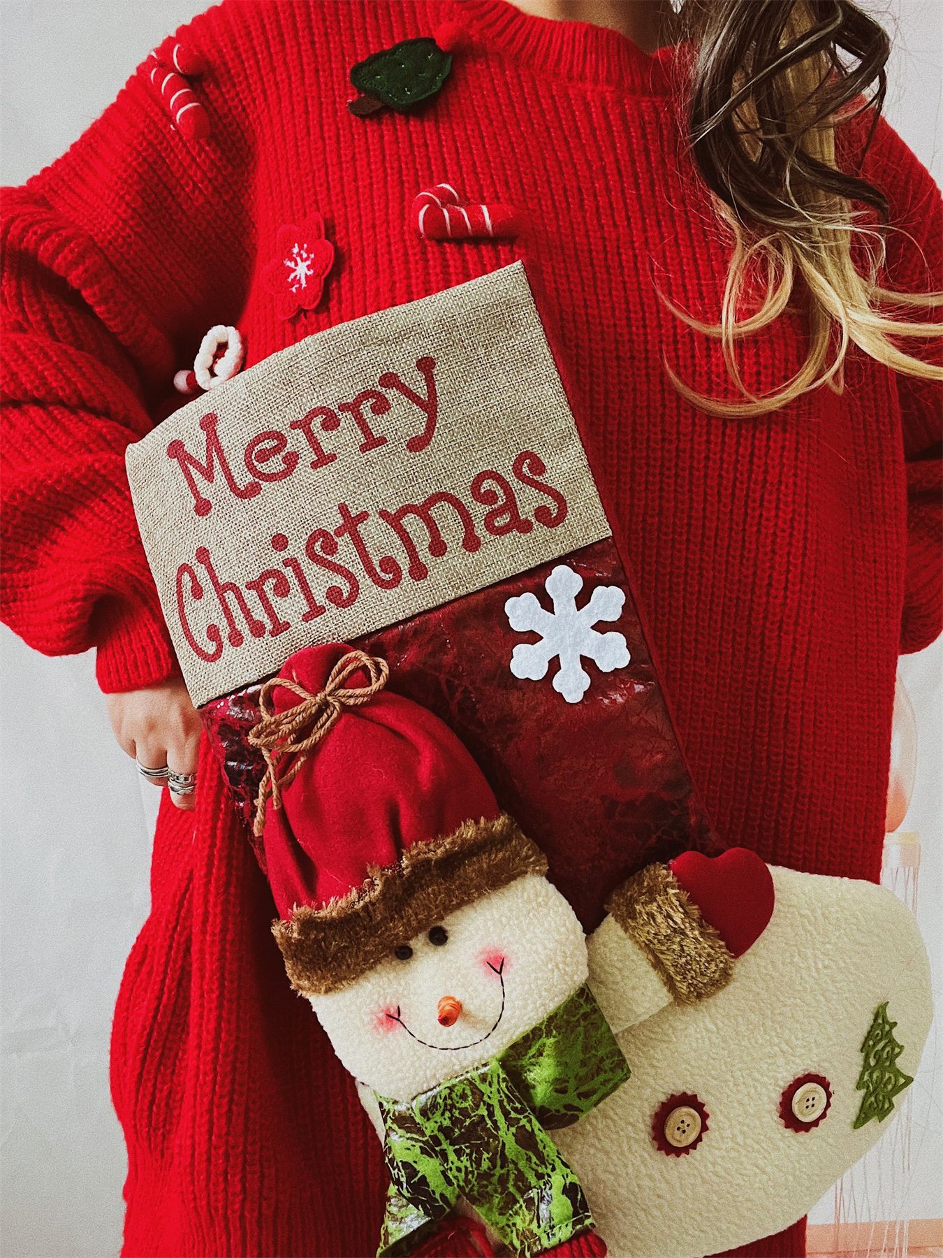Copy| Product Name | Loose Christmas Sweater Oversized Christmas Stocking Snowman Pocket Decorated Red New Year Sweater for Women |