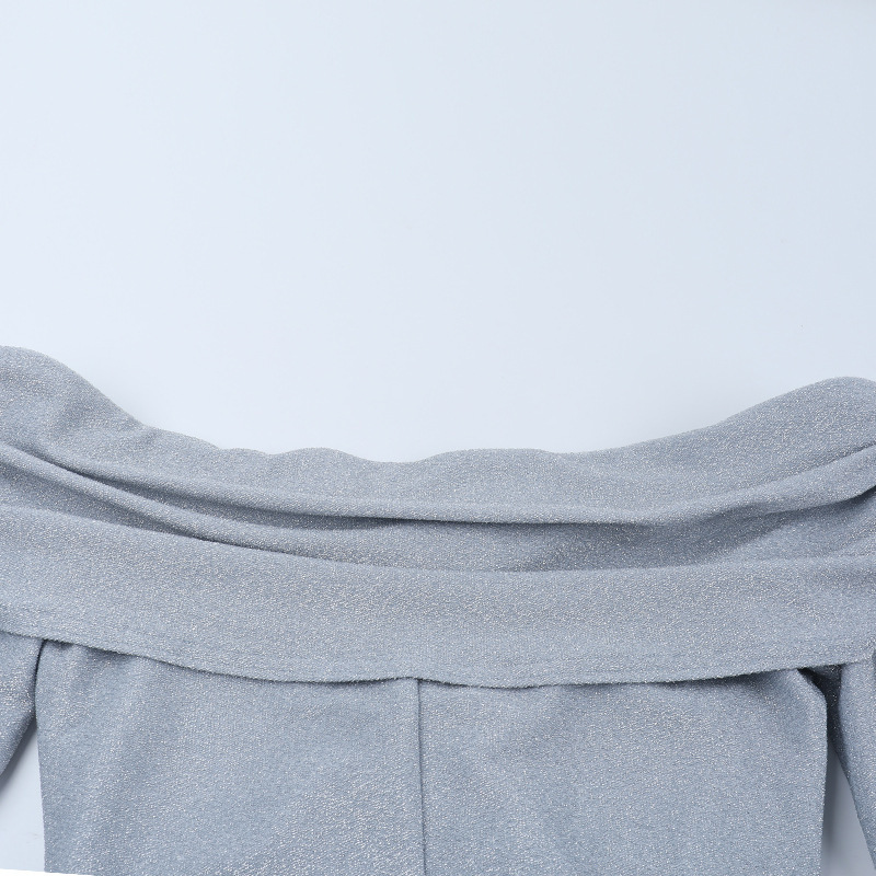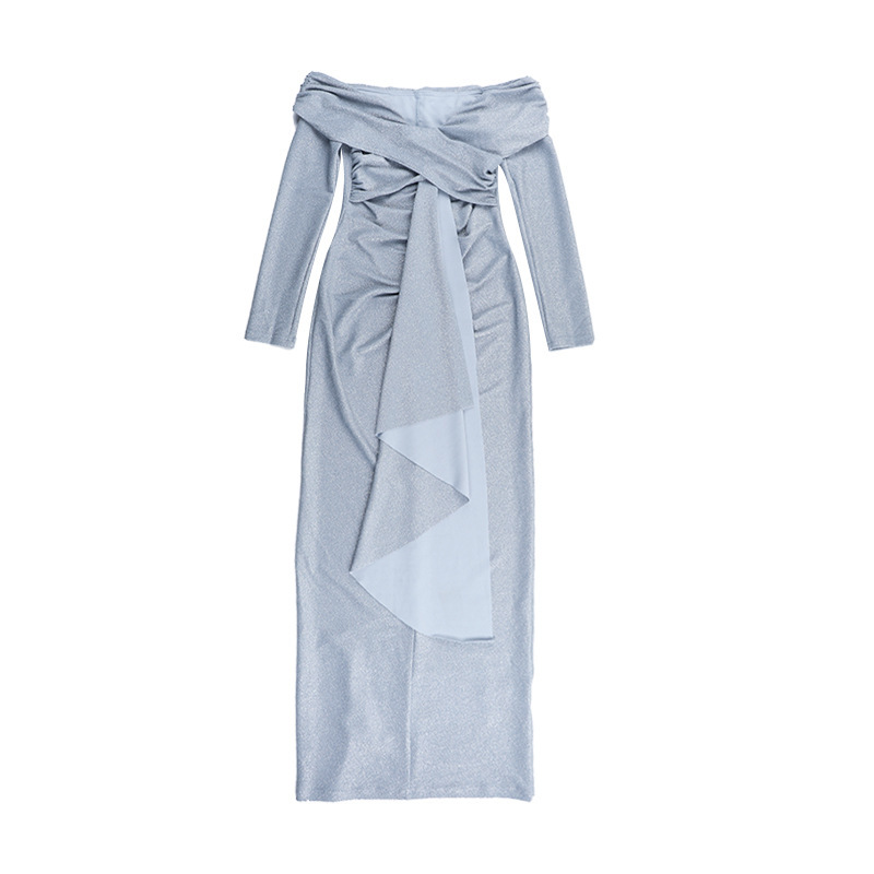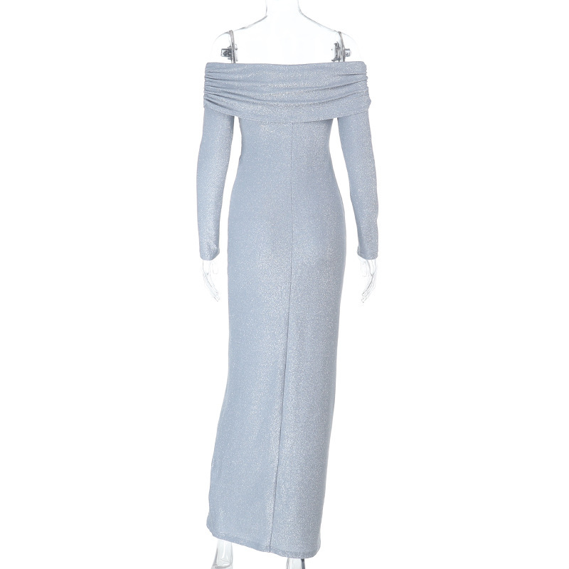 Copy| Product Name | Off-Shoulder Beaded Glitter Long-Sleeve Dress Sexy Long Gown |