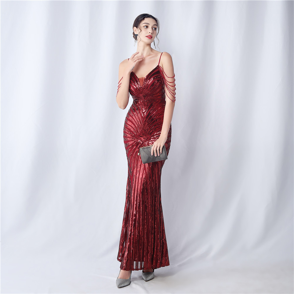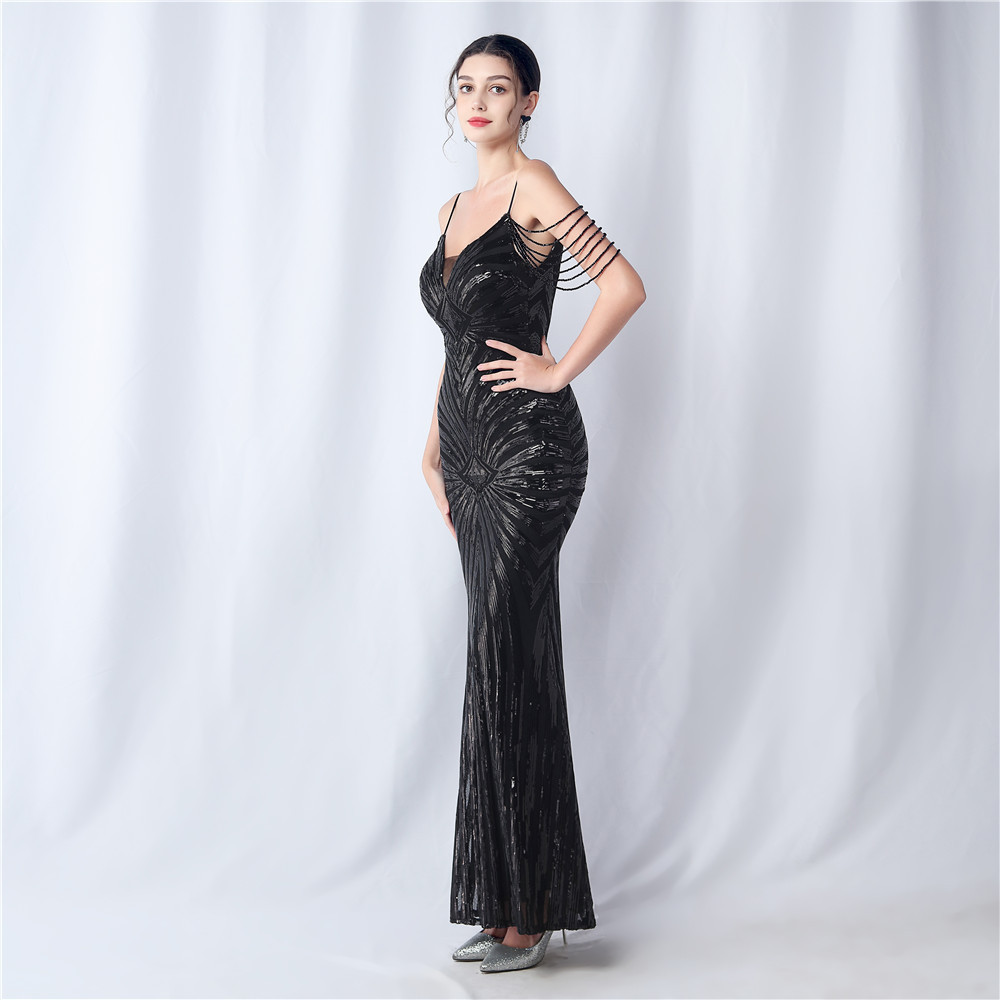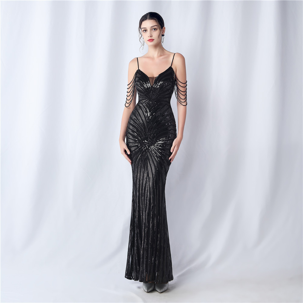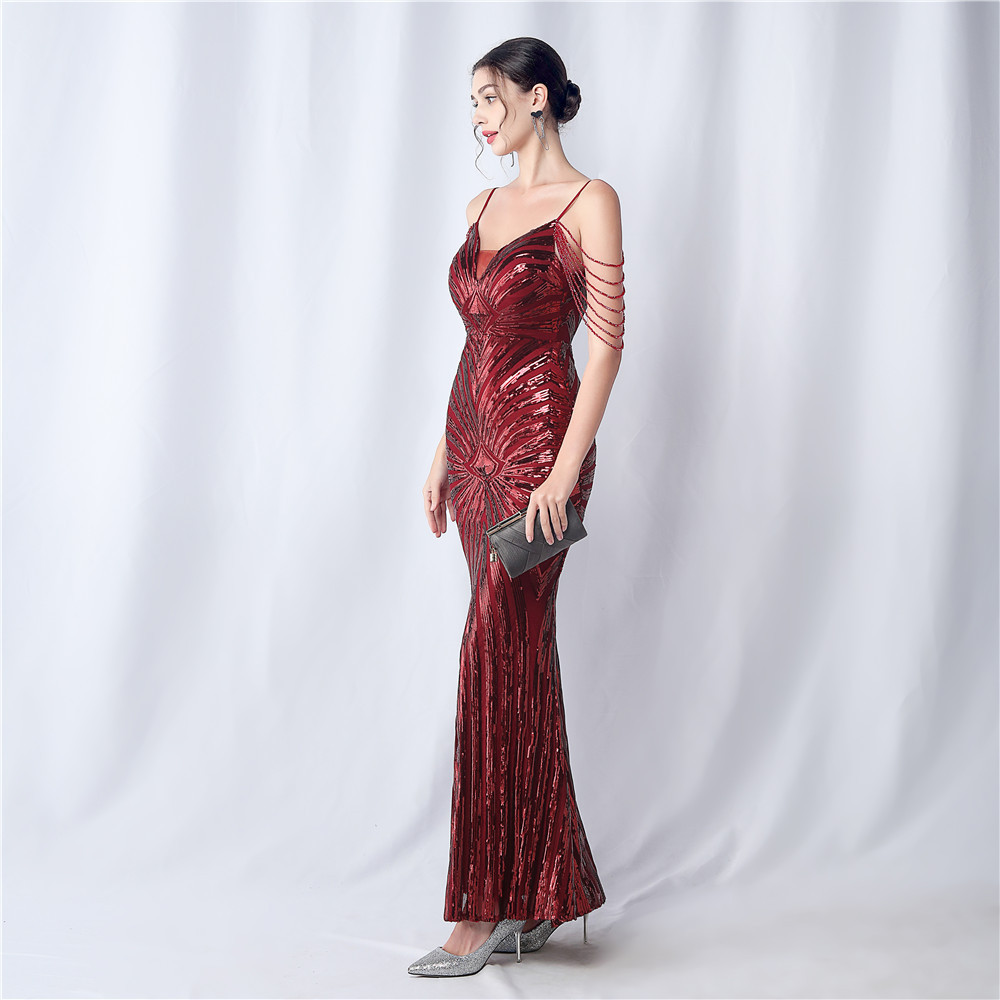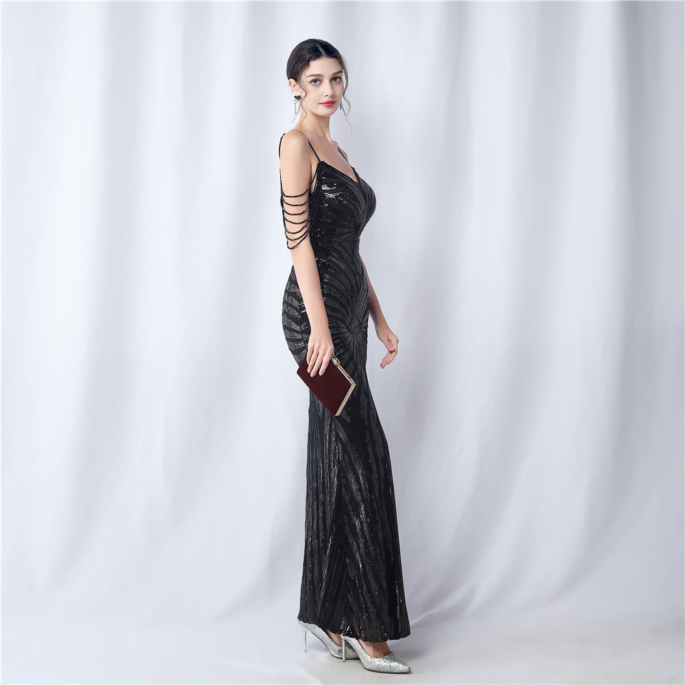Copy| Product Name | Plus Size Women Beaded Sequined Camisole Evening Dress |