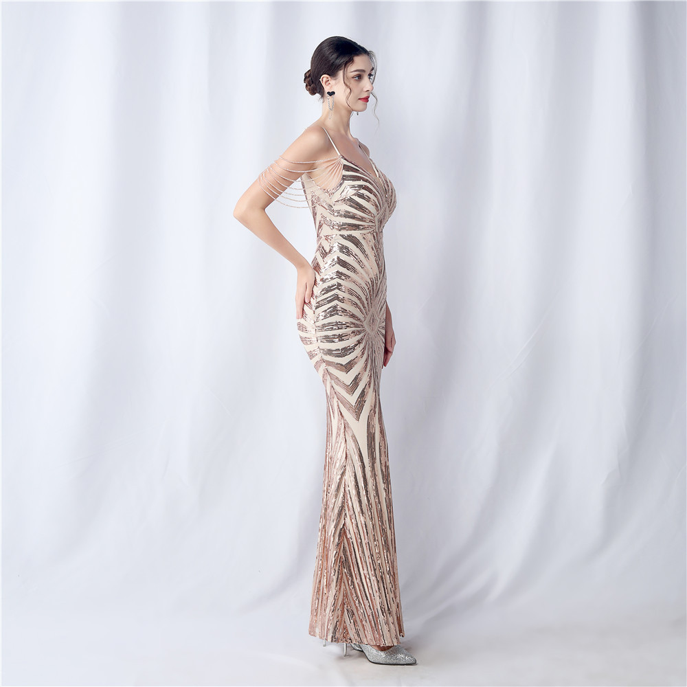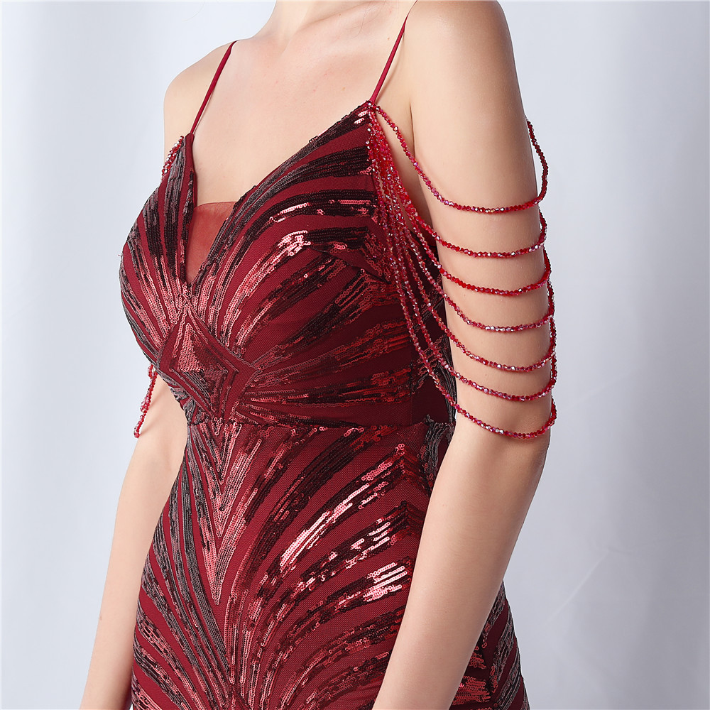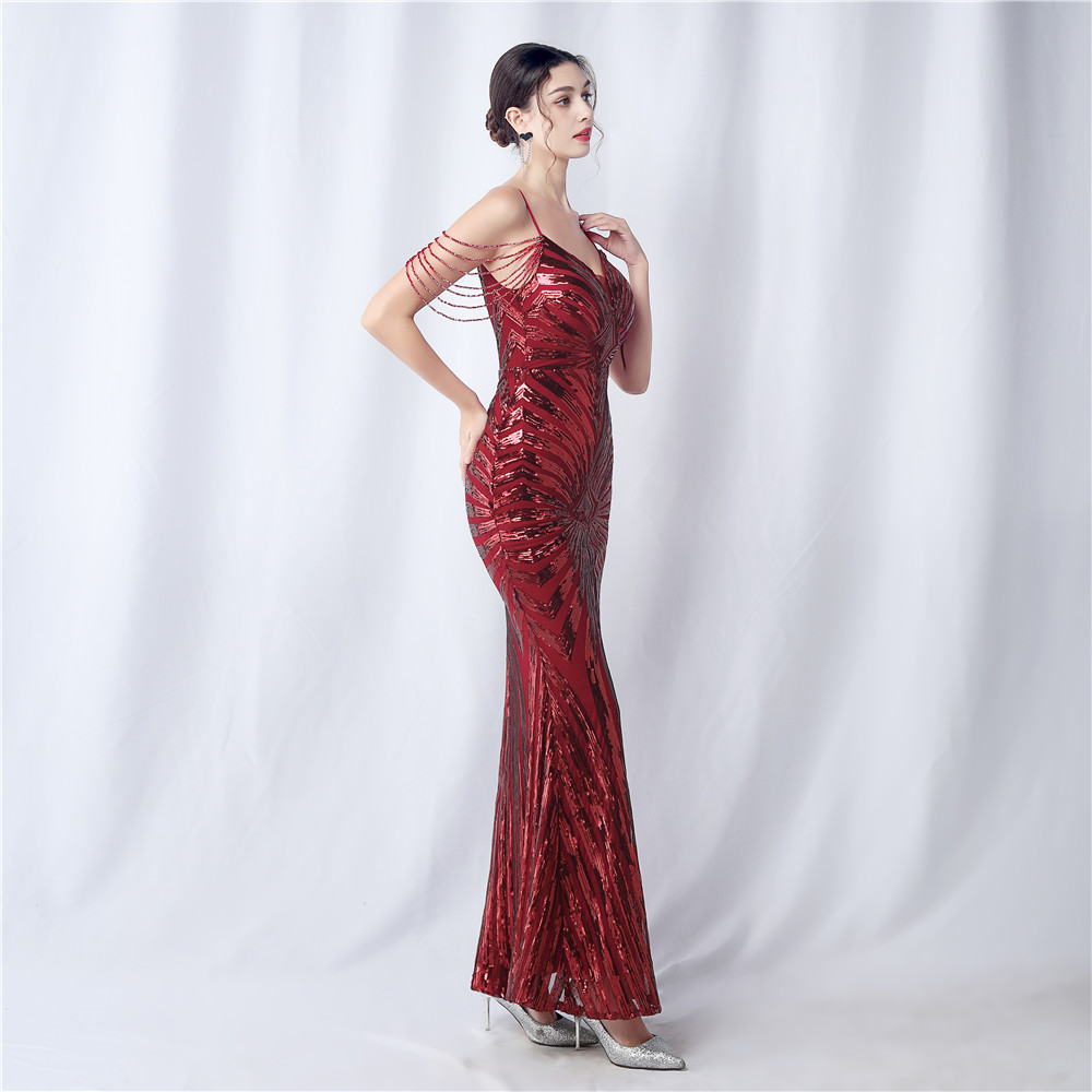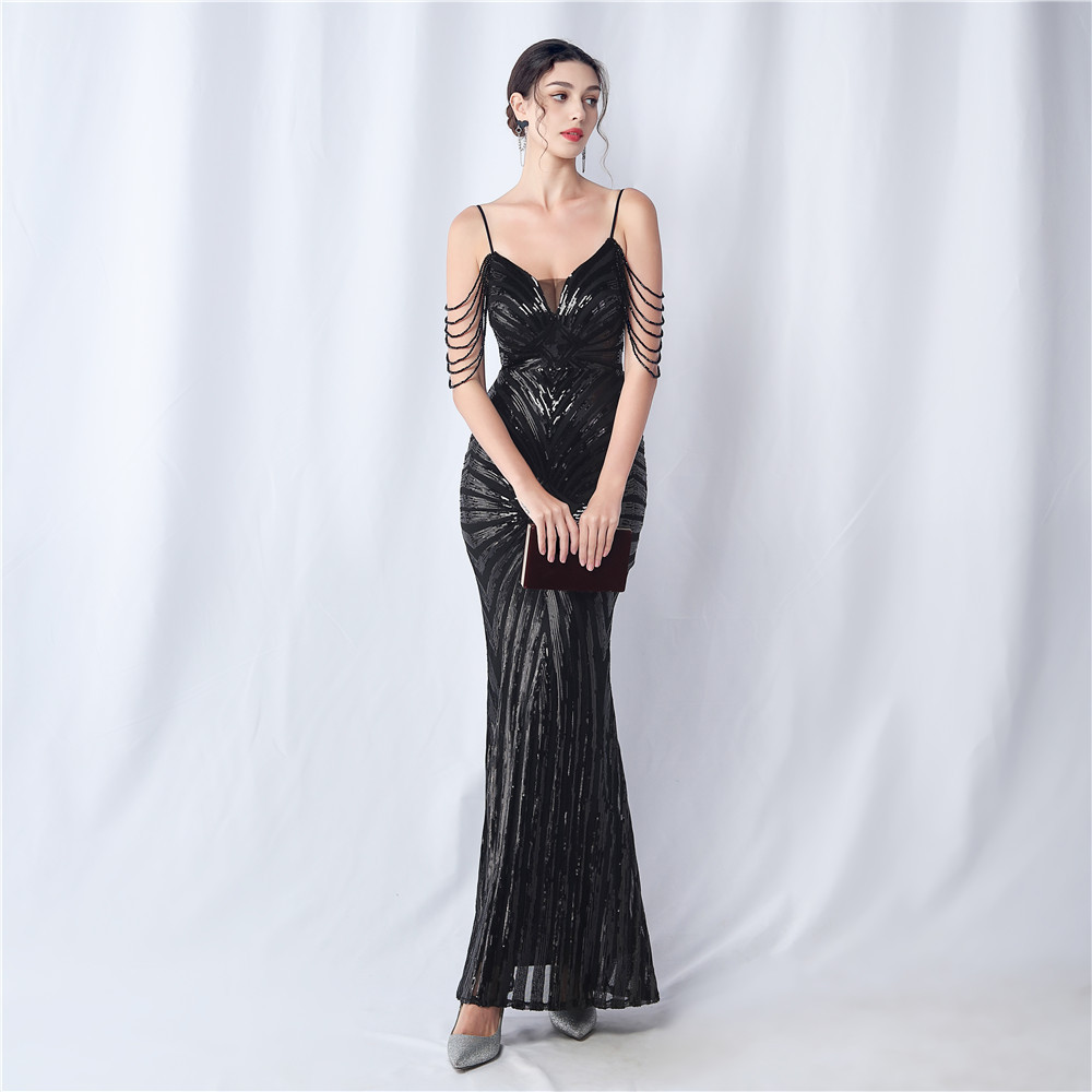 Copy| Product Name | Plus Size Women Beaded Sequined Camisole Evening Dress |