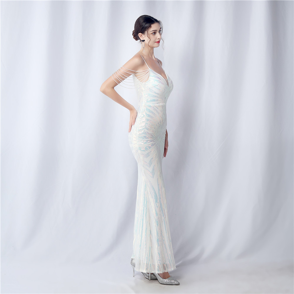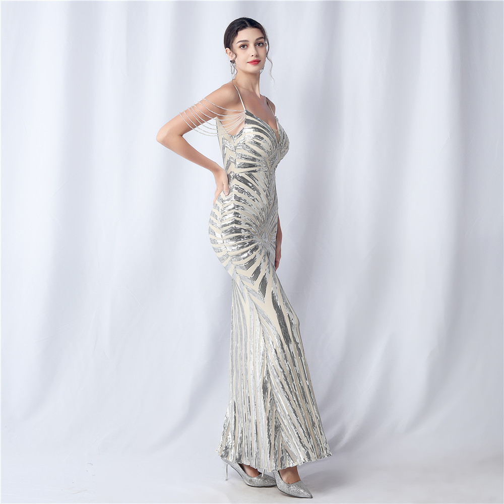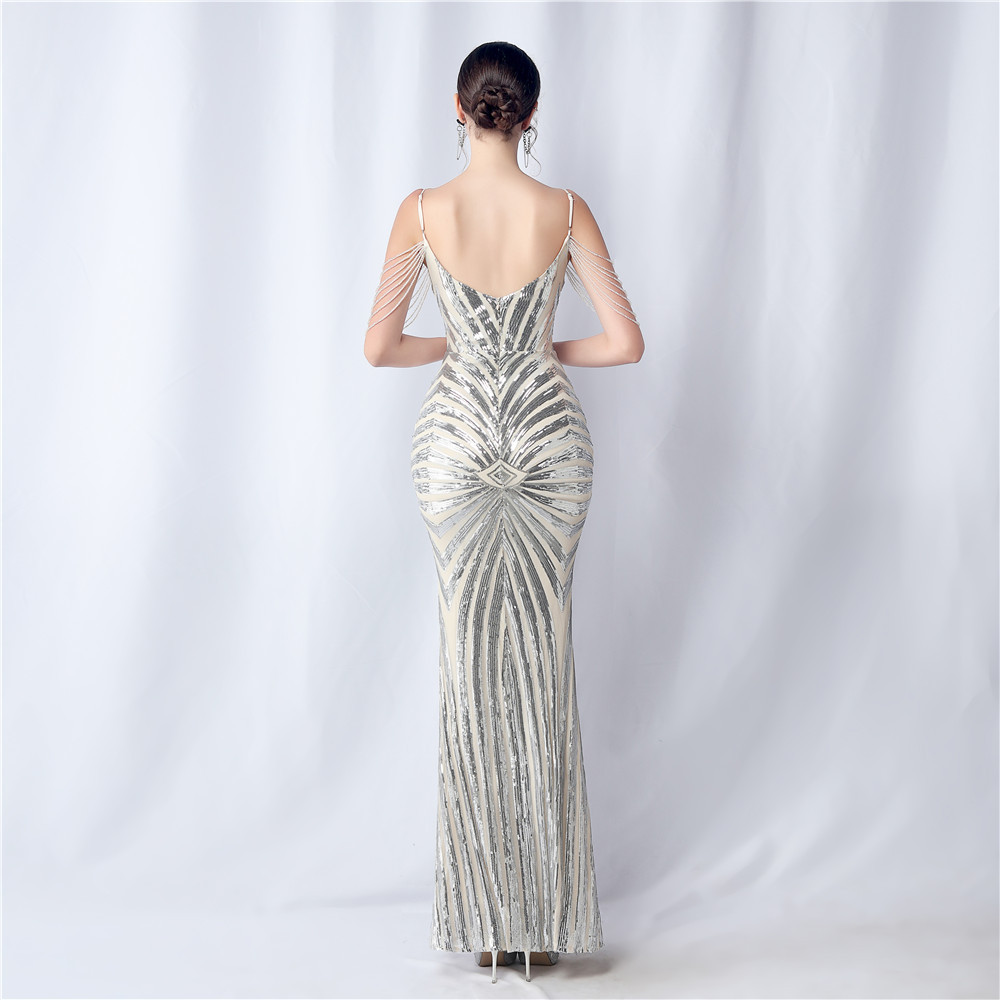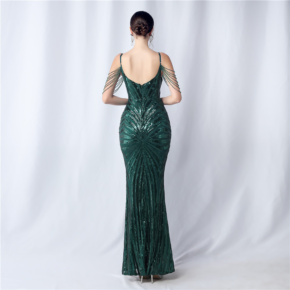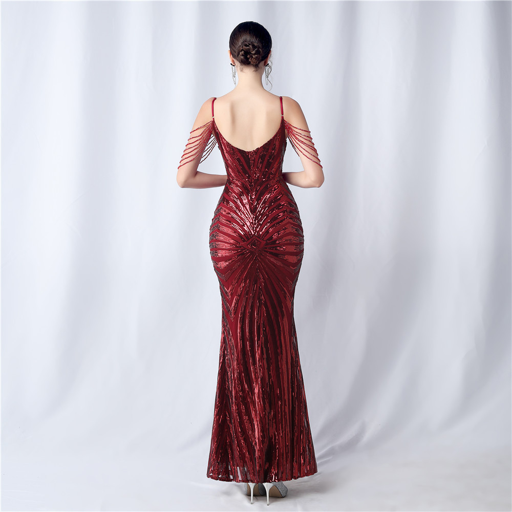 Copy| Product Name | Plus Size Women Beaded Sequined Camisole Evening Dress |