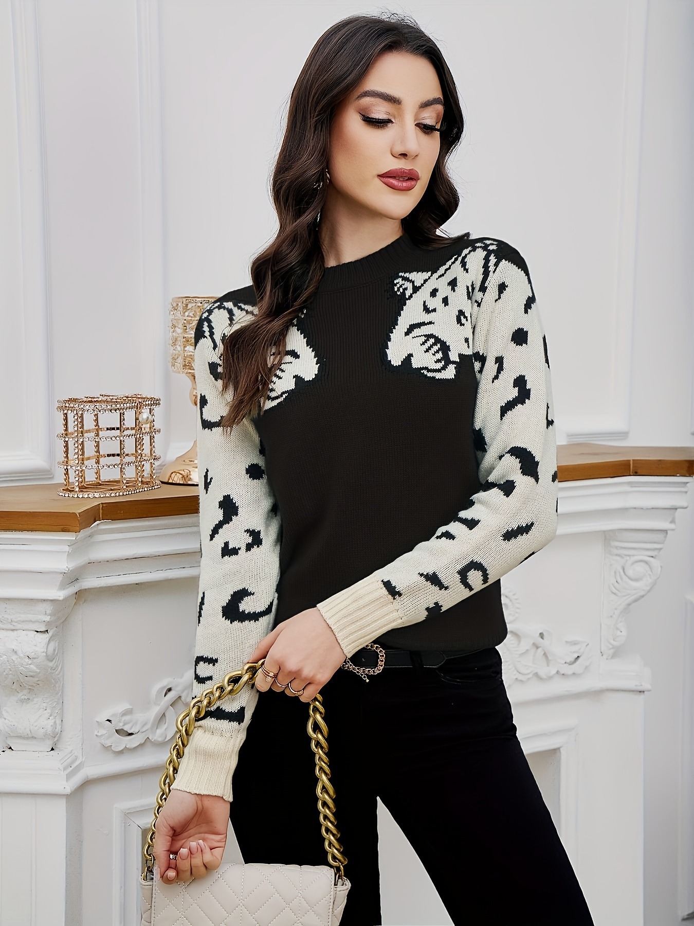 Copy| Product Name | Plus Size Women Casual Leopard Top Sweater |