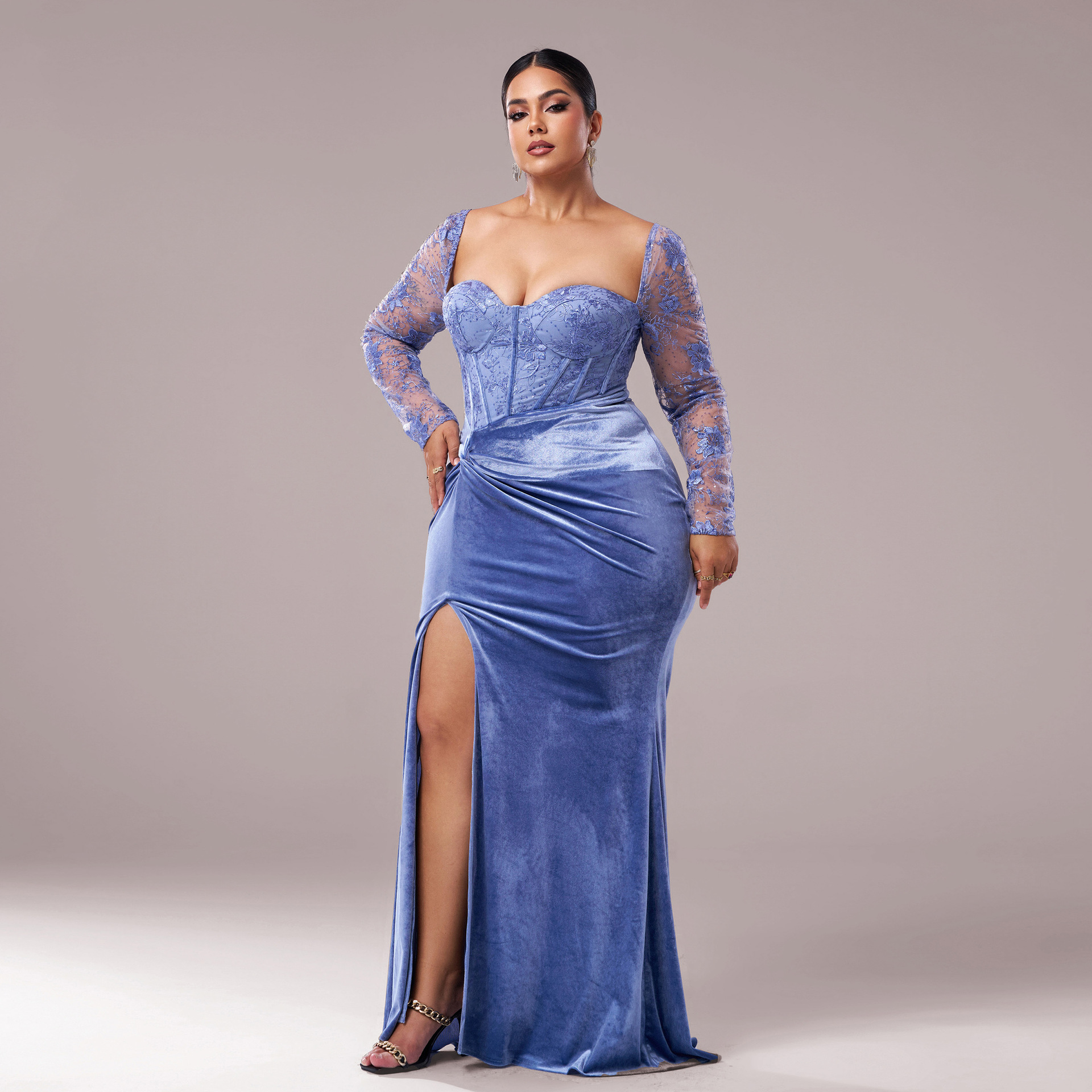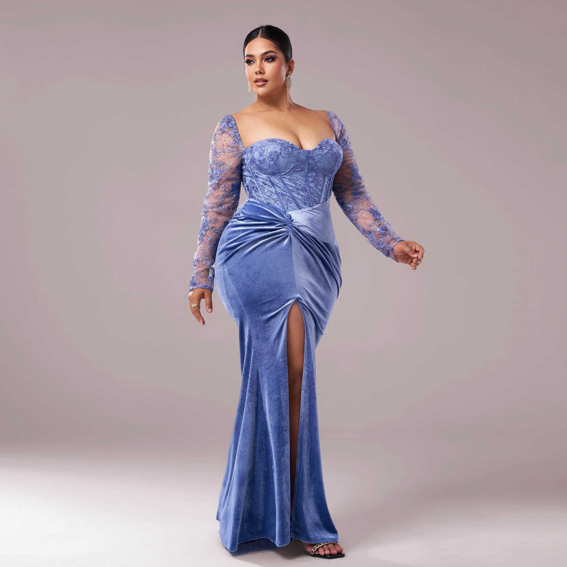 This Plus Size Women Long Sleeve Split Formal Evening Gown Dress Made Of Soft And Elastic Fabric. Global Lover Wholesale Plus Size Dresses And Hope Curvy Ladies Find Here a Warm And Exciting Place To Shop Affordable Curvy Dresses Online - Plus Size Casual, Office, Party, Wedding, Evening Dresses Xl To 6xl.When You Need More Wholesale Plus Size Clothing, You Can Always Find What You Need On Our Wholesale Women Fashion Online Store.