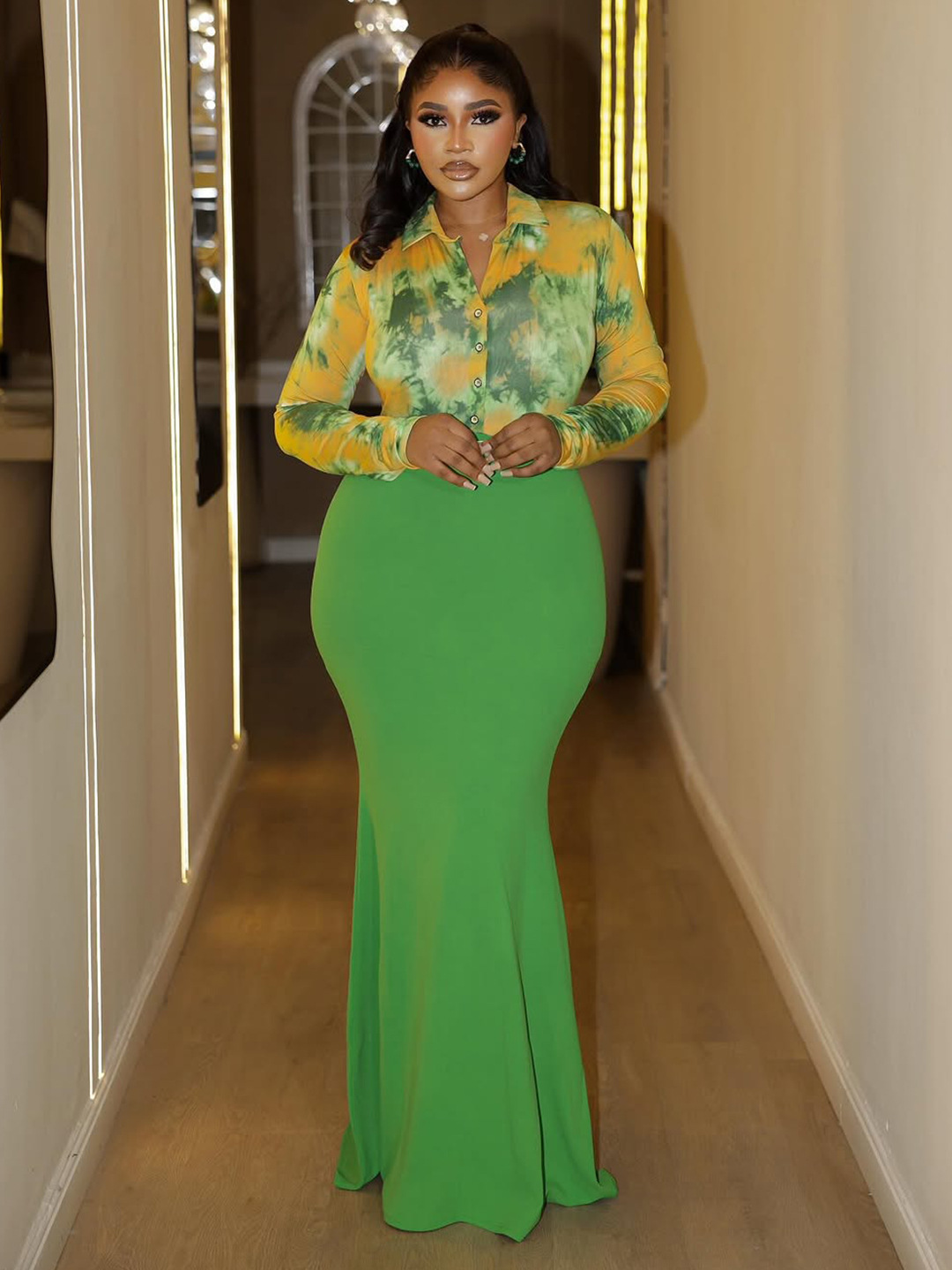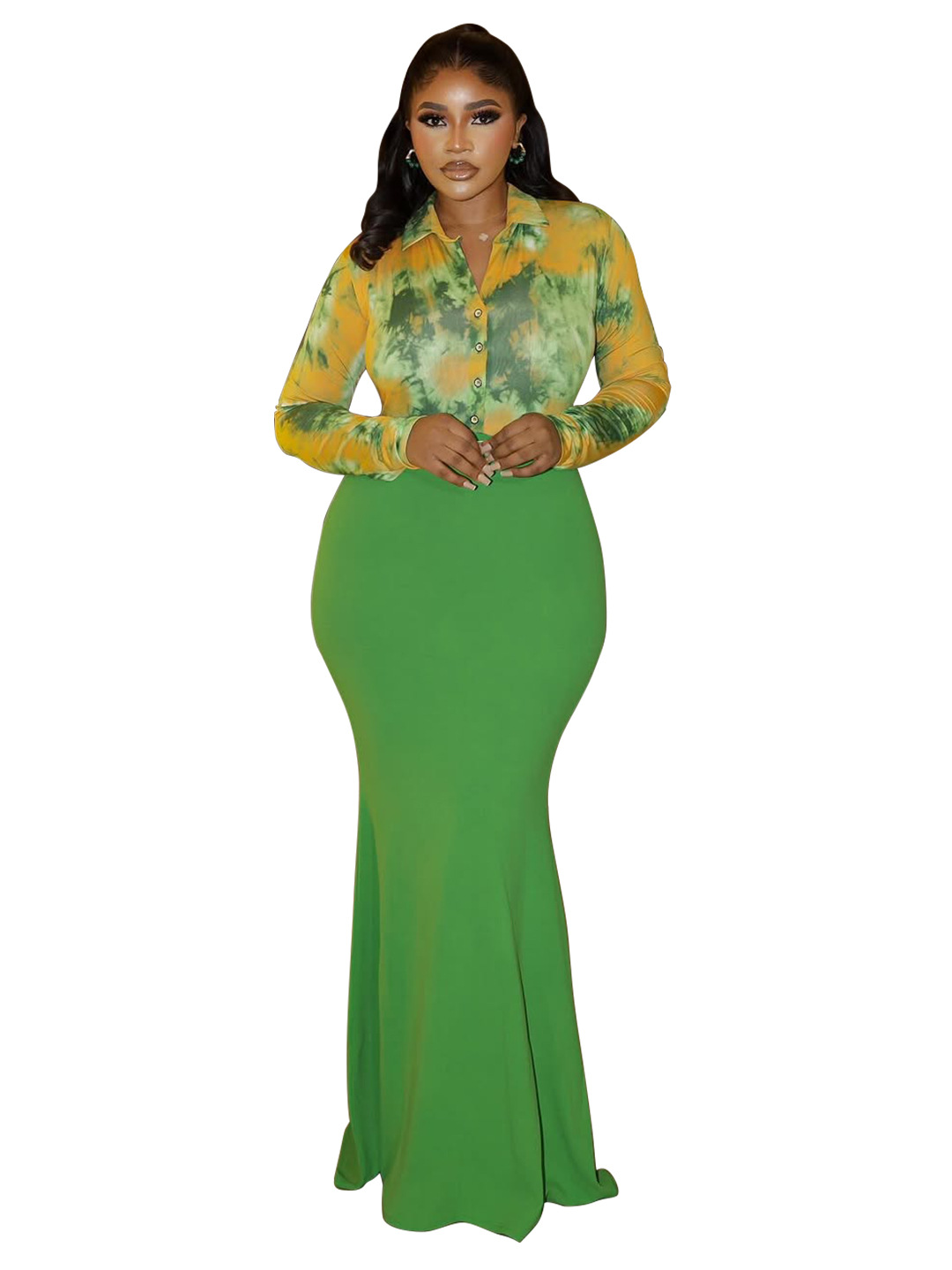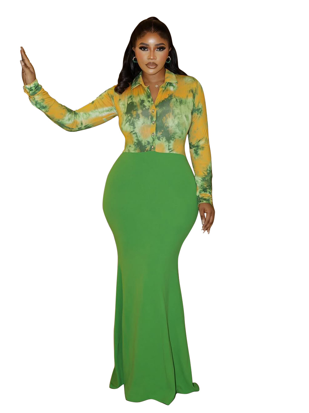 Copy| Product Name | Plus Size Women Sexy Elegant Shirt Collar Printed Bodycon Dress |