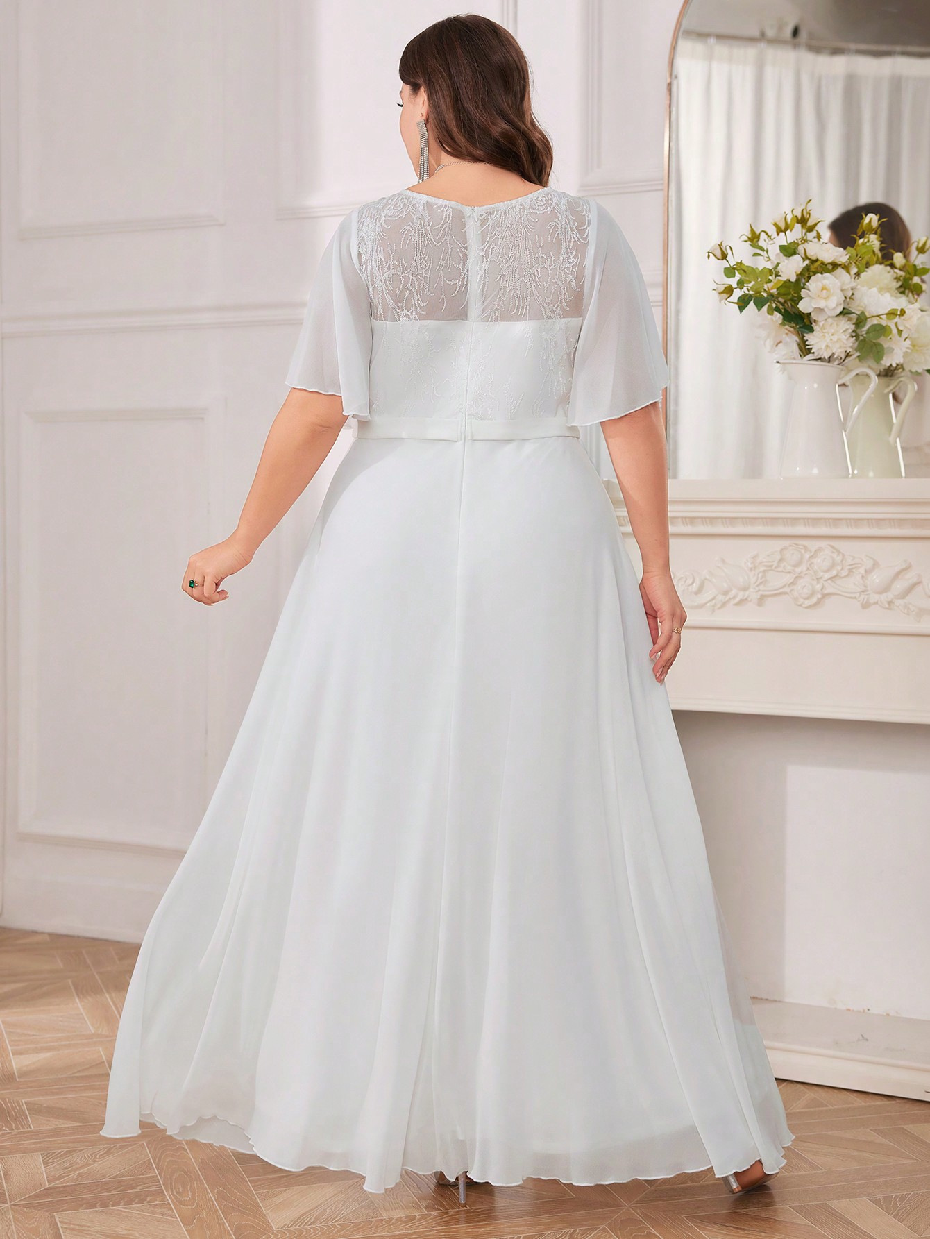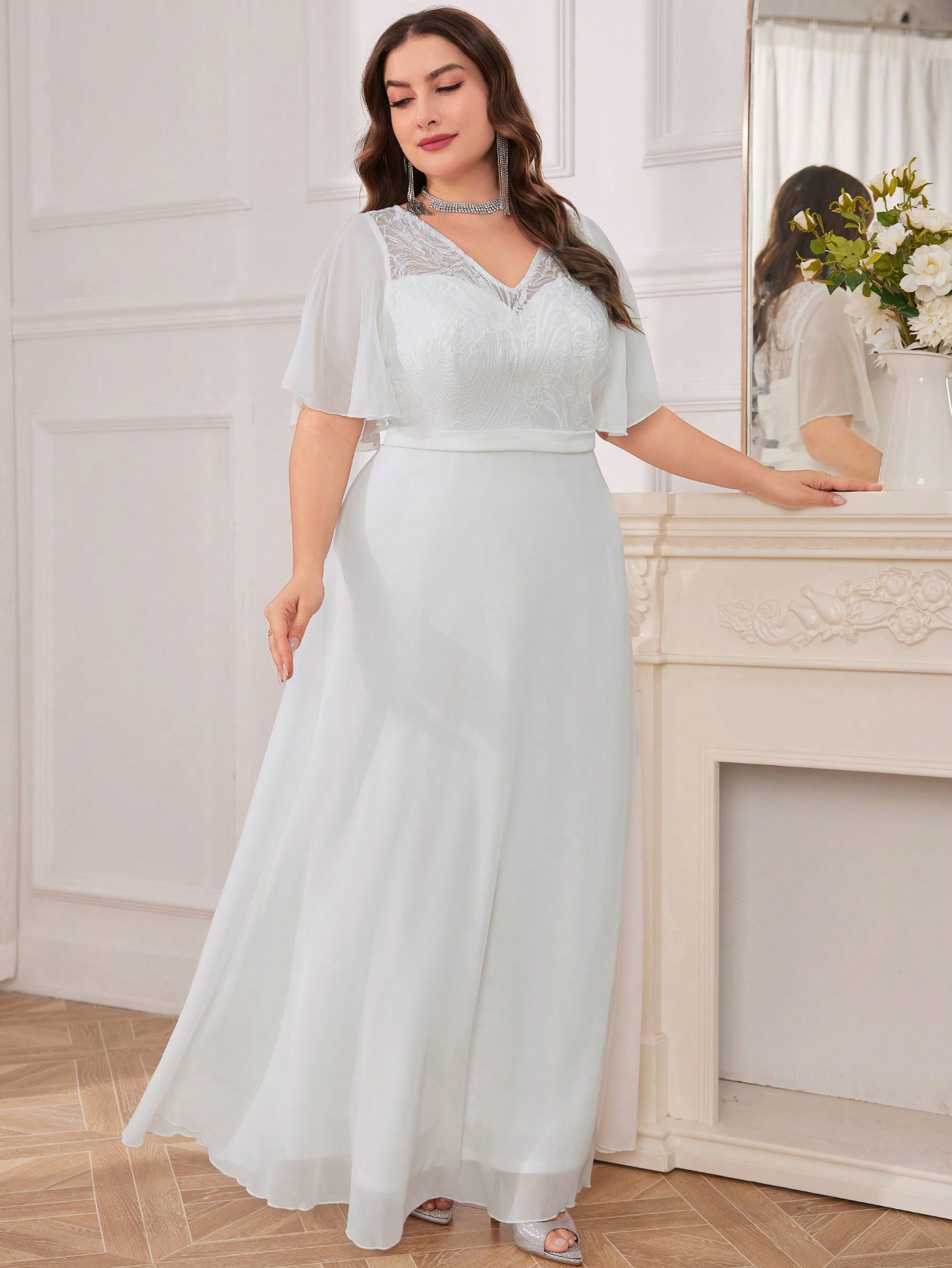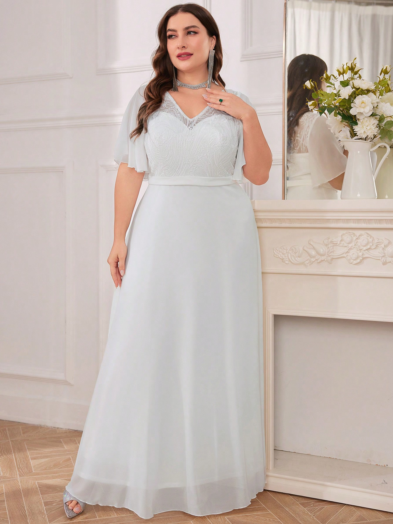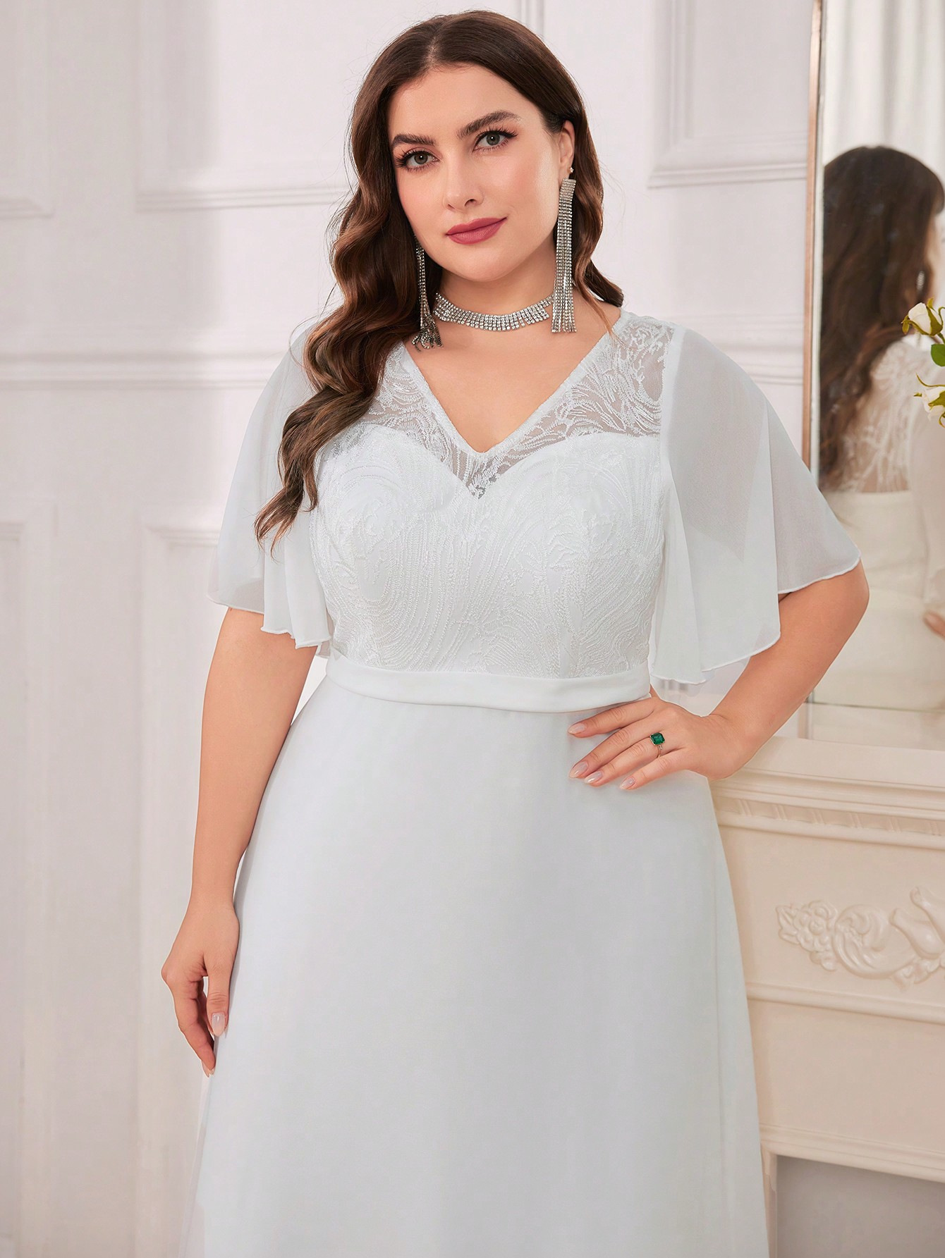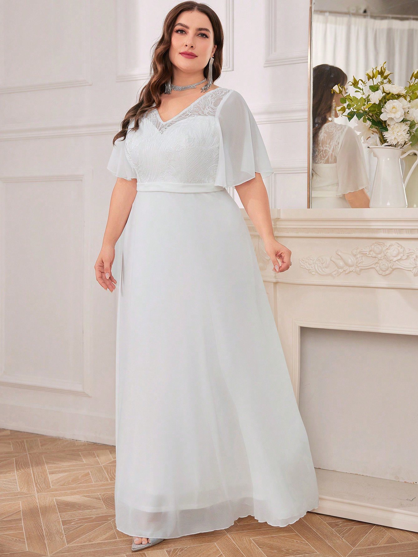 Copy| Product Name | Plus Size Women's V-Neck White Solid Color Formal Party Evening Dress |
