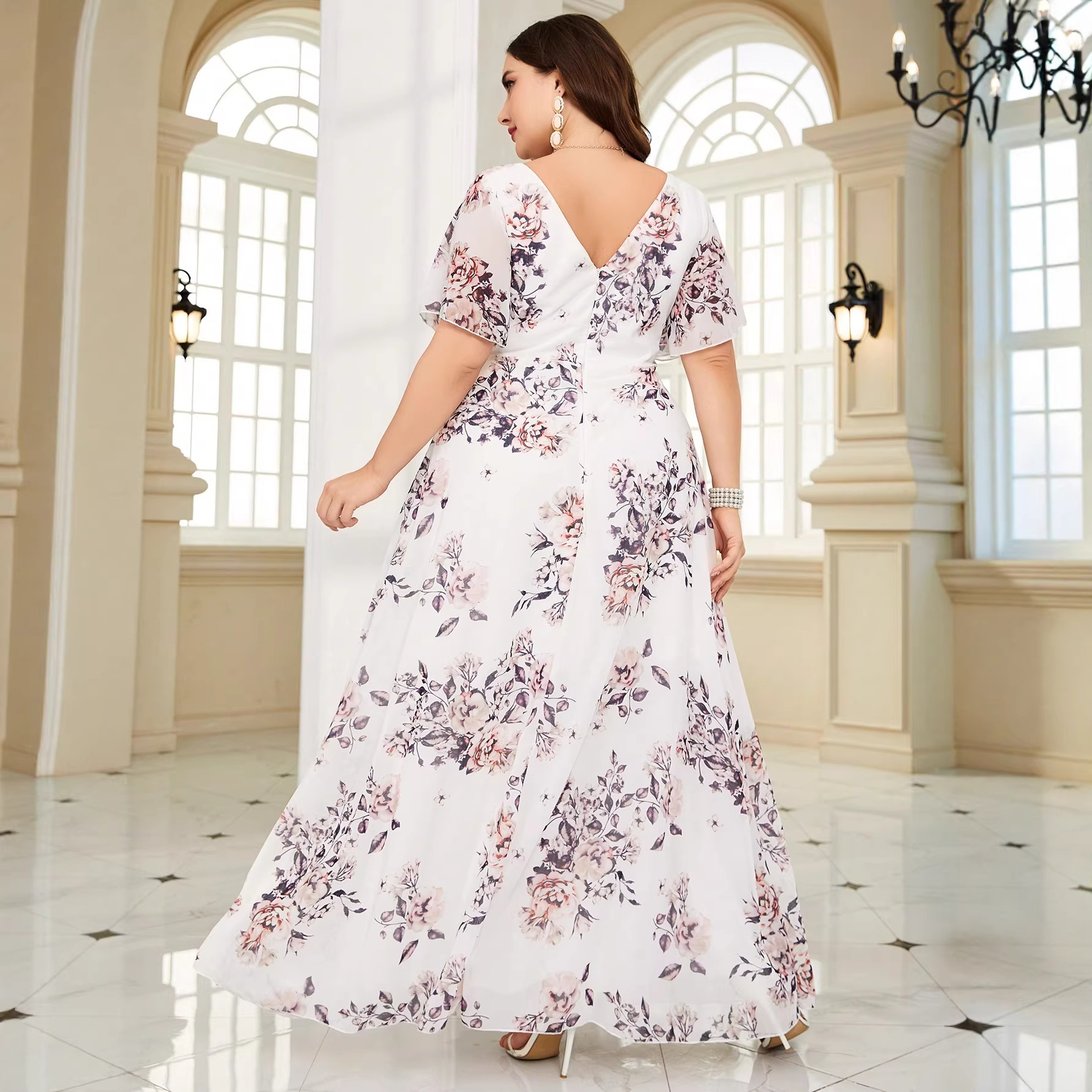 Copy| Product Name | Plus Size Women's White Printed Formal Party Evening Dress |