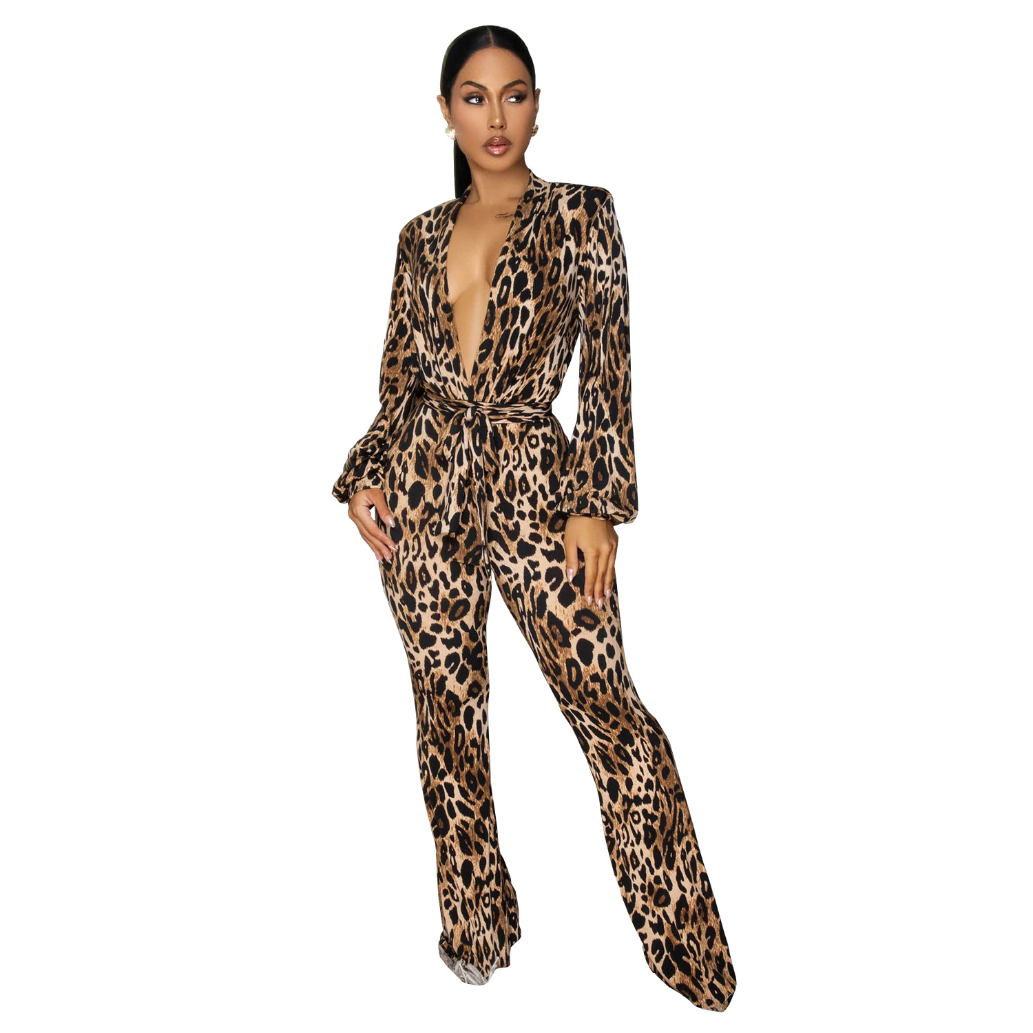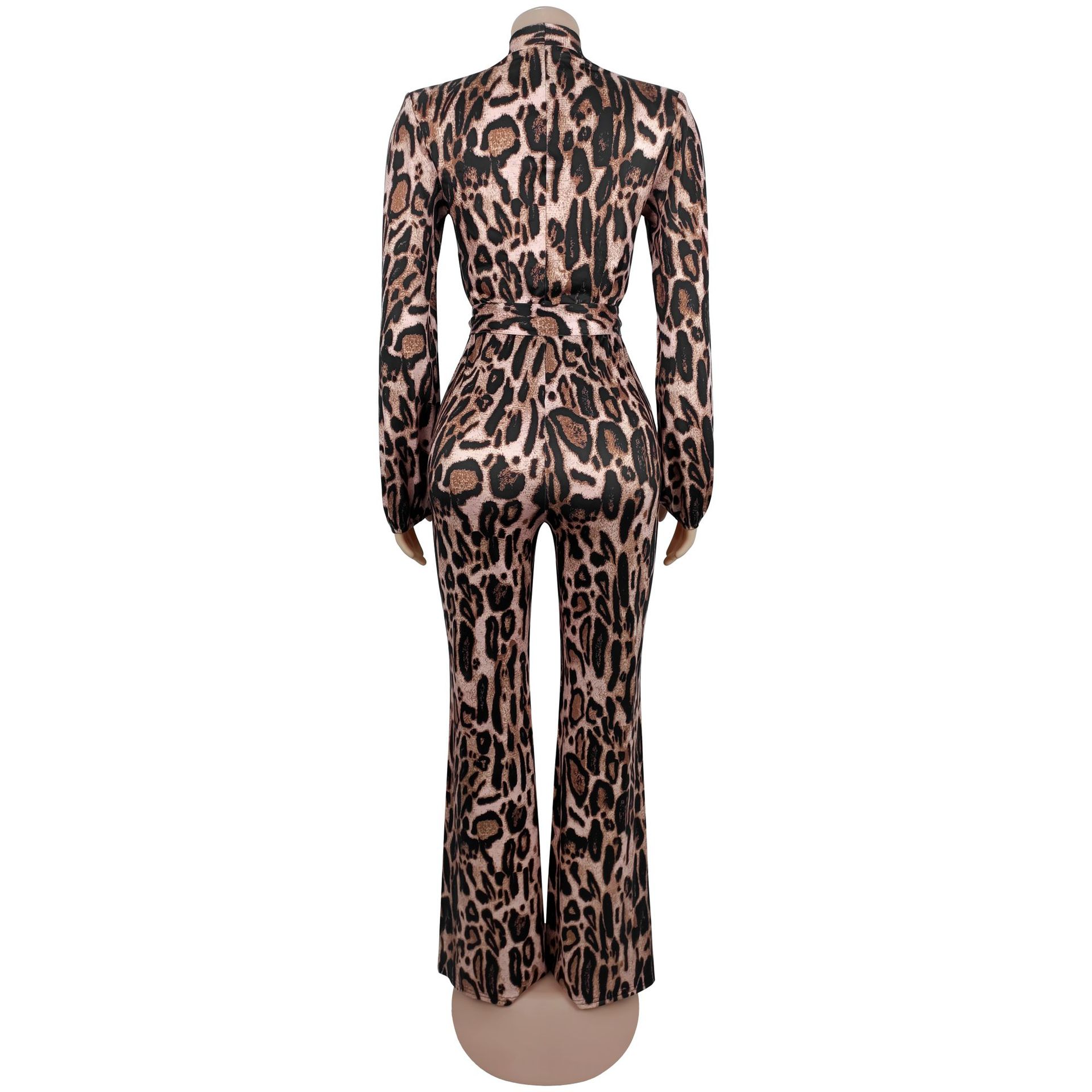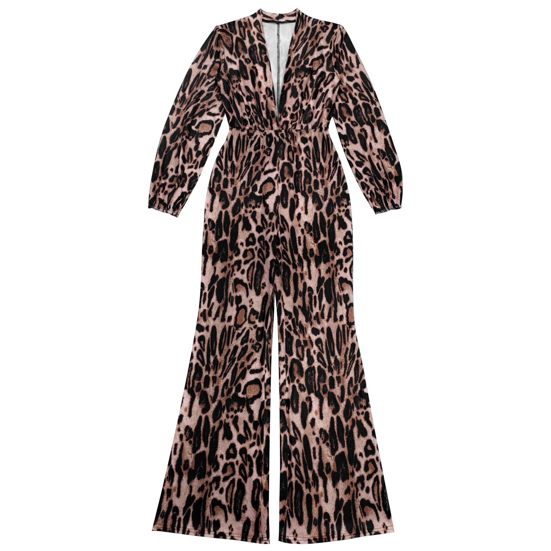 Copy| Product Name | Sexy V-Neck Leopard Print Jumpsuit |