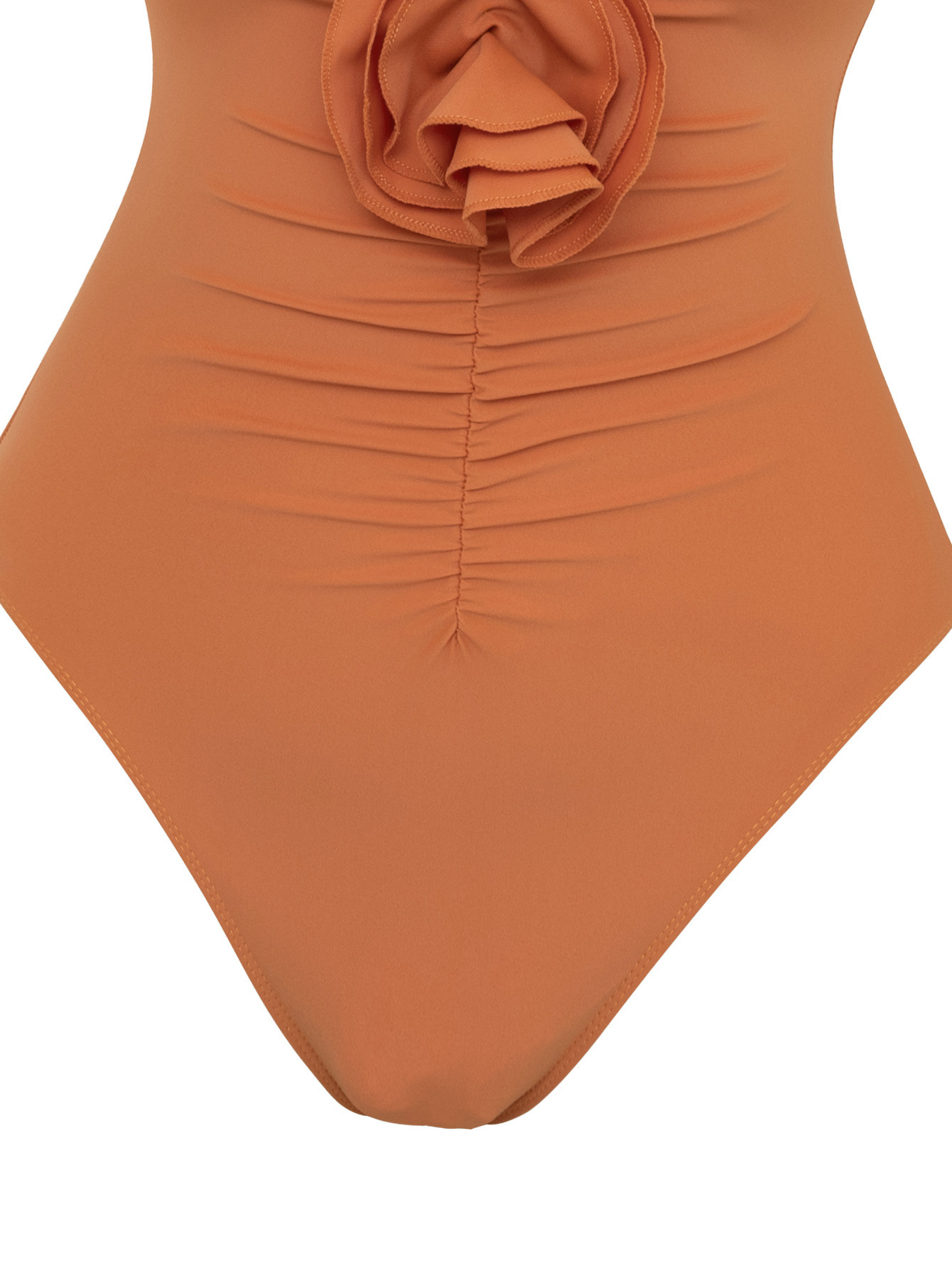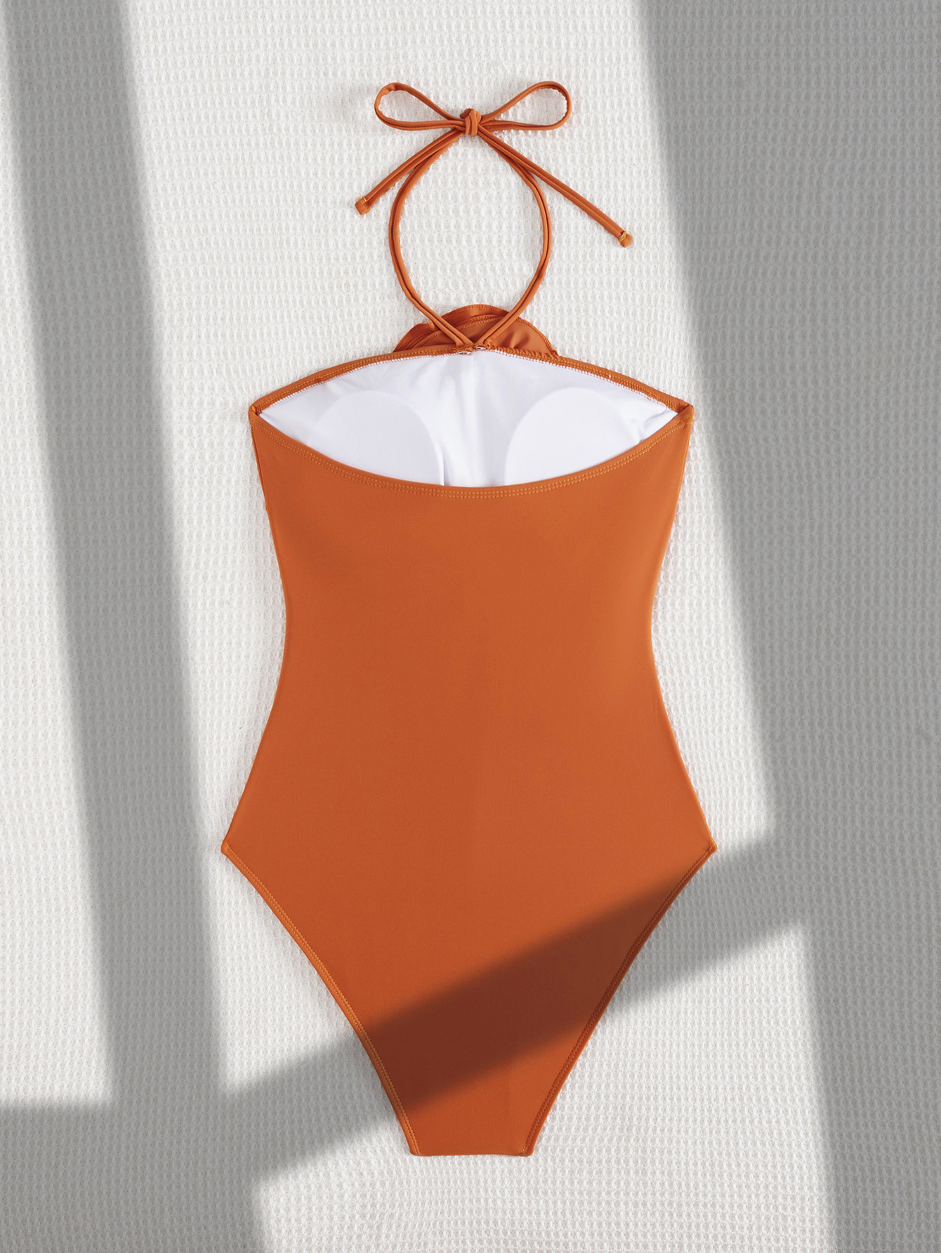Copy| Product Name | Solid Color Tie-Front One-Piece Bikini with Flower |