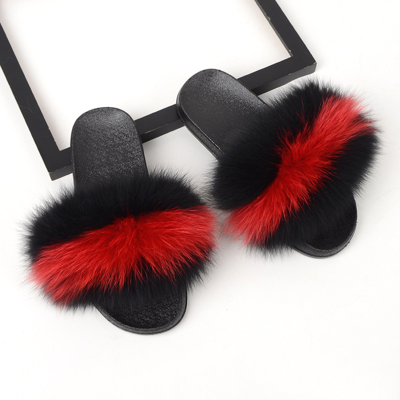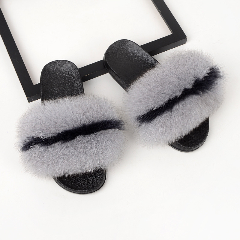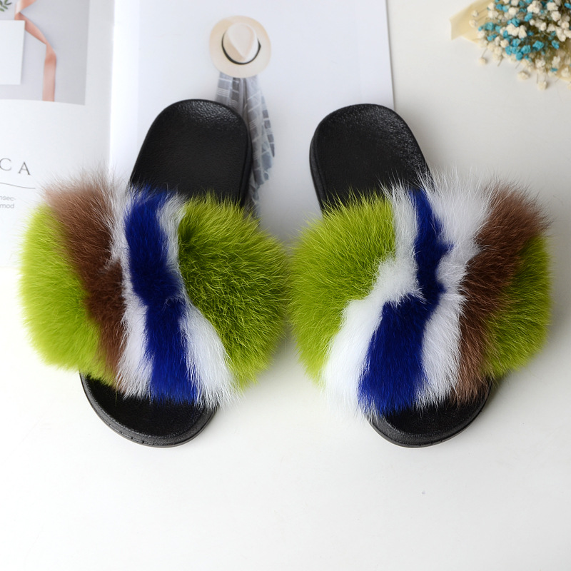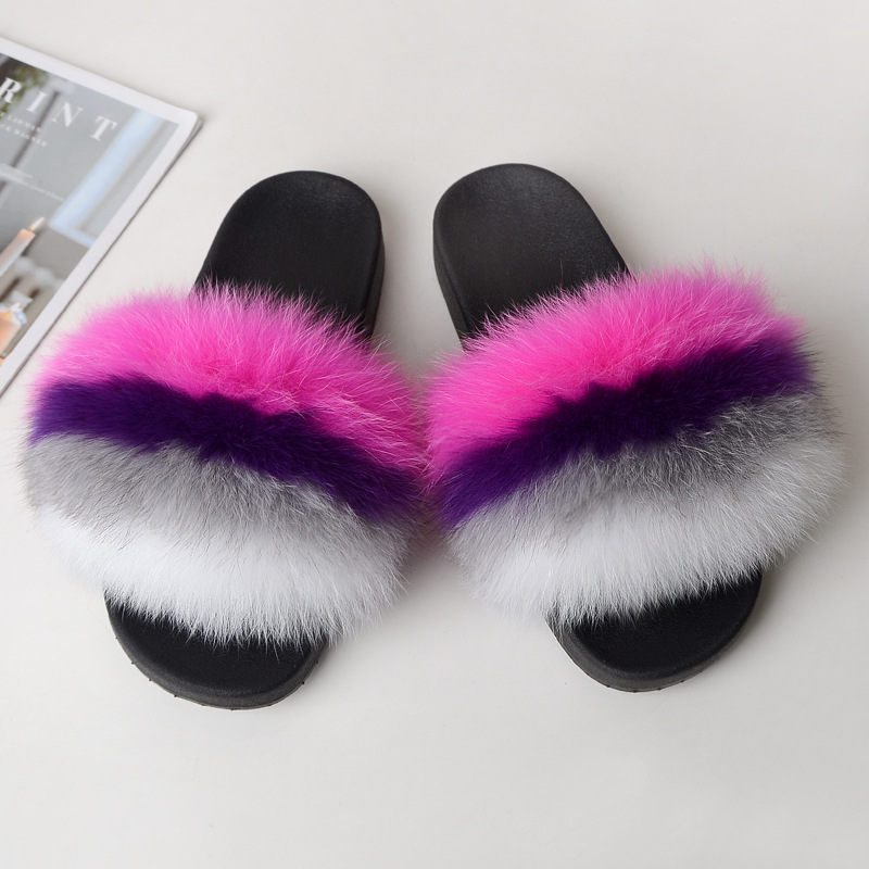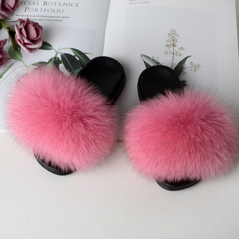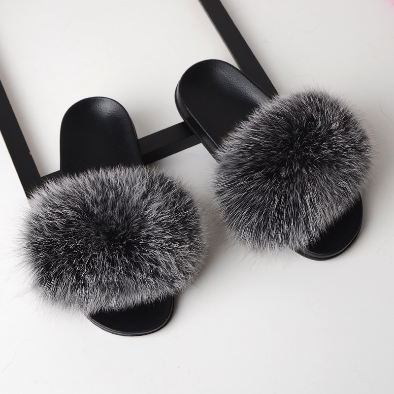 Copy| Product Name | Summer Women's Outdoor Real Fox Fur Plush Flip-Flops |