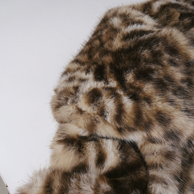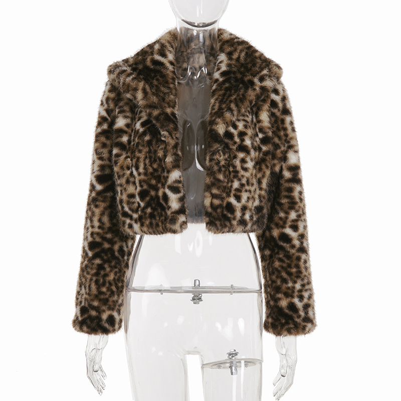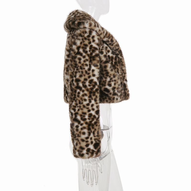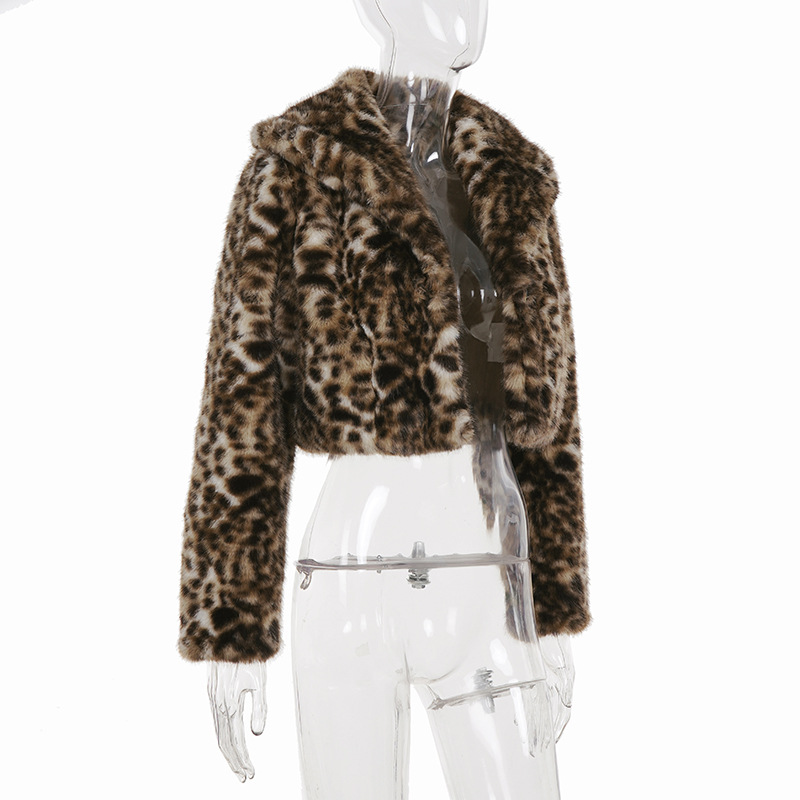 Copy| Product Name | Women American Style Autumn/Winter Leopard Print Furry Turndown Collar Jacket |