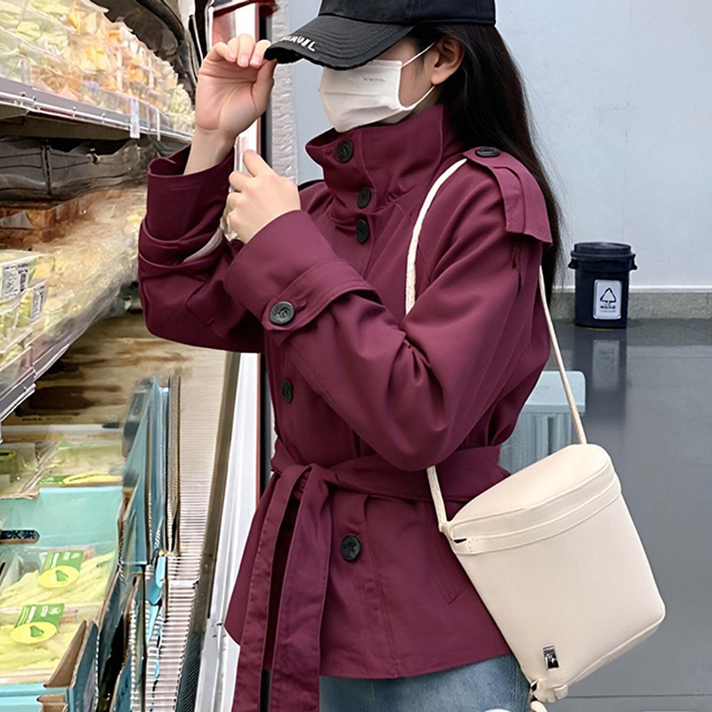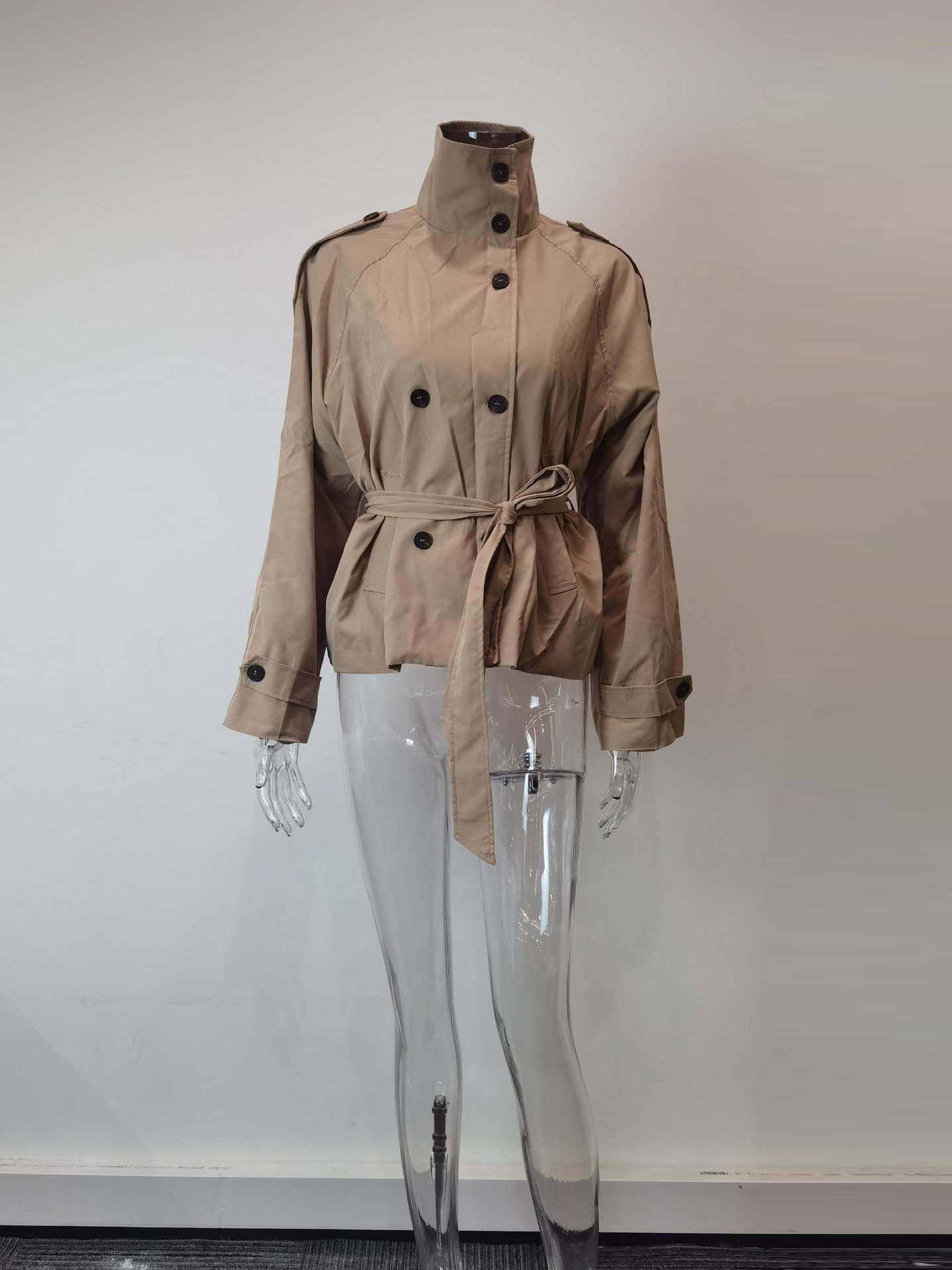 Copy| Product Name | Women Autumn Belt Long-Sleeved Solid Stand Collar Trench Coat |