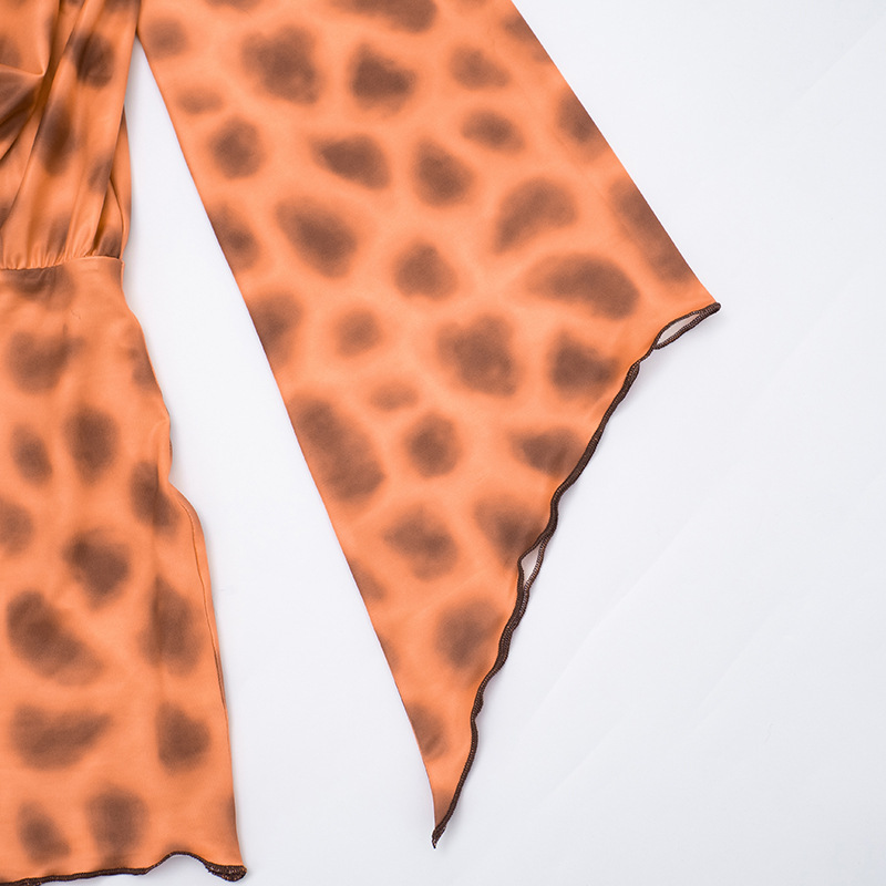 Copy| Product Name | Women Autumn Ruffle Collar Leopard Print Pullover Ruffle Edge Bodycon Dress |