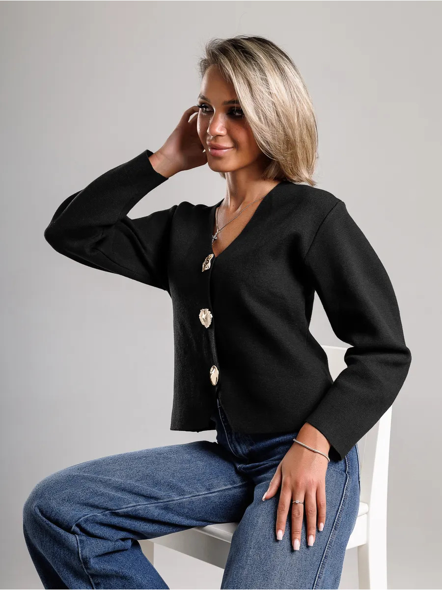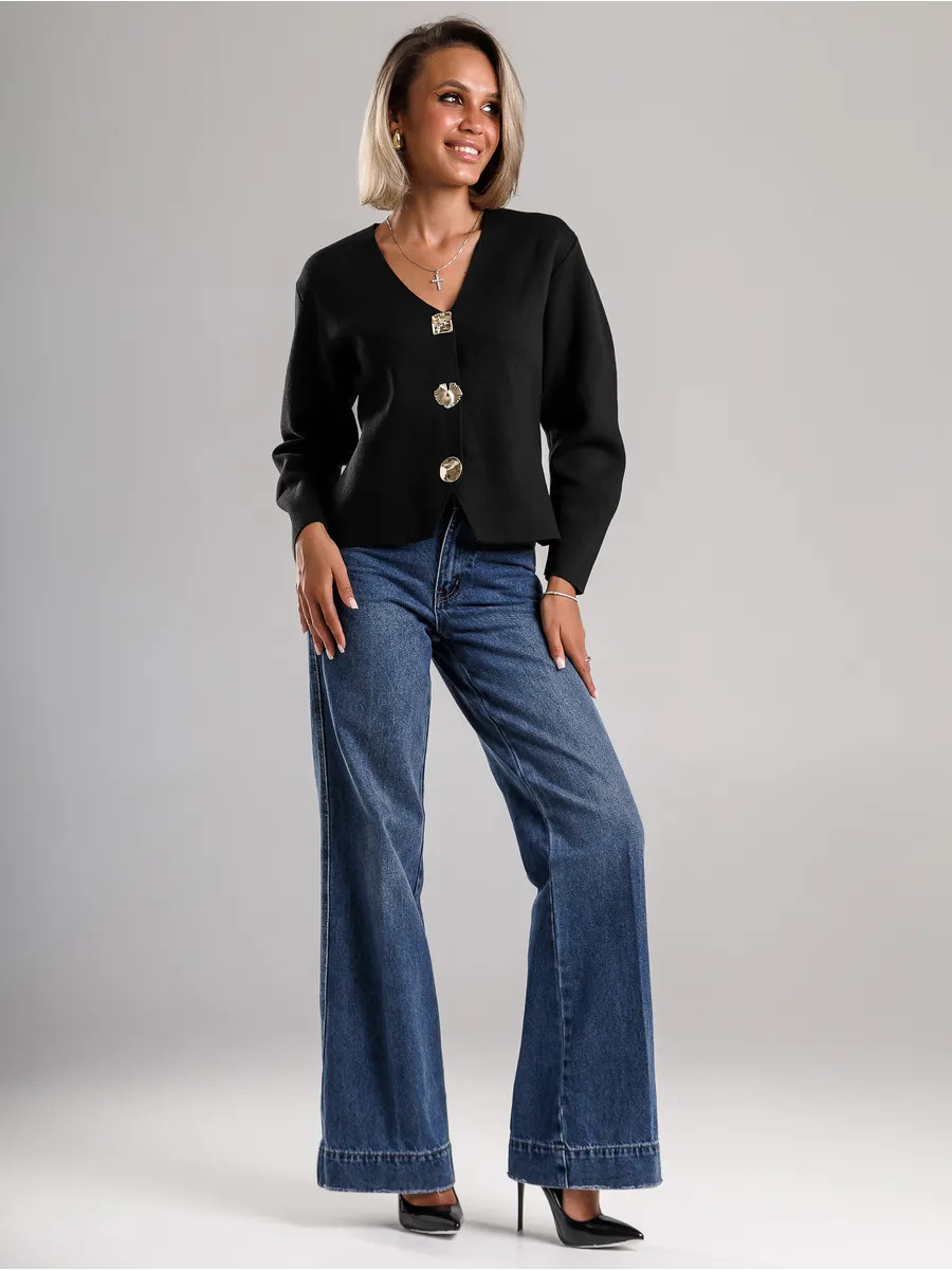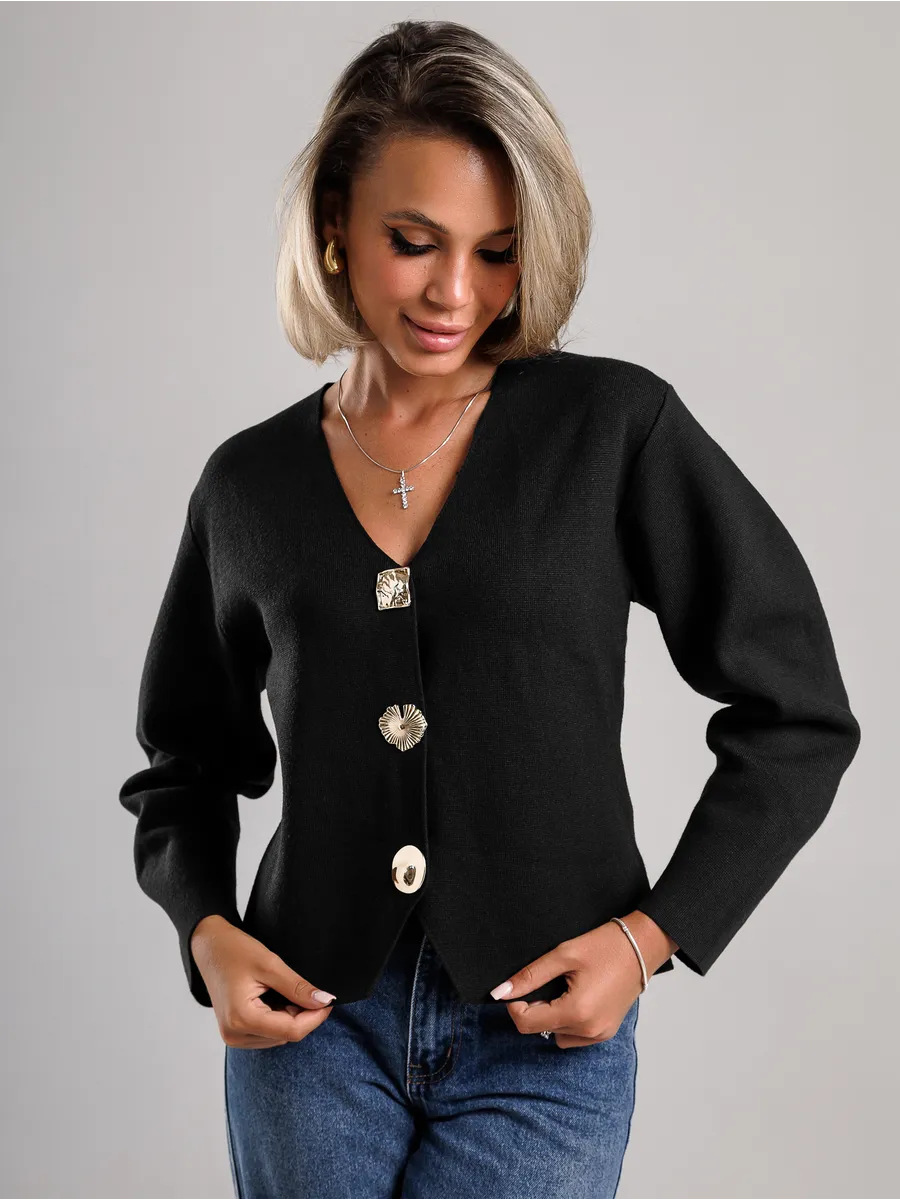 Copy| Product Name | Women Autumn/Winter Large Button V-neck Short Knitting Solid Outerwear Sweater |