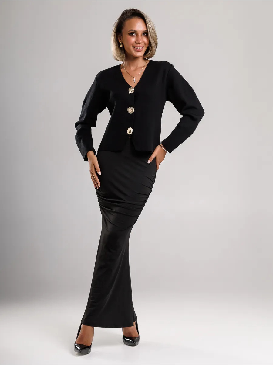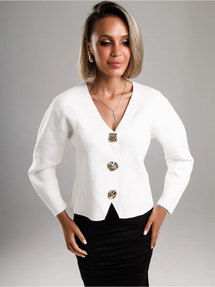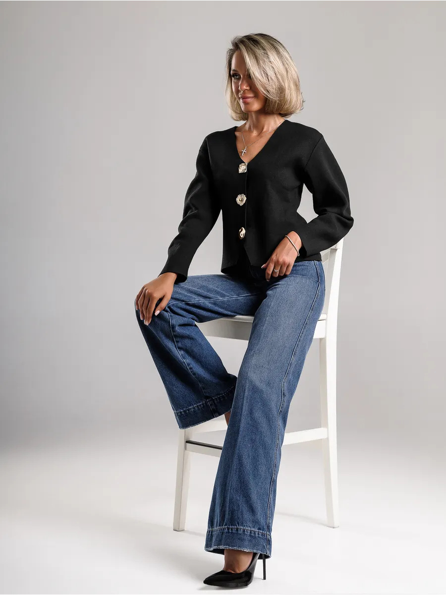 Copy| Product Name | Women Autumn/Winter Large Button V-neck Short Knitting Solid Outerwear Sweater |