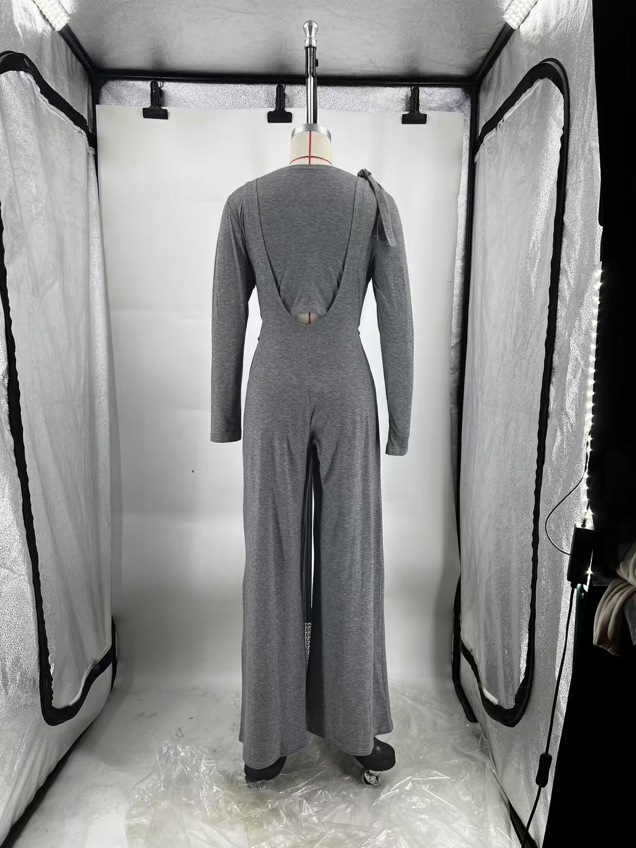 Copy| Product Name | Women Autumn/Winter Solid Long-Sleeved T-Shirt and Wide-Leg Overalls Two-Piece Set |