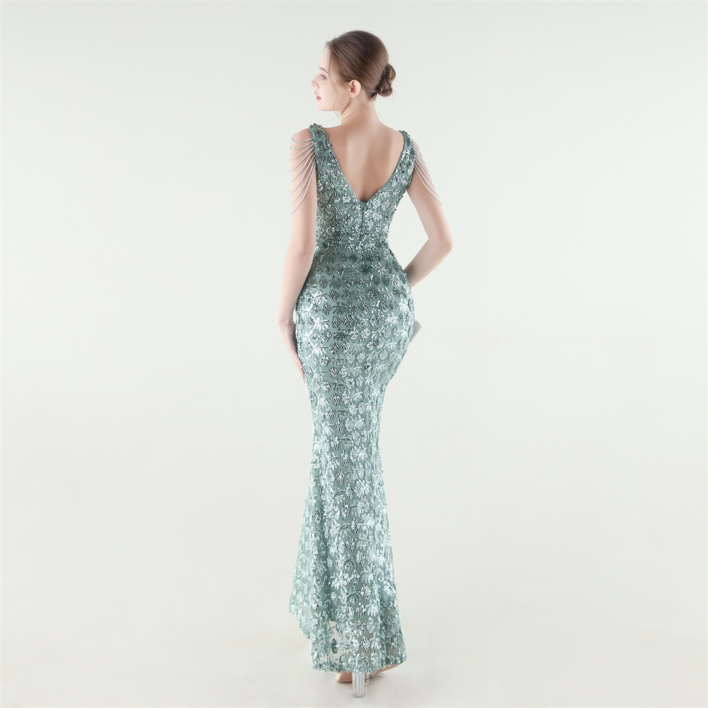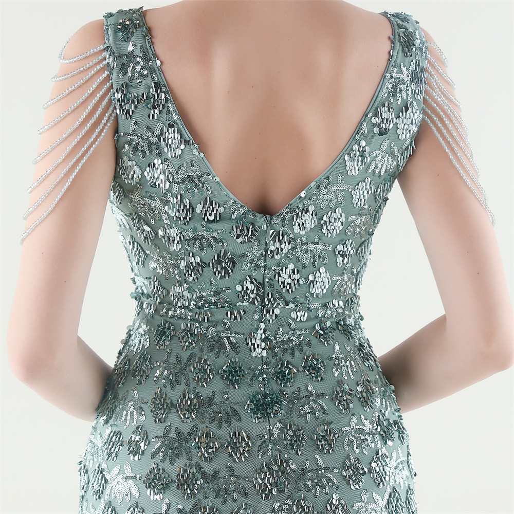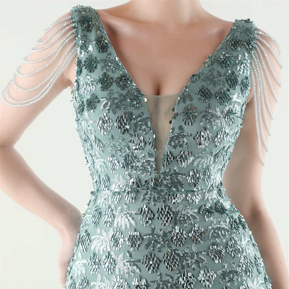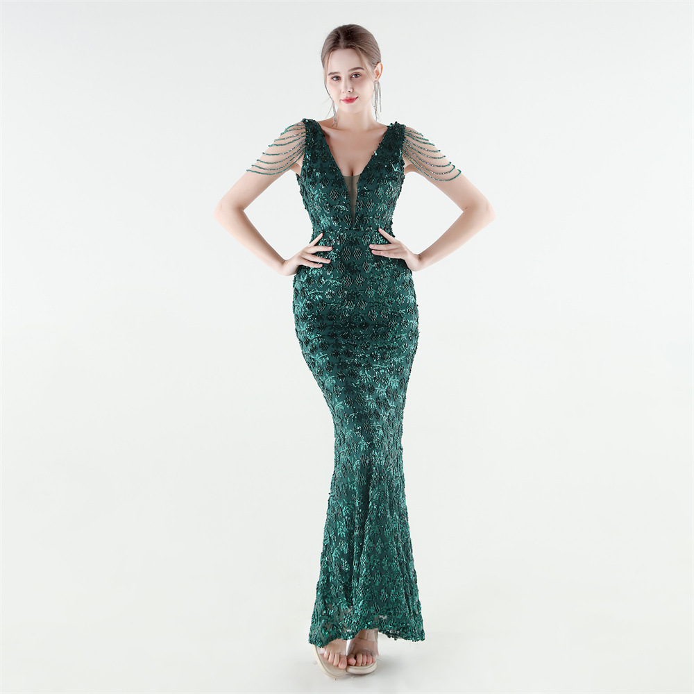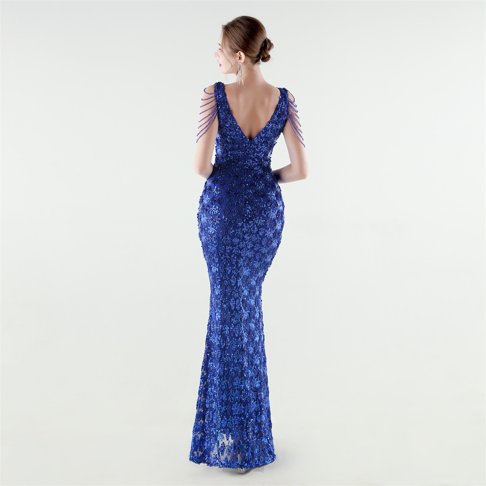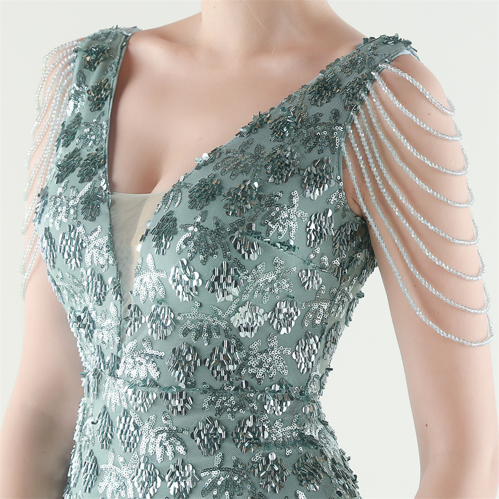 Copy| Product Name | Women Beaded Rhinestone V-Neck Mermaid Evening Dress |