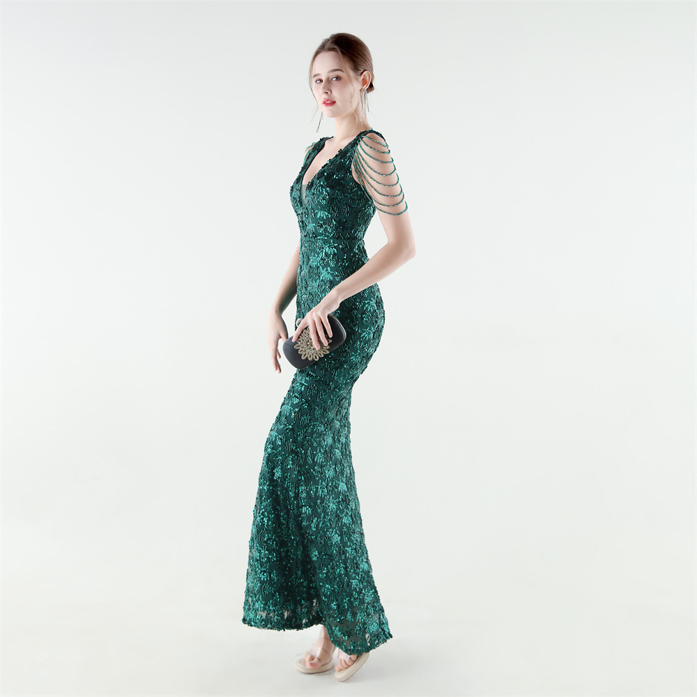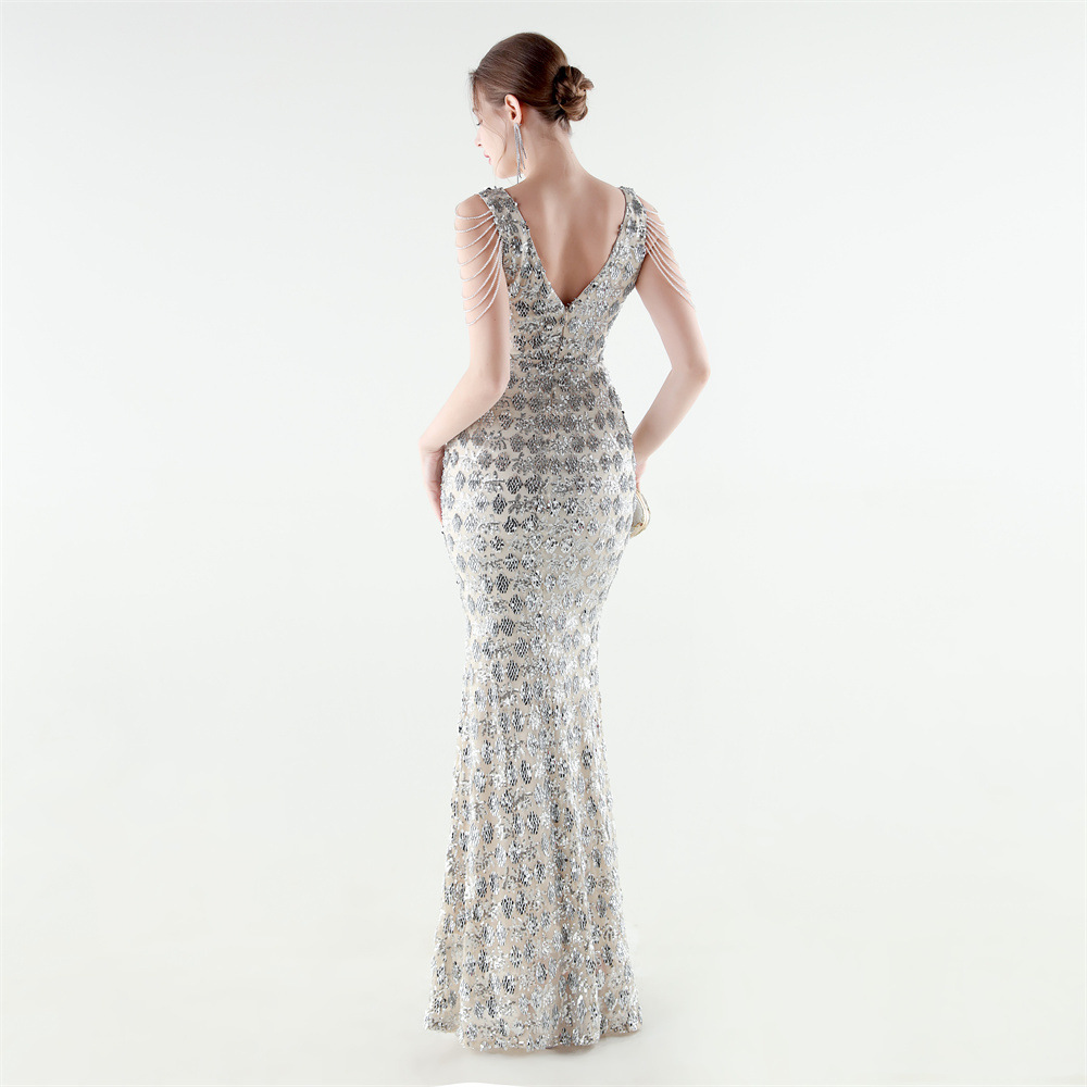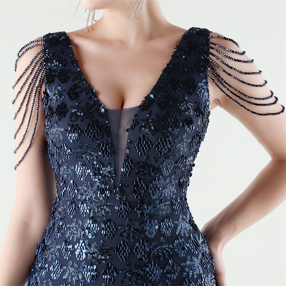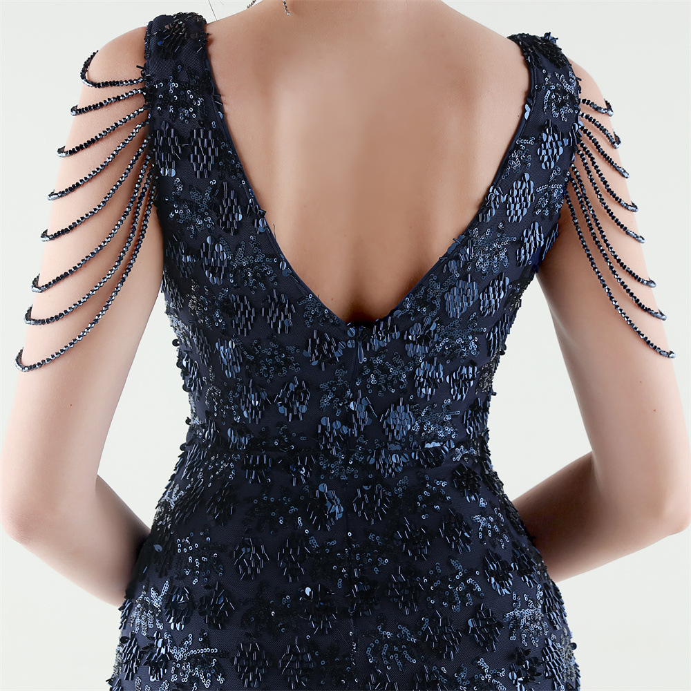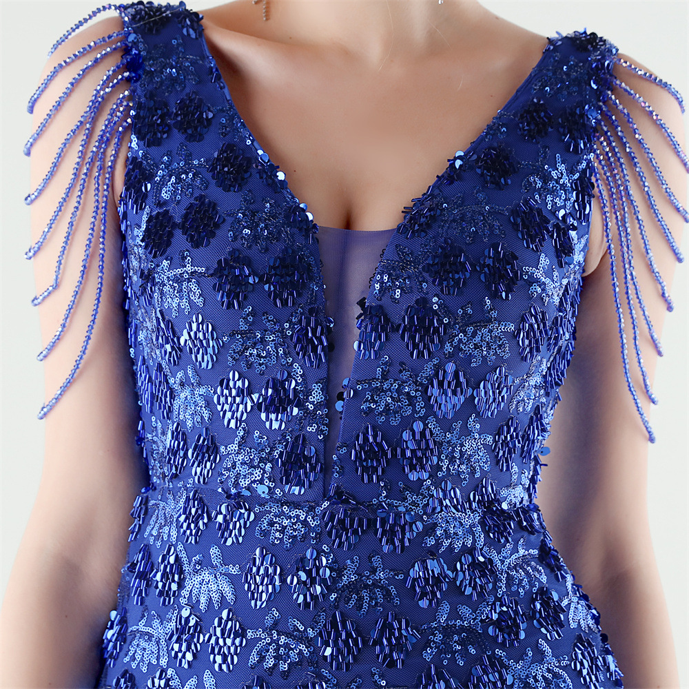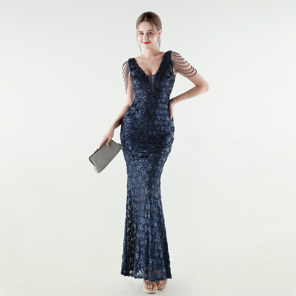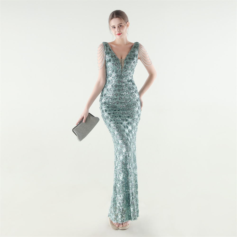Copy| Product Name | Women Beaded Rhinestone V-Neck Mermaid Evening Dress |