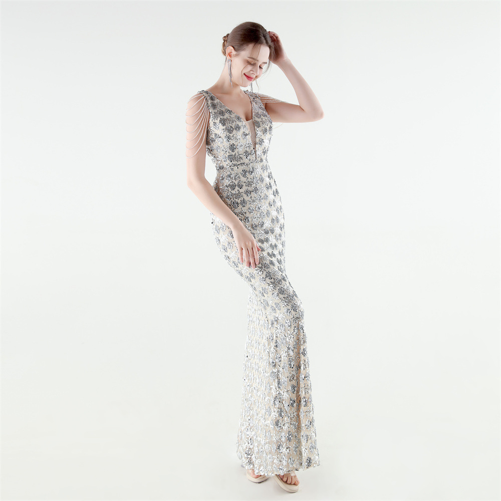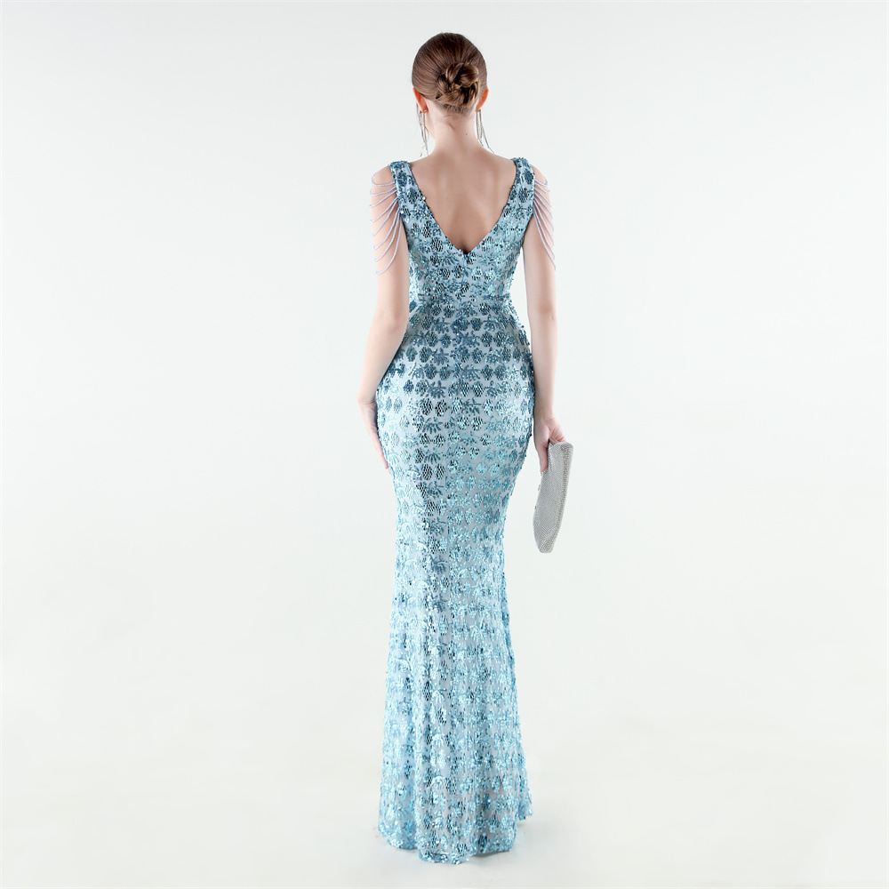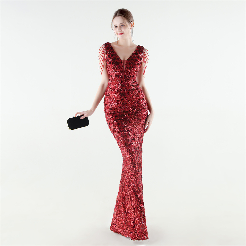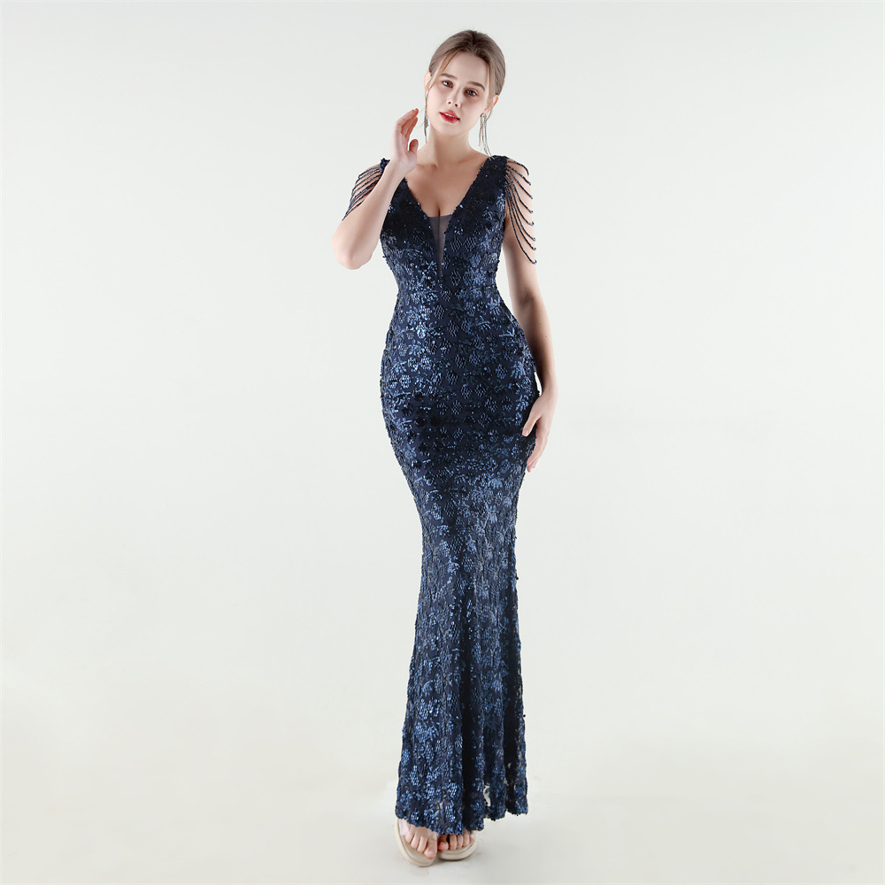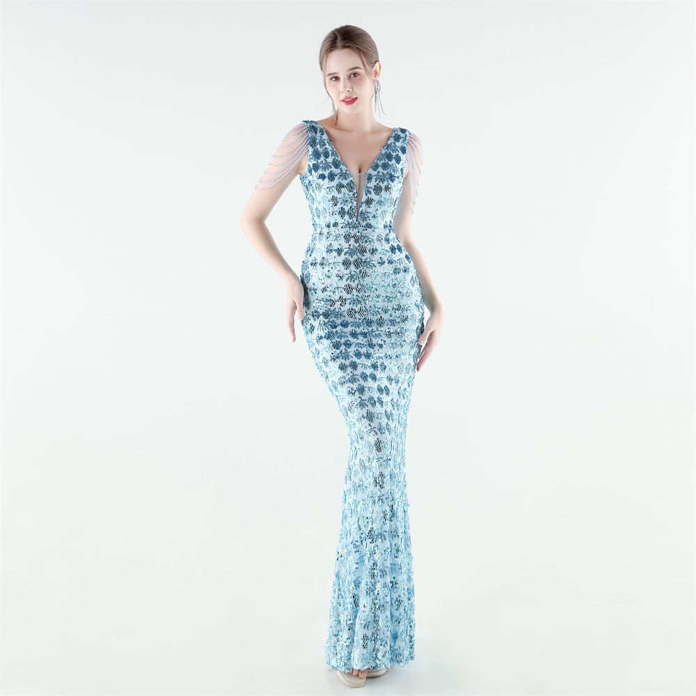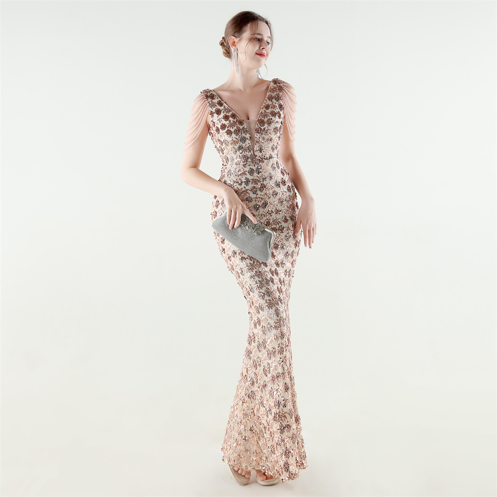 Copy| Product Name | Women Beaded Rhinestone V-Neck Mermaid Evening Dress |