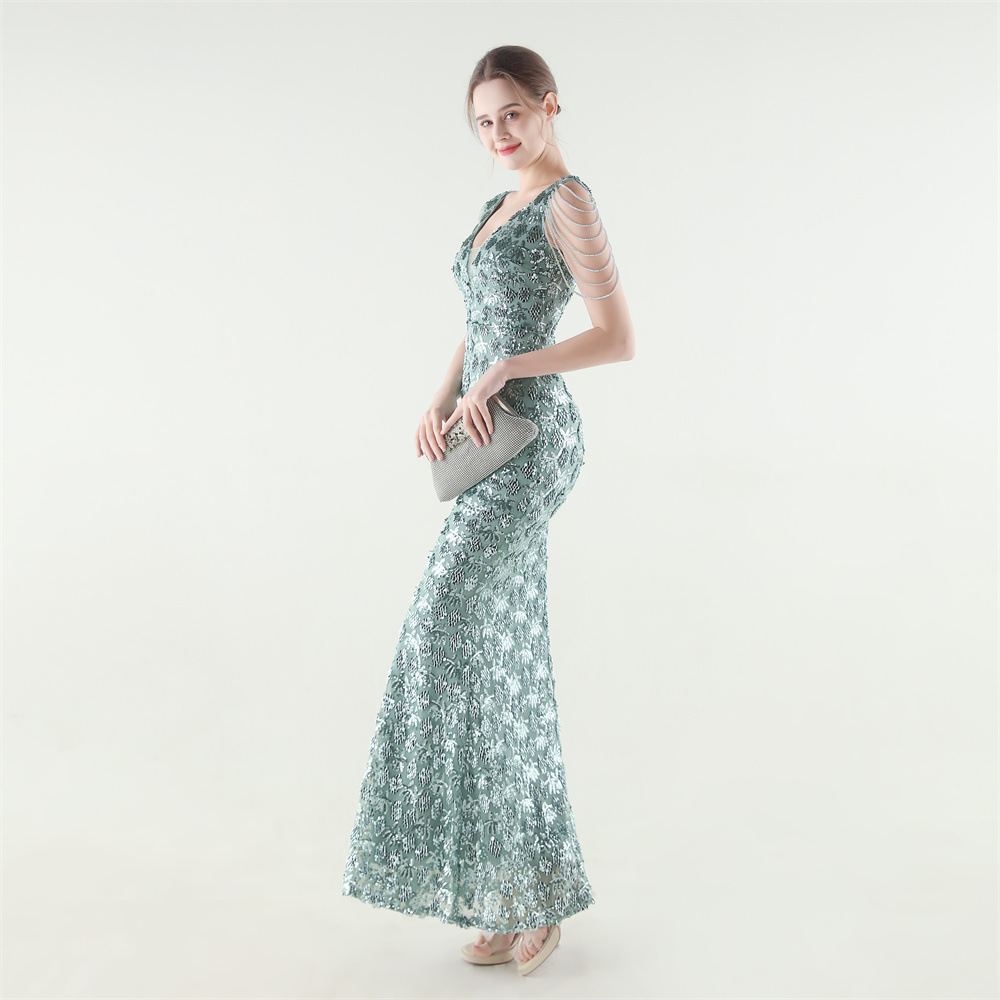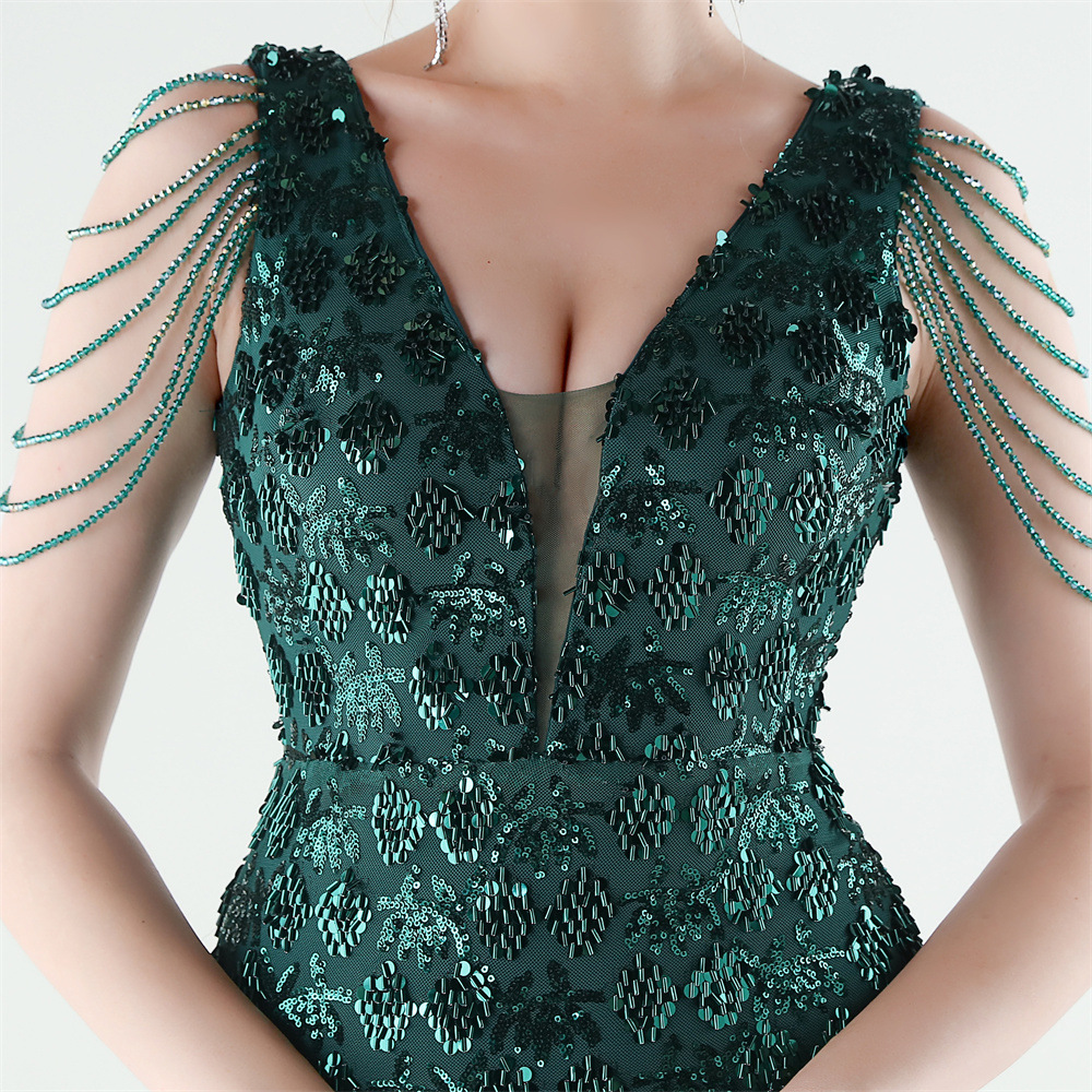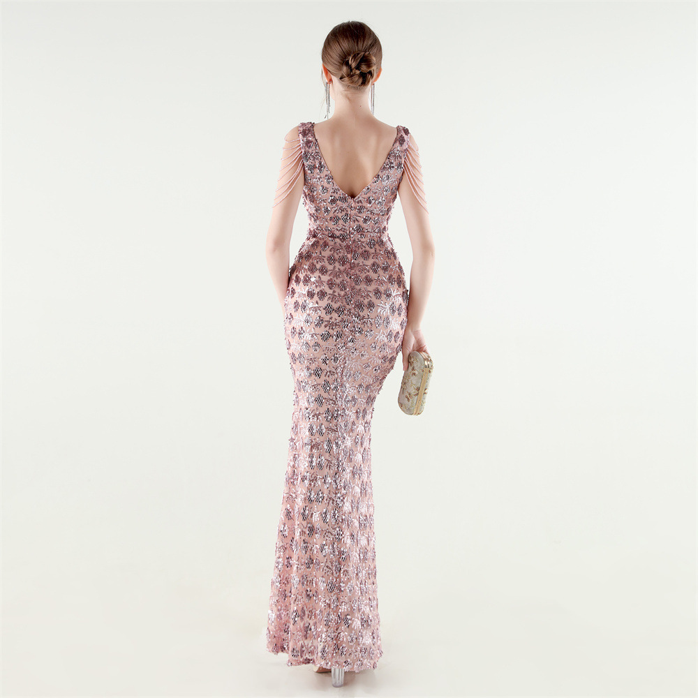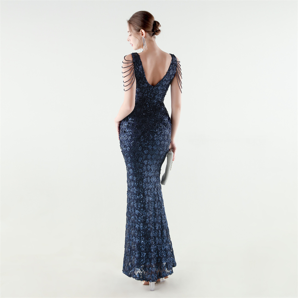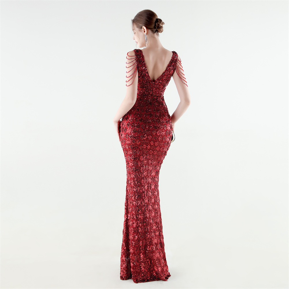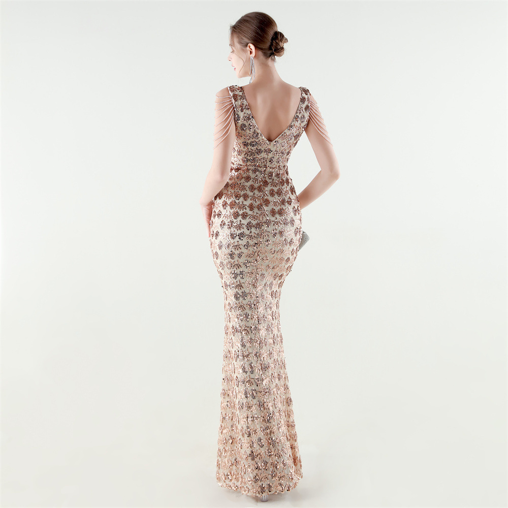 Copy| Product Name | Women Beaded Rhinestone V-Neck Mermaid Evening Dress |