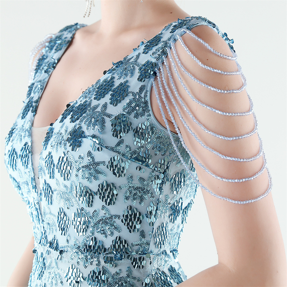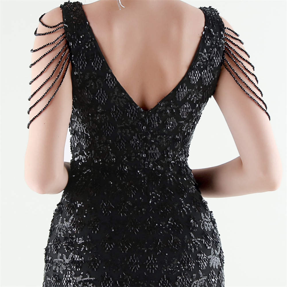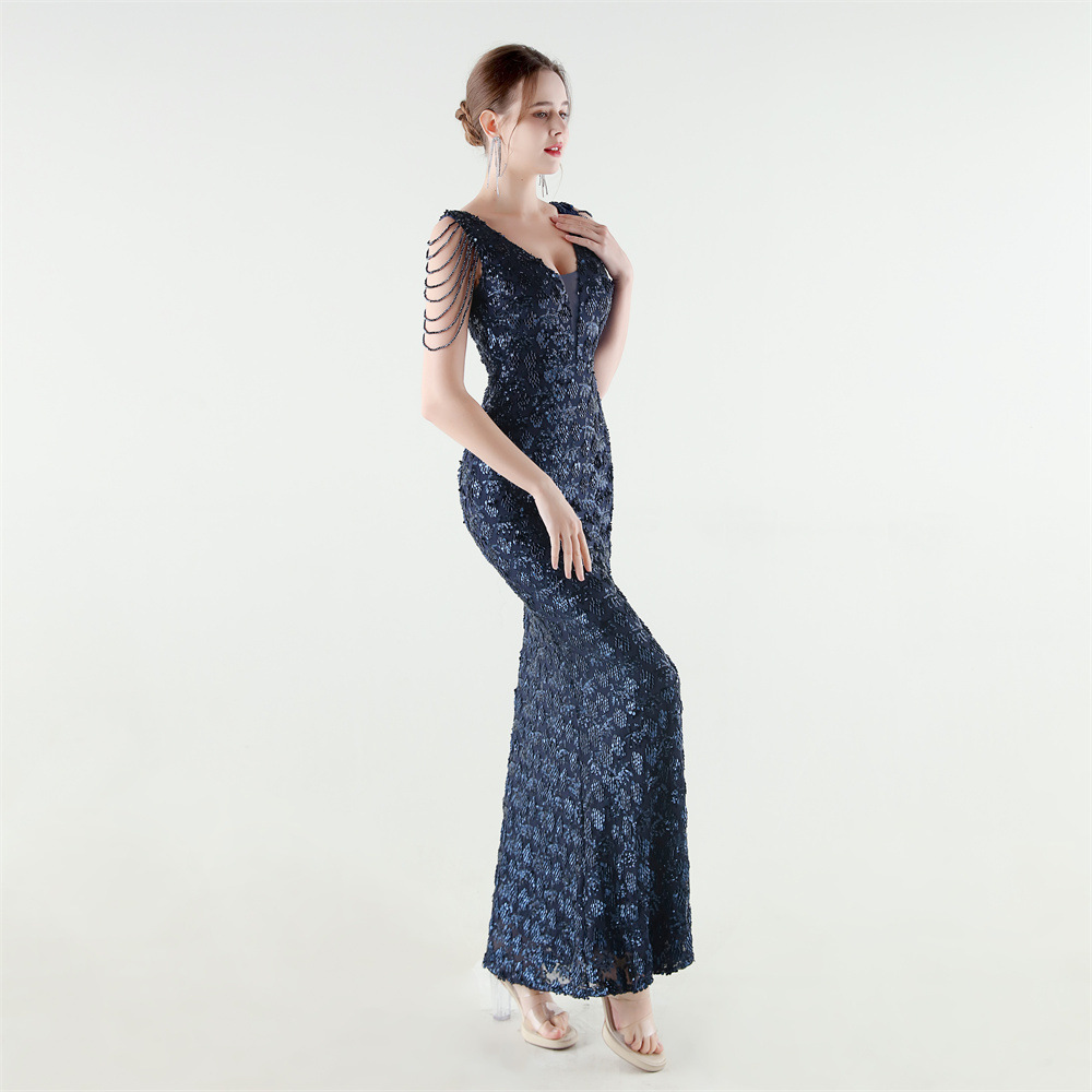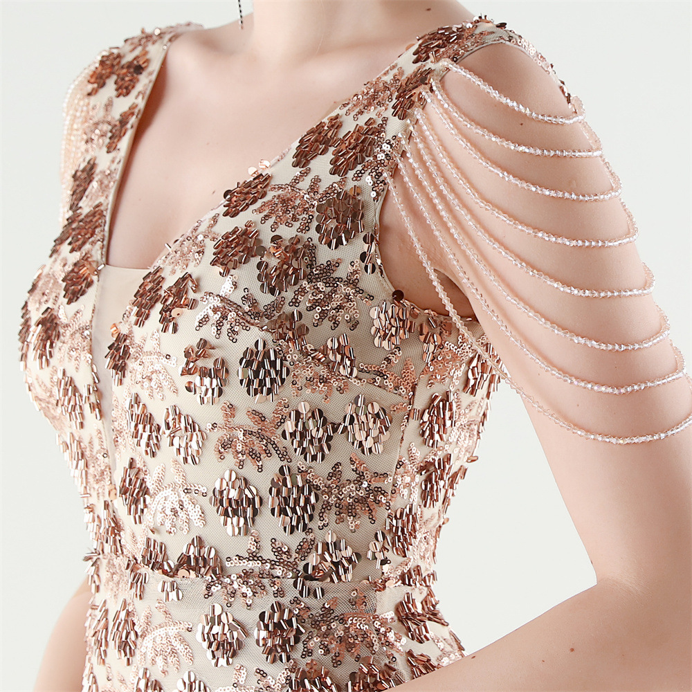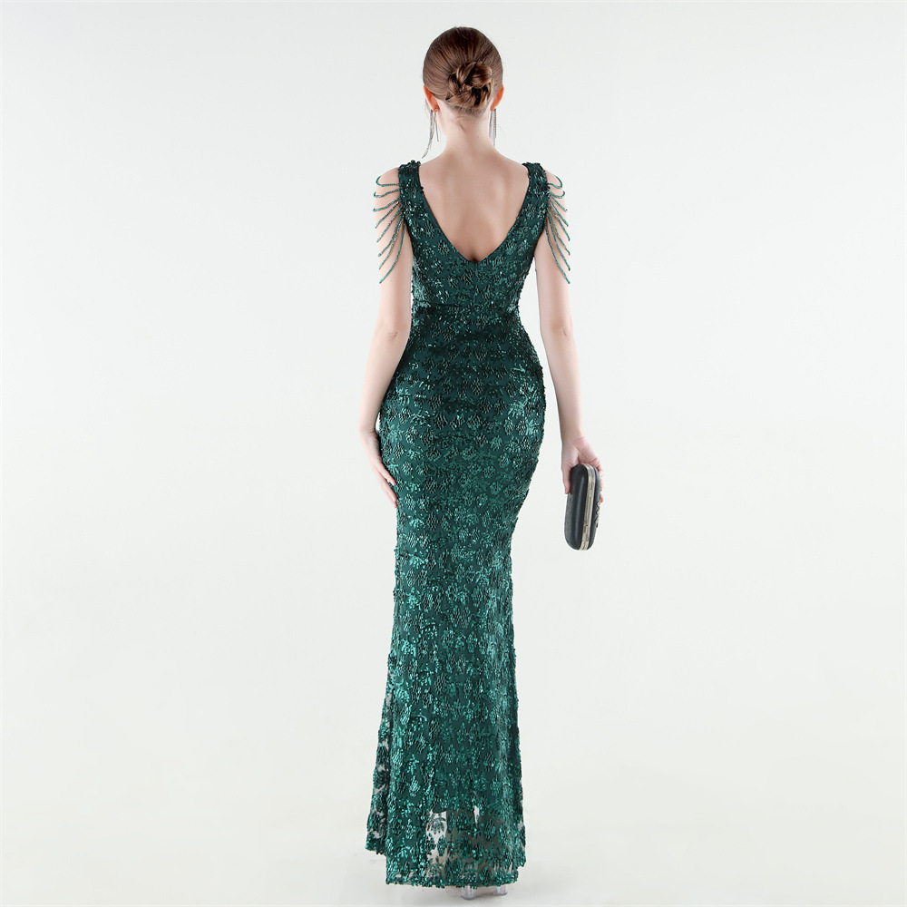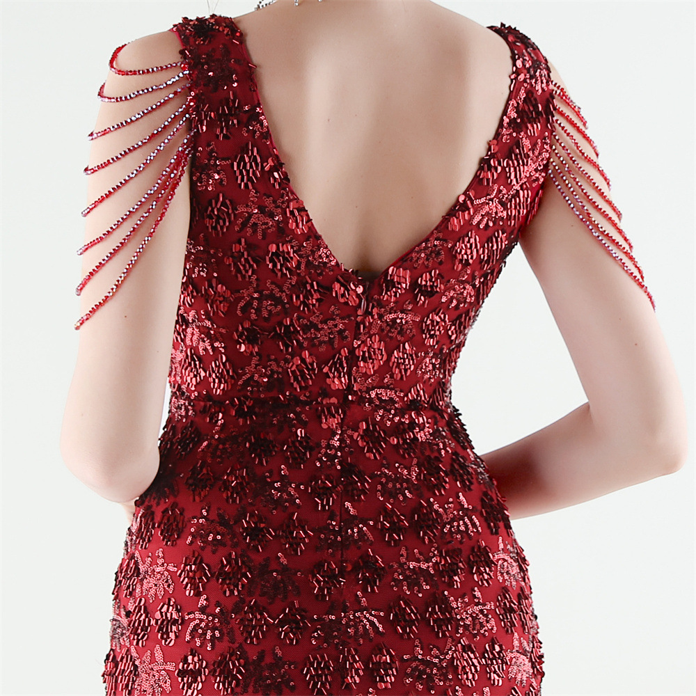 Copy| Product Name | Women Beaded Rhinestone V-Neck Mermaid Evening Dress |