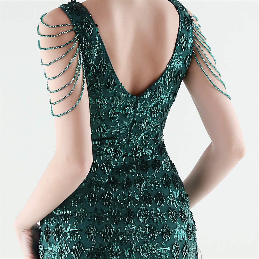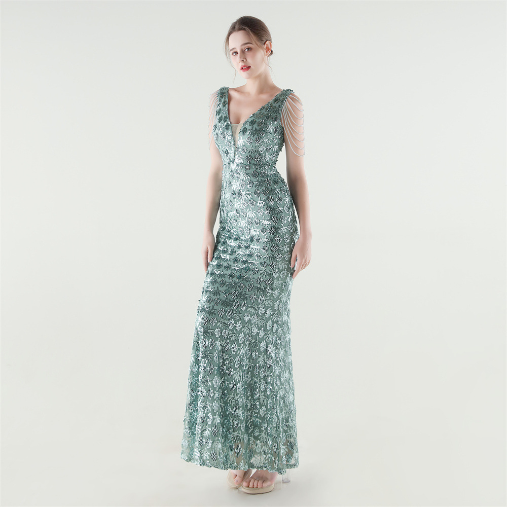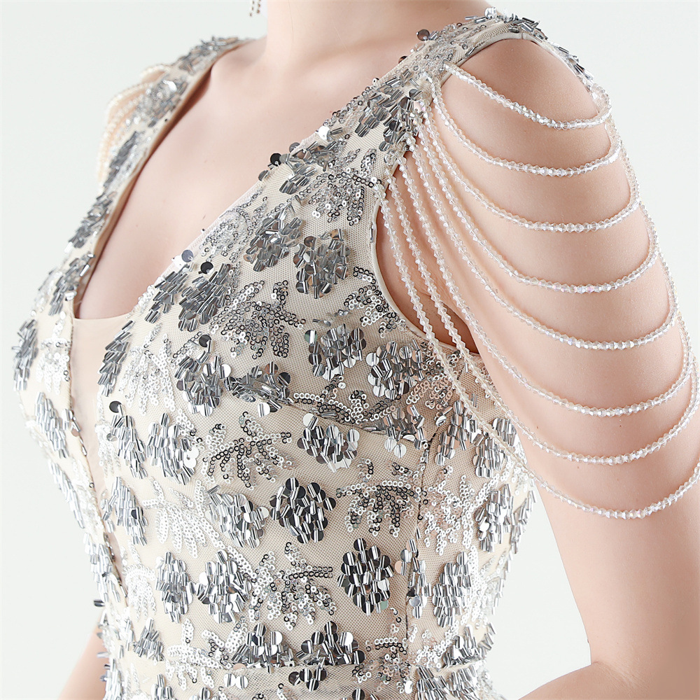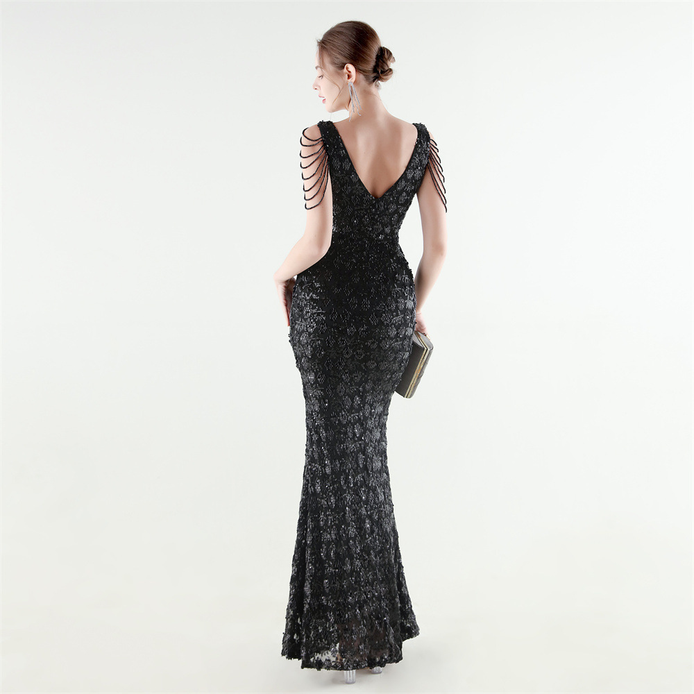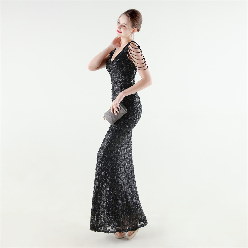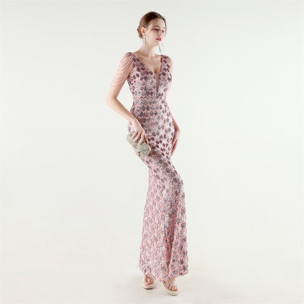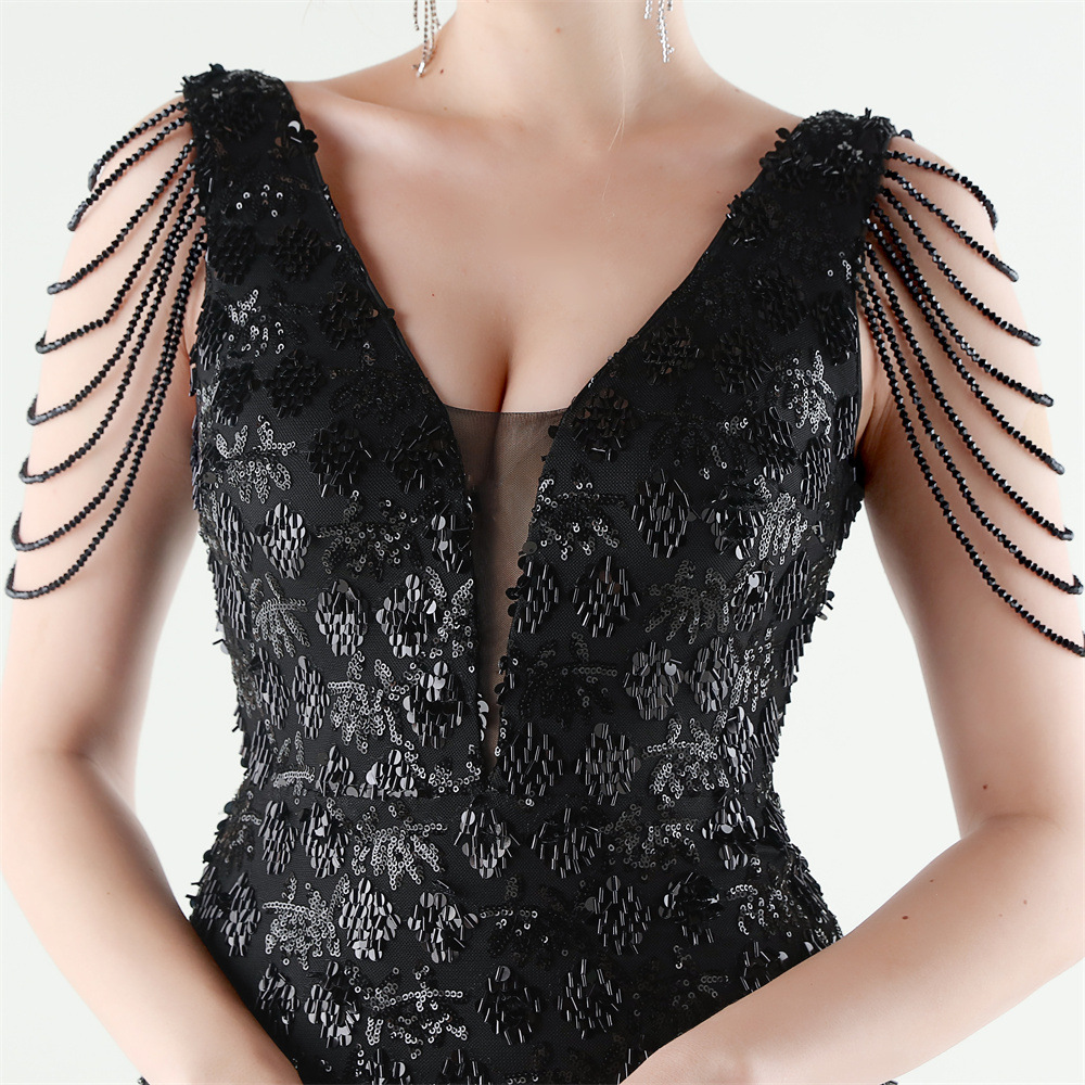 Copy| Product Name | Women Beaded Rhinestone V-Neck Mermaid Evening Dress |