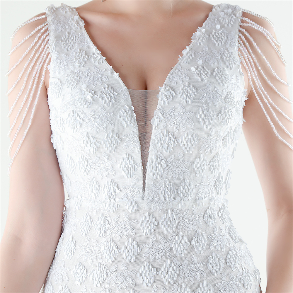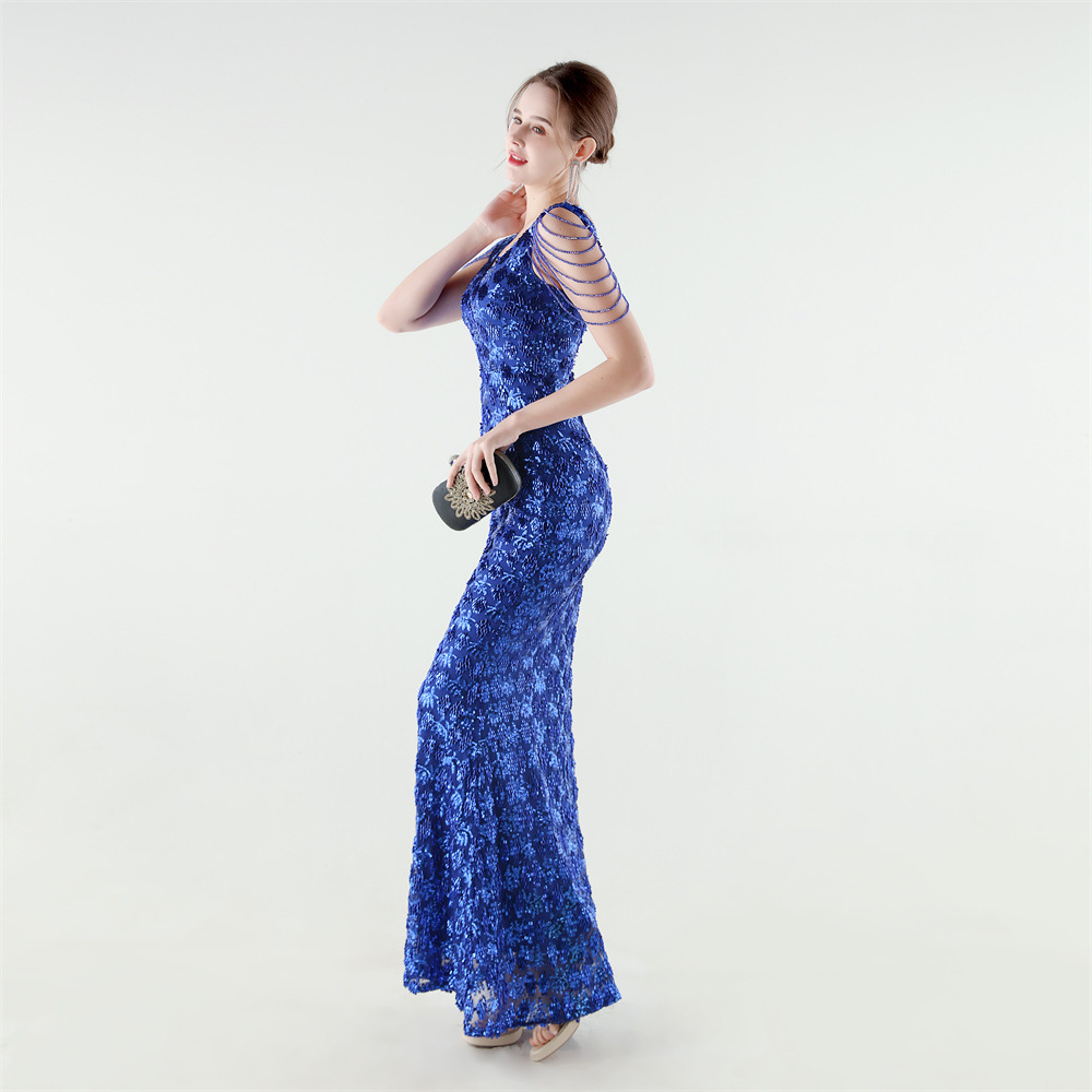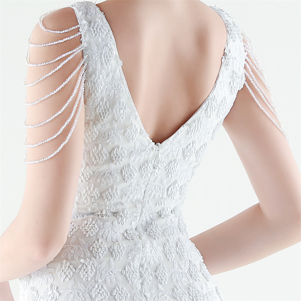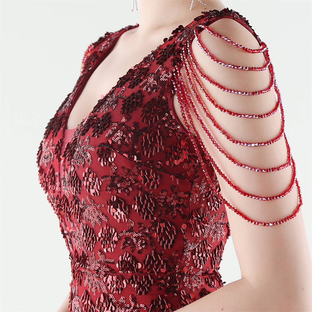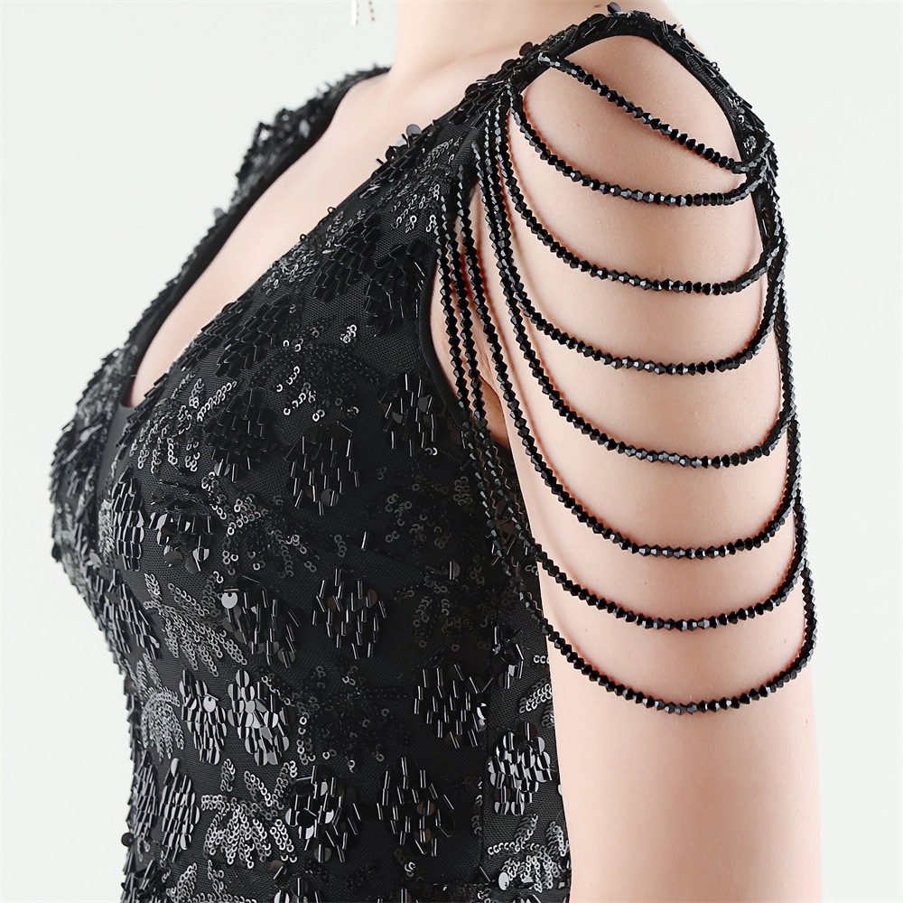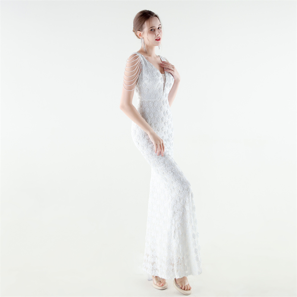Copy| Product Name | Women Beaded Rhinestone V-Neck Mermaid Evening Dress |