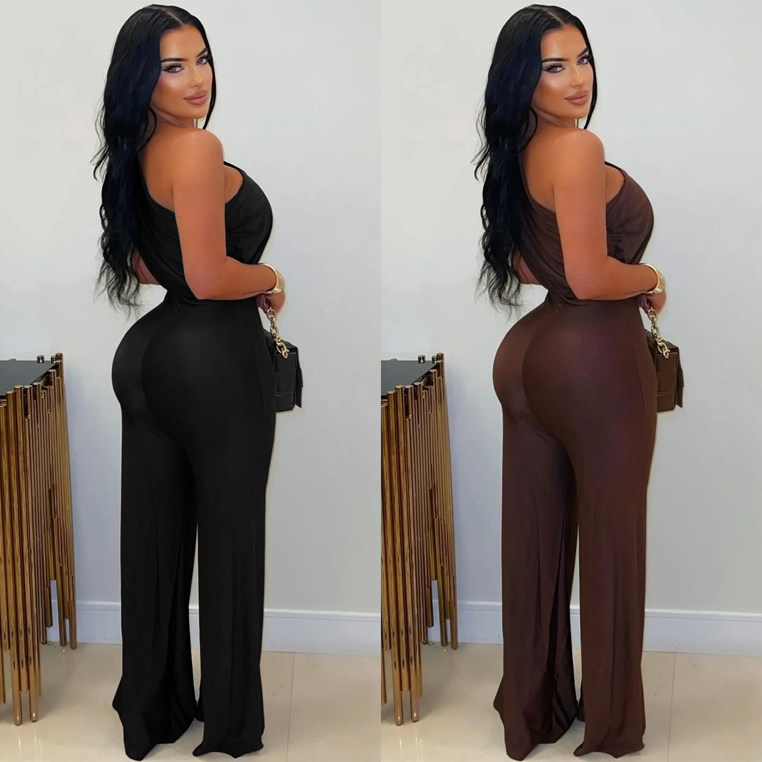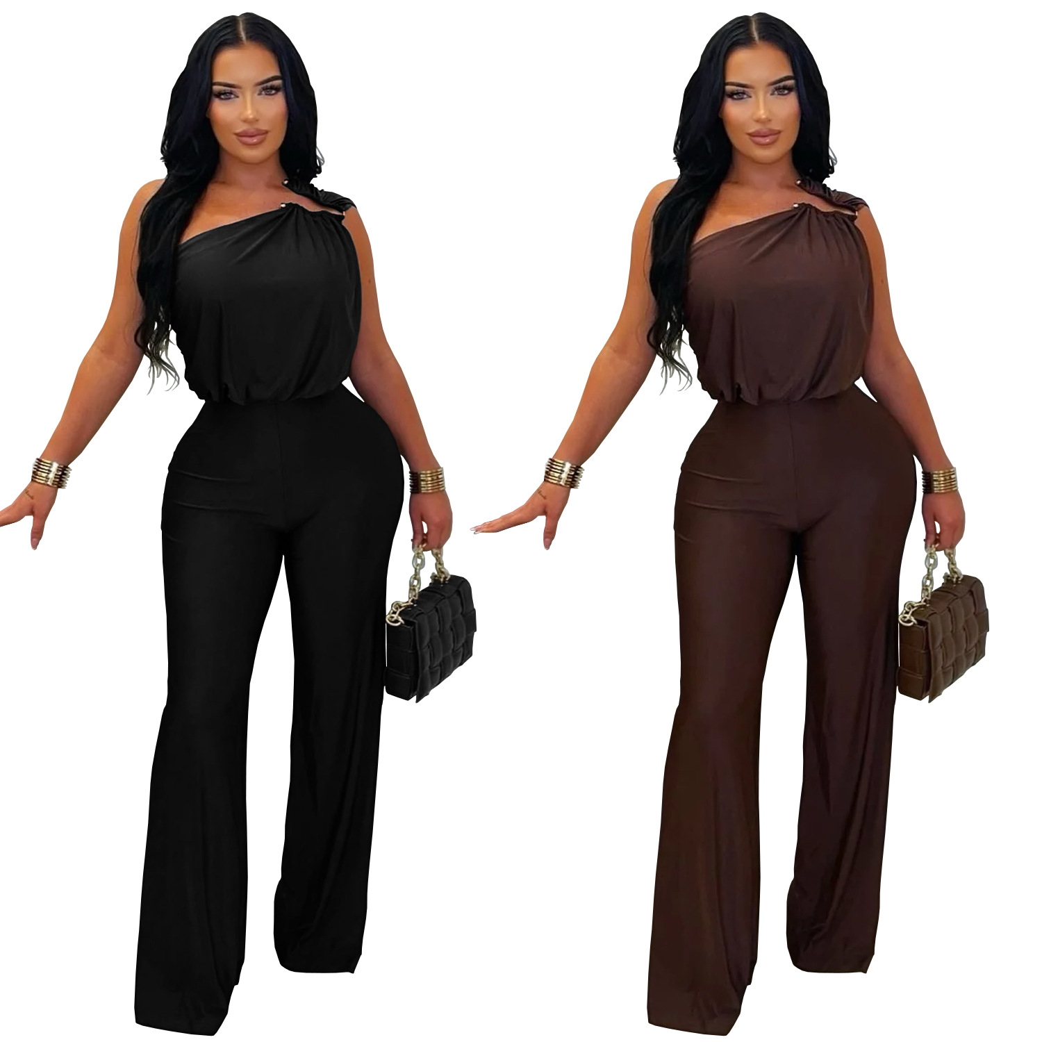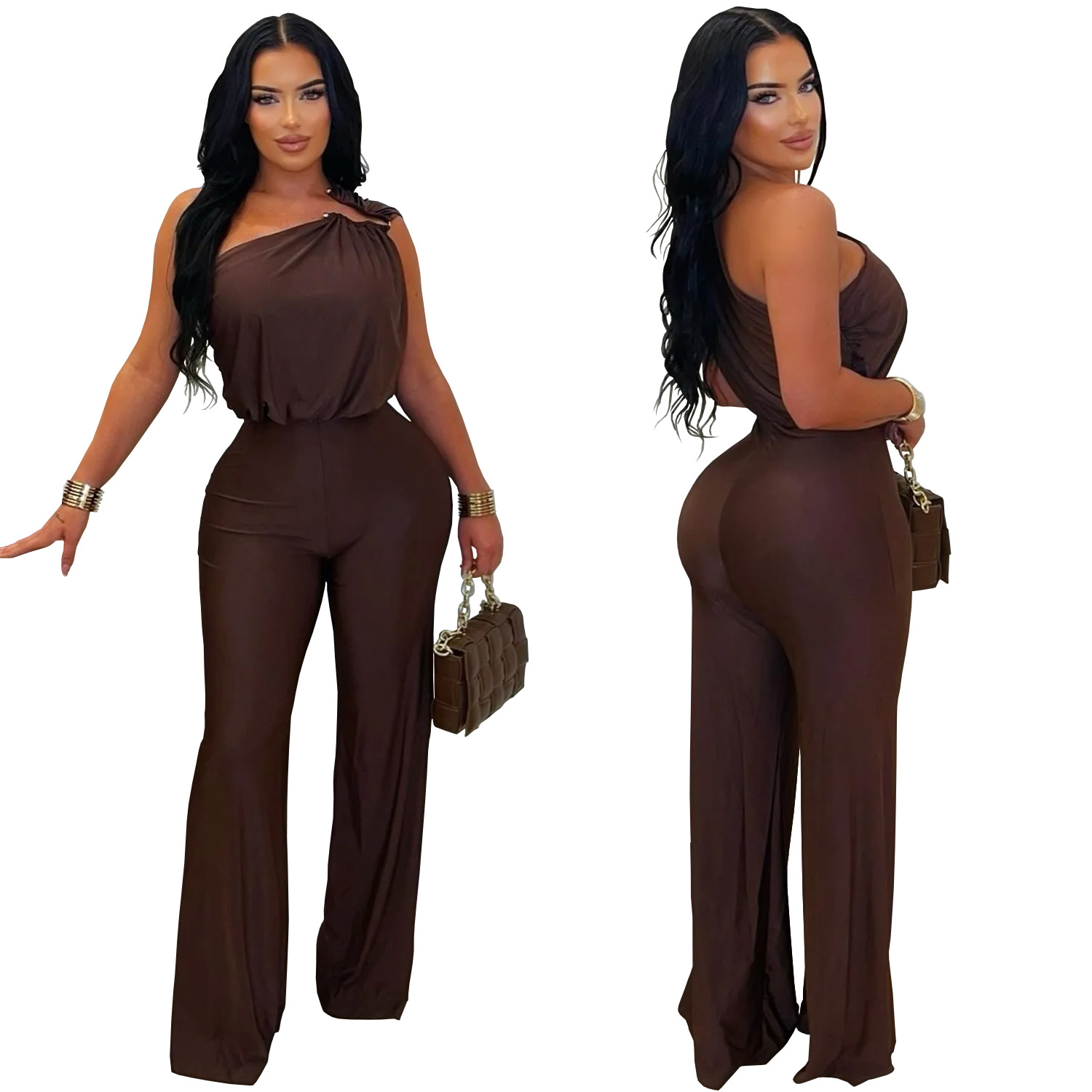 This Women Casual Slash Shoulder Sleeveless Bodycon Jumpsuit Design Made Of High Quality Polyster And Spandex Material. It Is Stretchy, Durable And Comfortable. Cheap Sexy Jumpsuits For Women Has Long Been a Party Favorite. Global Lover Provide a Rich Selction Of Sequin, Beaded, See Through Mesh, Leopard, Floral Lace, Leather, Velvet, Tight And Fitted Wholesale Jumpsuit Without Moq Limit.