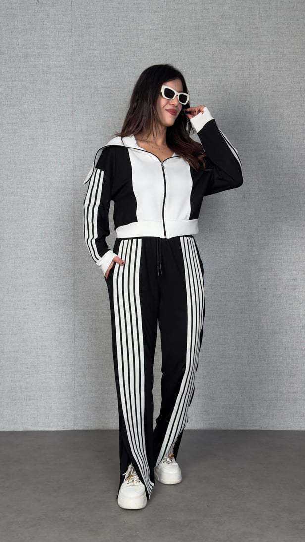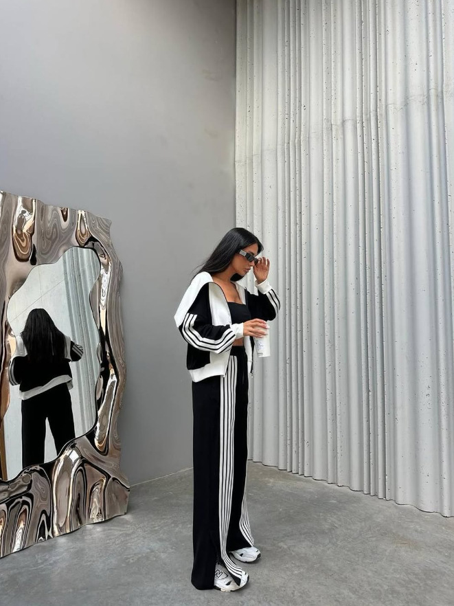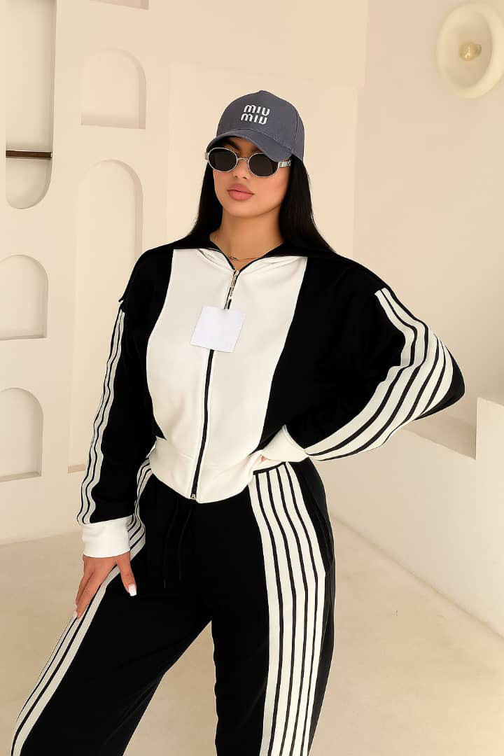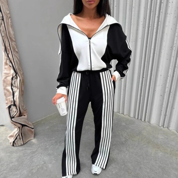 Copy| Product Name | Women Color-Blocked Long-Sleeved Zipper Top and Pants Two-Piece Set |