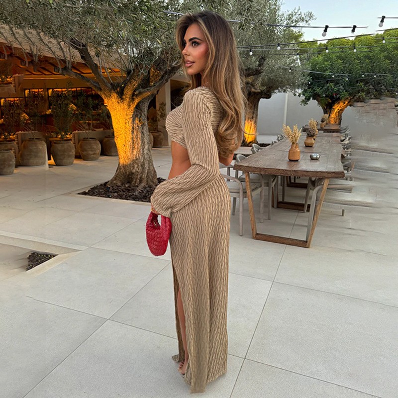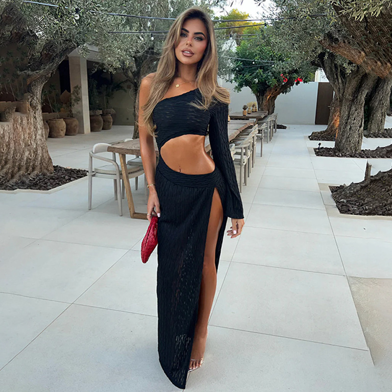 Copy| Product Name | Women Crop Top and Sexy Slit Skirt Two-Piece Set |