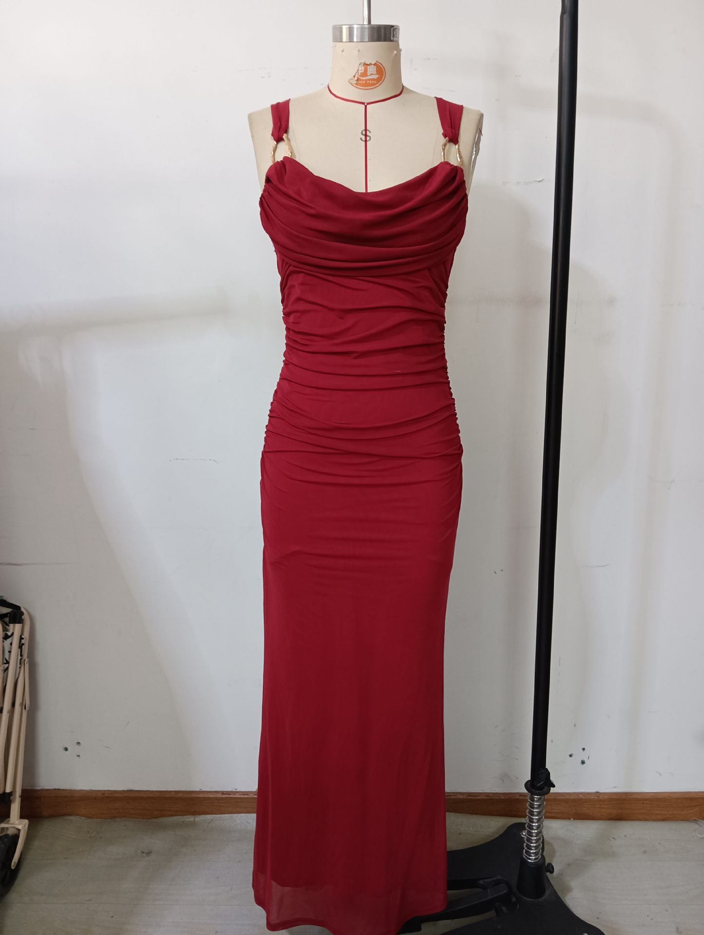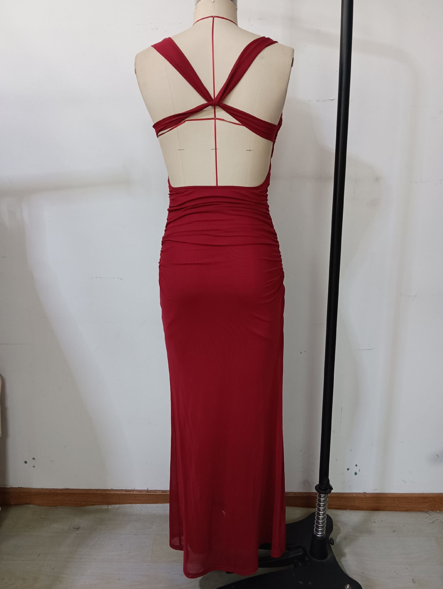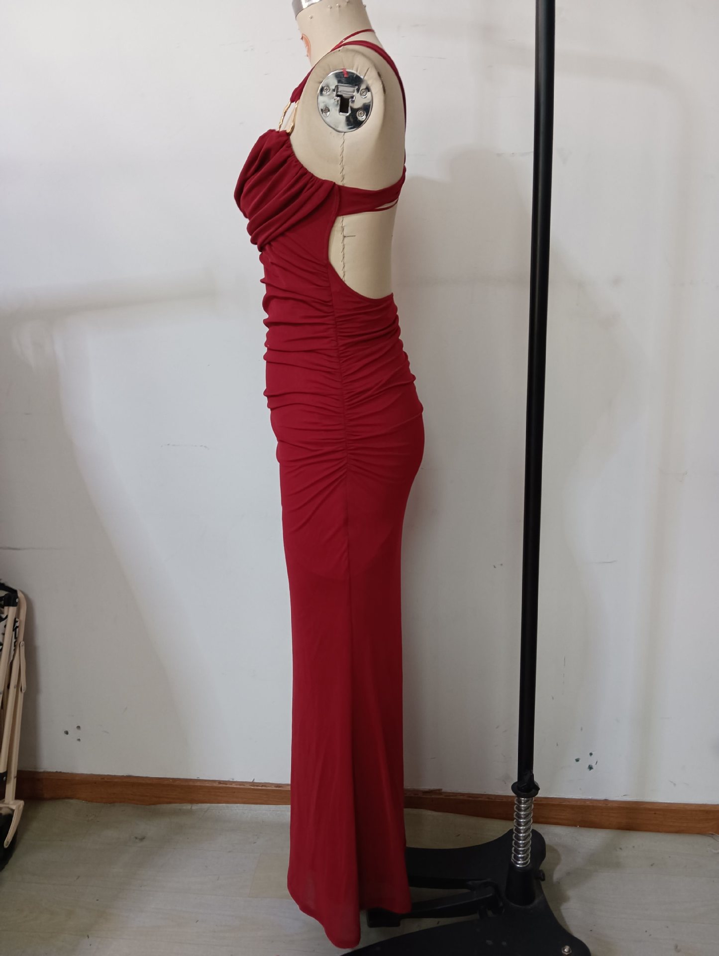 Copy| Product Name | Women Elegant Draped Metal Ring Backless Cross-Strap Camisole Evening Dress |