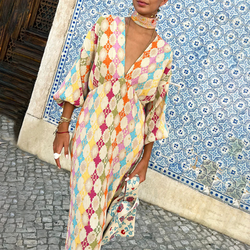 This Women Elegant Print Elegant v-Neck Lantern Short-Sleeve Maxi Dress Design Made Of High Quality Polyster And Spandex Material. It Is Stretchy, Durable And Comfortable. Casual Dresses With Long Sleeves Can Not Only Be Worn As Outerwear In Spring And Autumn, But Also Matching a Jacket In Winter, It Is a Must Have Item For Every Season. Grab Really Great Buy Casual Dresses For Women And Grow Your Business. No Moq In Global-Lover.