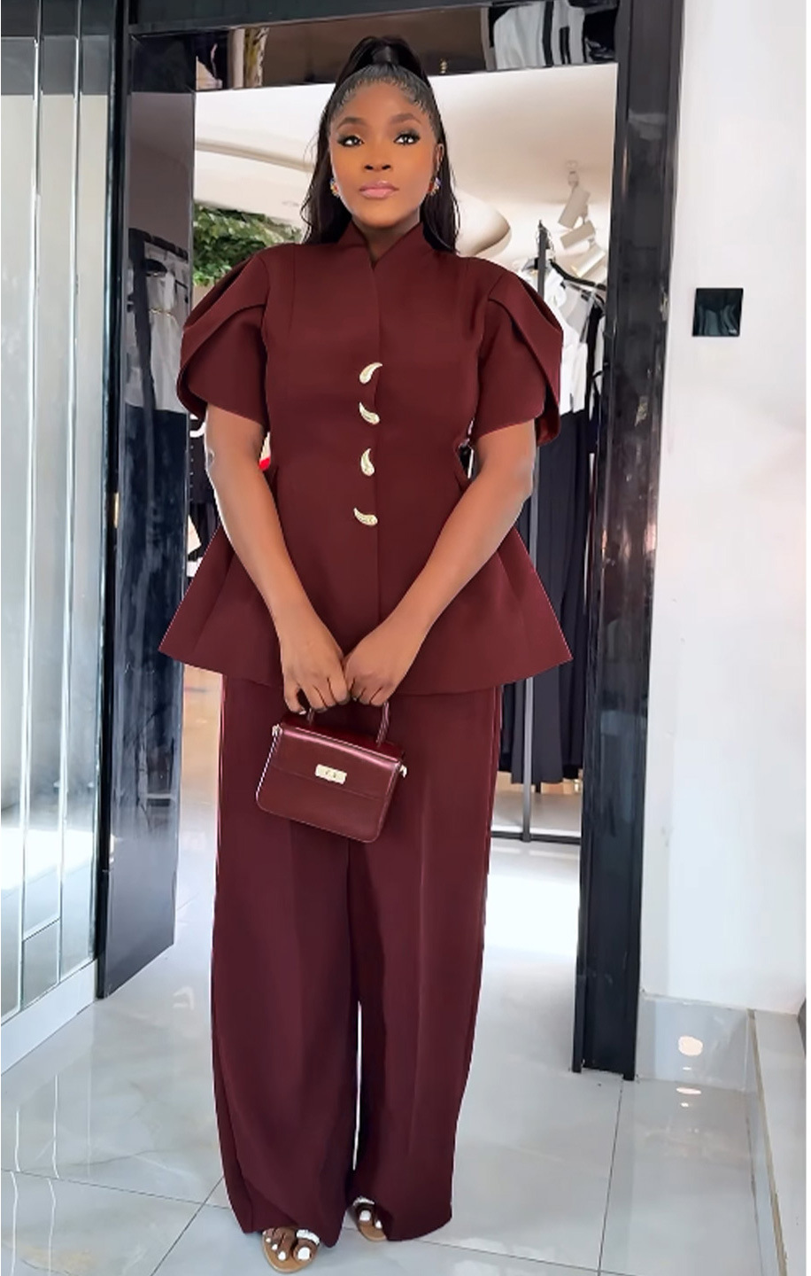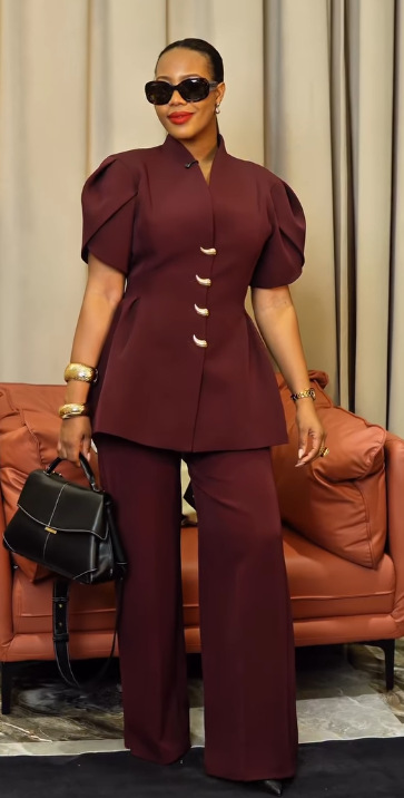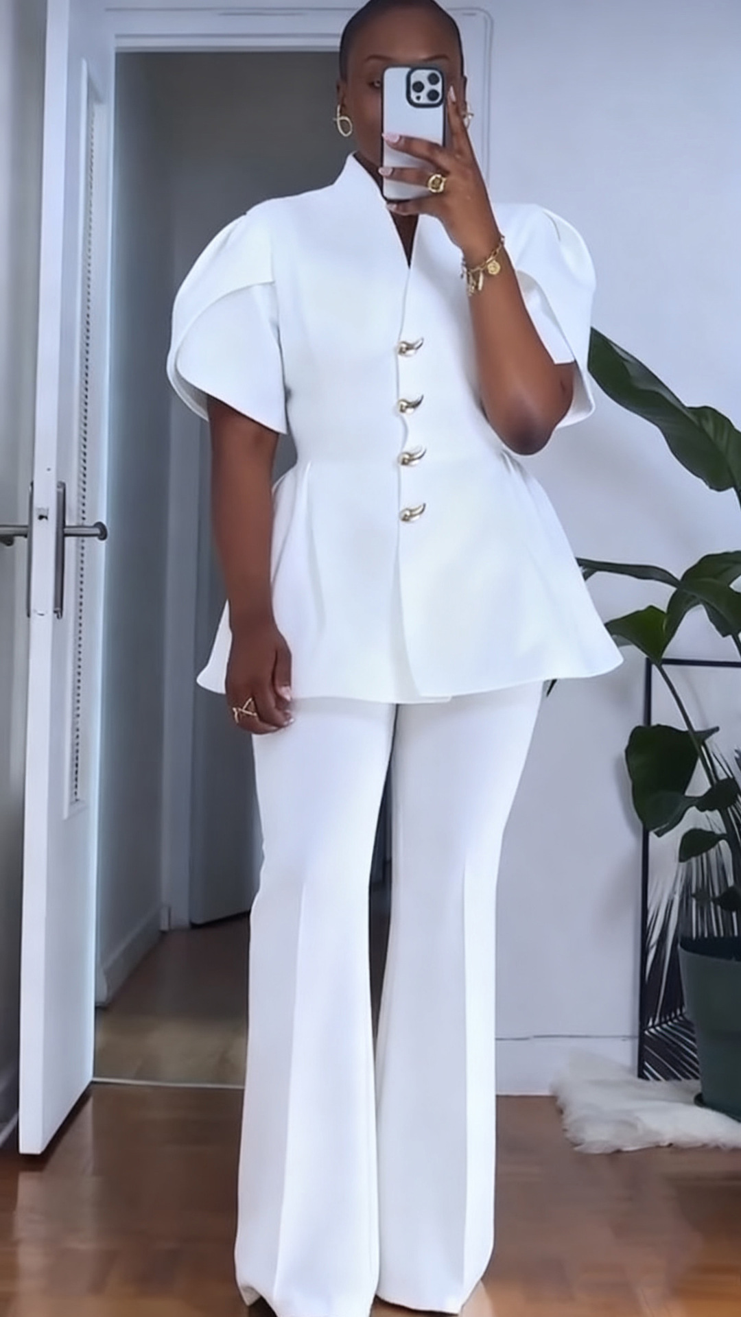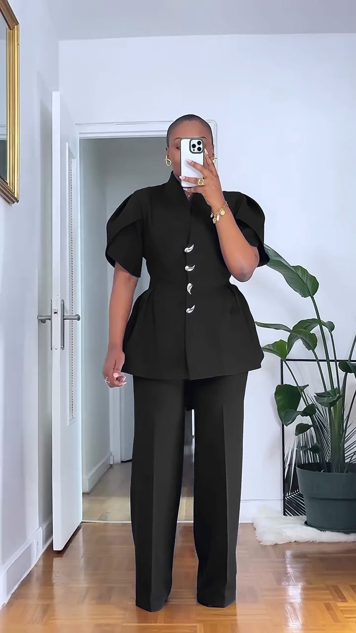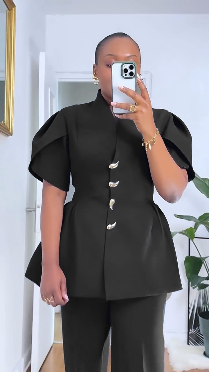 Copy| Product Name | Women Elegant Puff Sleeve Button Top and Pant Two-Piece Set |
