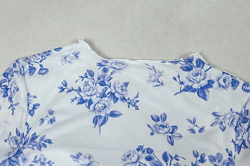 Copy| Product Name | Women Elegant Sexy Printed Ruched Round Neck Long-Sleeve Bodycon Dress |
