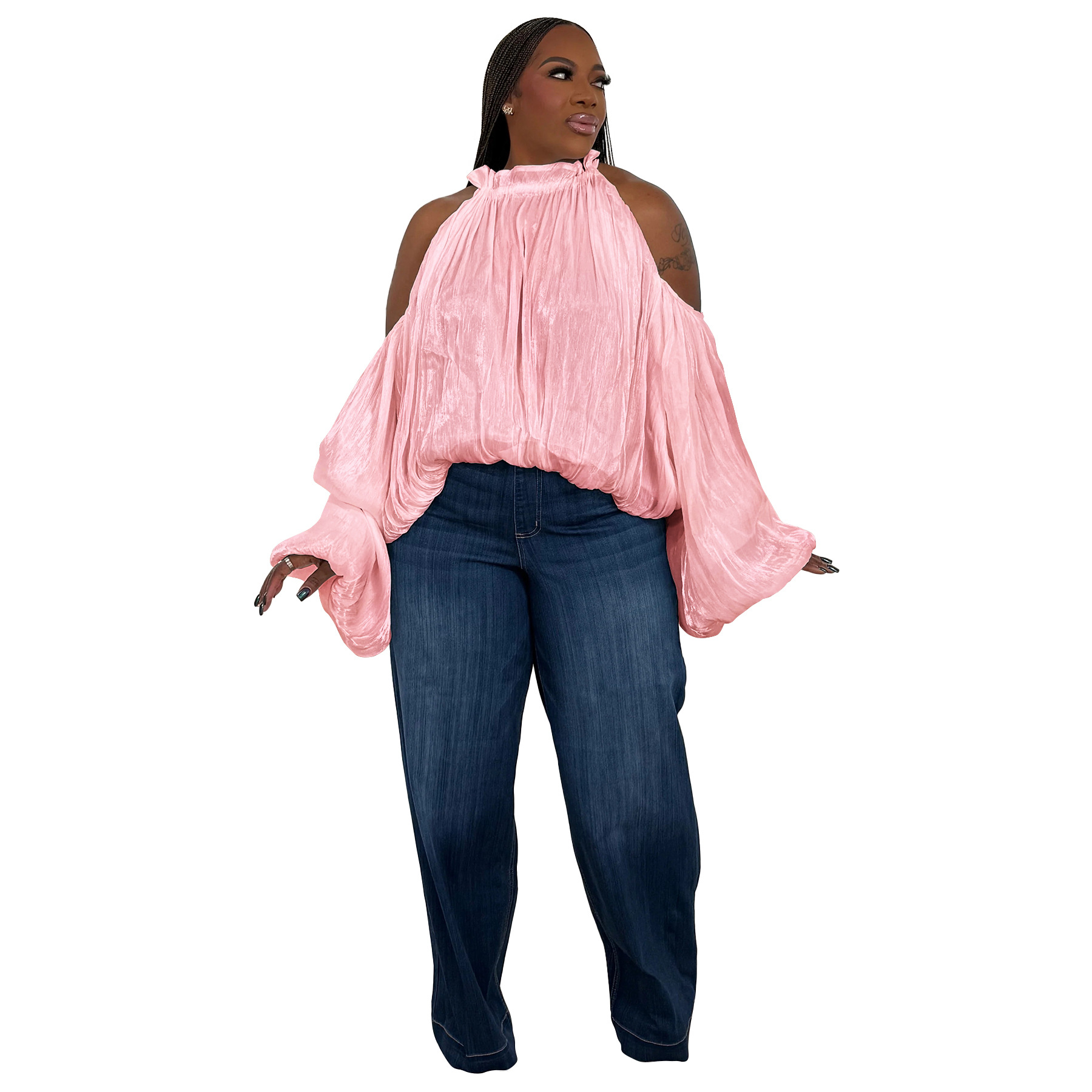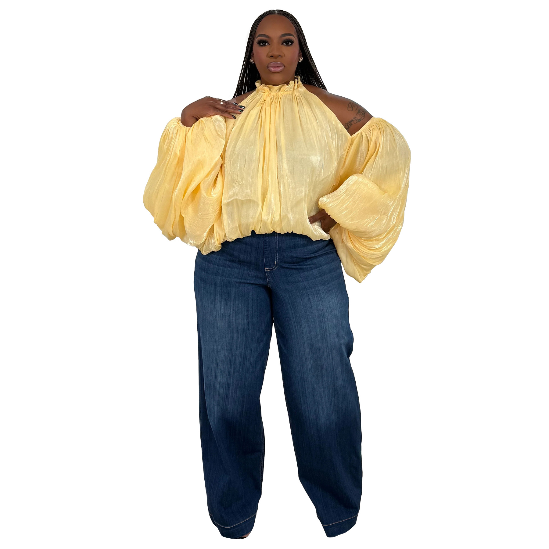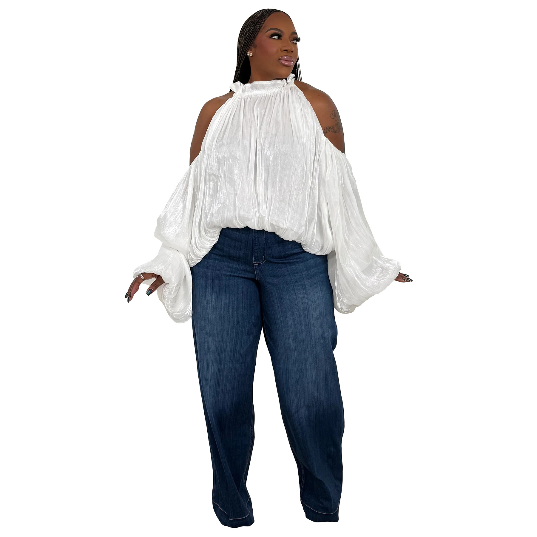 This Women Fall Lace-Up Off-Shoulder Lantern Sleeve Top With Chiffon Ties Made Of Comfortable And Elastic Fabric. It Is Wholesale Sexy Plus Size Tops For Women. With The Gradual Rise Of Feminist Awareness, The Mainstream Fashion Of "Beauty With Thinness" In The Past Can No Longer Dominate, Global Lover Advocates That No Matter Whether The Body Is Thick Or Thin, We Are The Most Unique Existence. Fat Girls Can Also Show Off Their Figure Generously. Global Lover Offer All Kinds Of Wholesale Plus Size Blouses And Shirts At Cheap Price And High Quality.