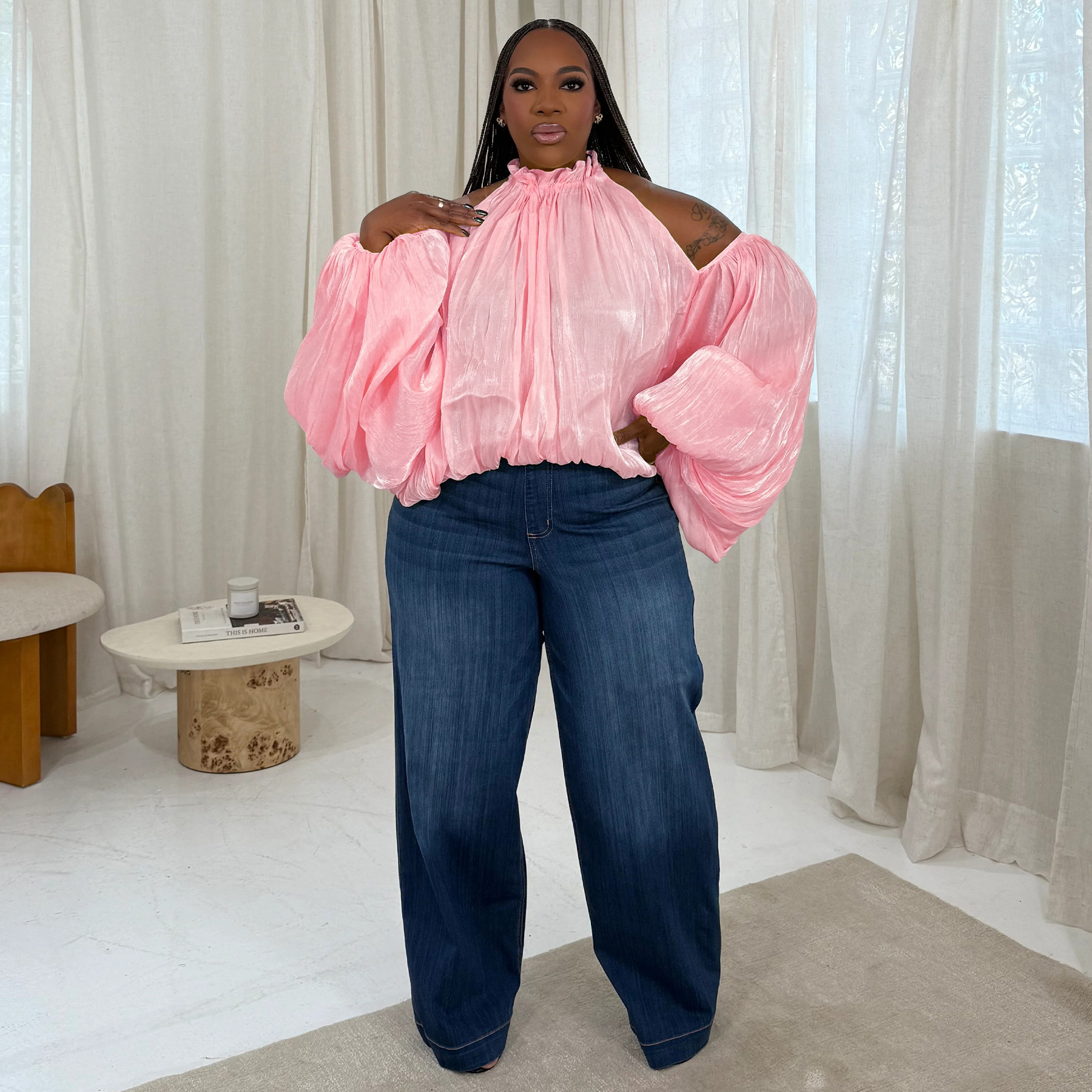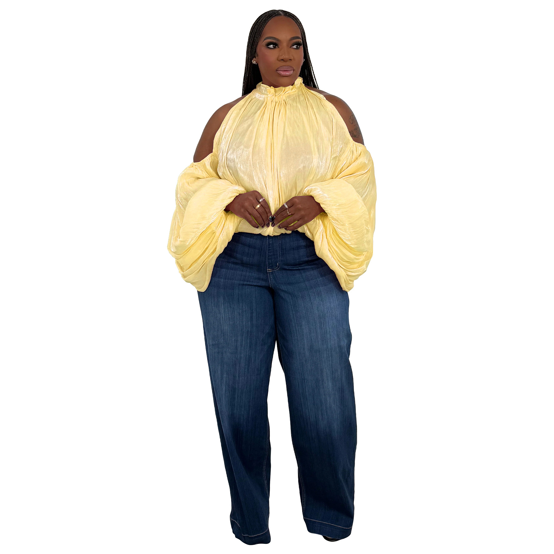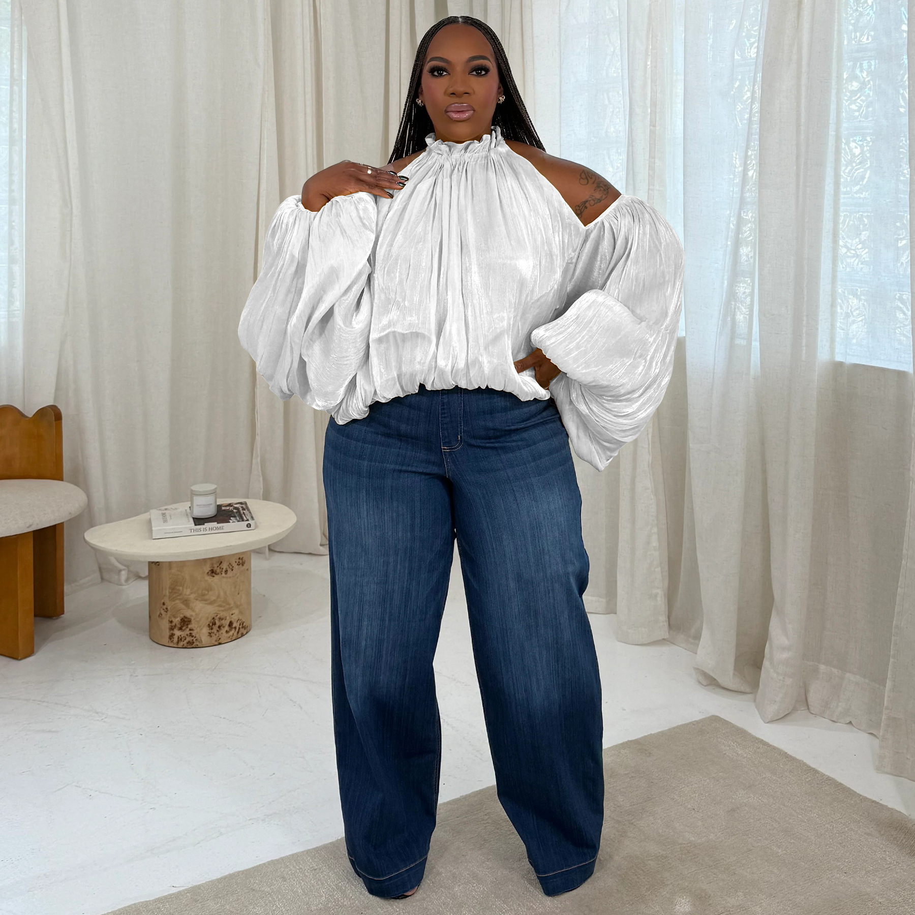 This Women Fall Lace-Up Off-Shoulder Lantern Sleeve Top With Chiffon Ties Made Of Comfortable And Elastic Fabric. It Is Wholesale Sexy Plus Size Tops For Women. With The Gradual Rise Of Feminist Awareness, The Mainstream Fashion Of "Beauty With Thinness" In The Past Can No Longer Dominate, Global Lover Advocates That No Matter Whether The Body Is Thick Or Thin, We Are The Most Unique Existence. Fat Girls Can Also Show Off Their Figure Generously. Global Lover Offer All Kinds Of Wholesale Plus Size Blouses And Shirts At Cheap Price And High Quality.
