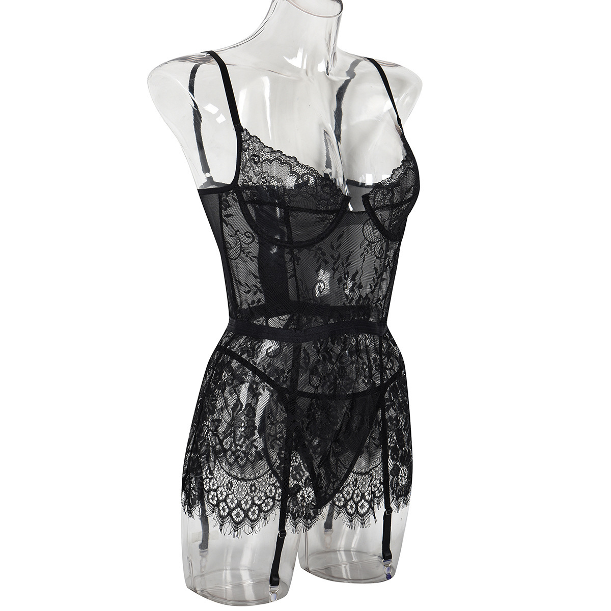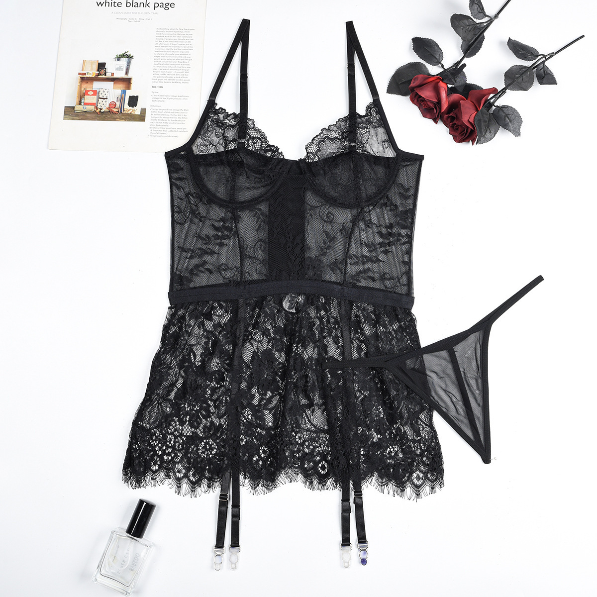 Copy| Product Name | Women Lace Print Camisole See-Through Irregular Two-Piece Sexy Lingerie |