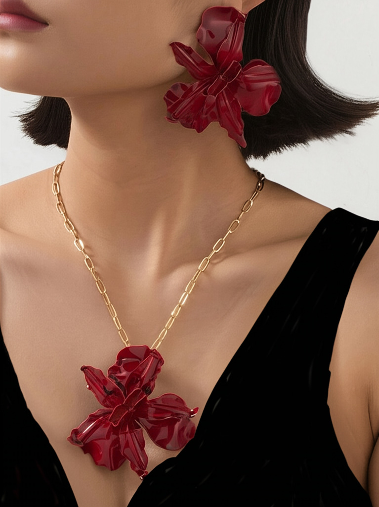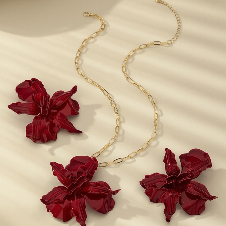 | Product Name | Women Large Flower Pendant Necklace Earrings Jewelry |