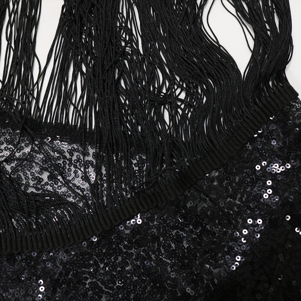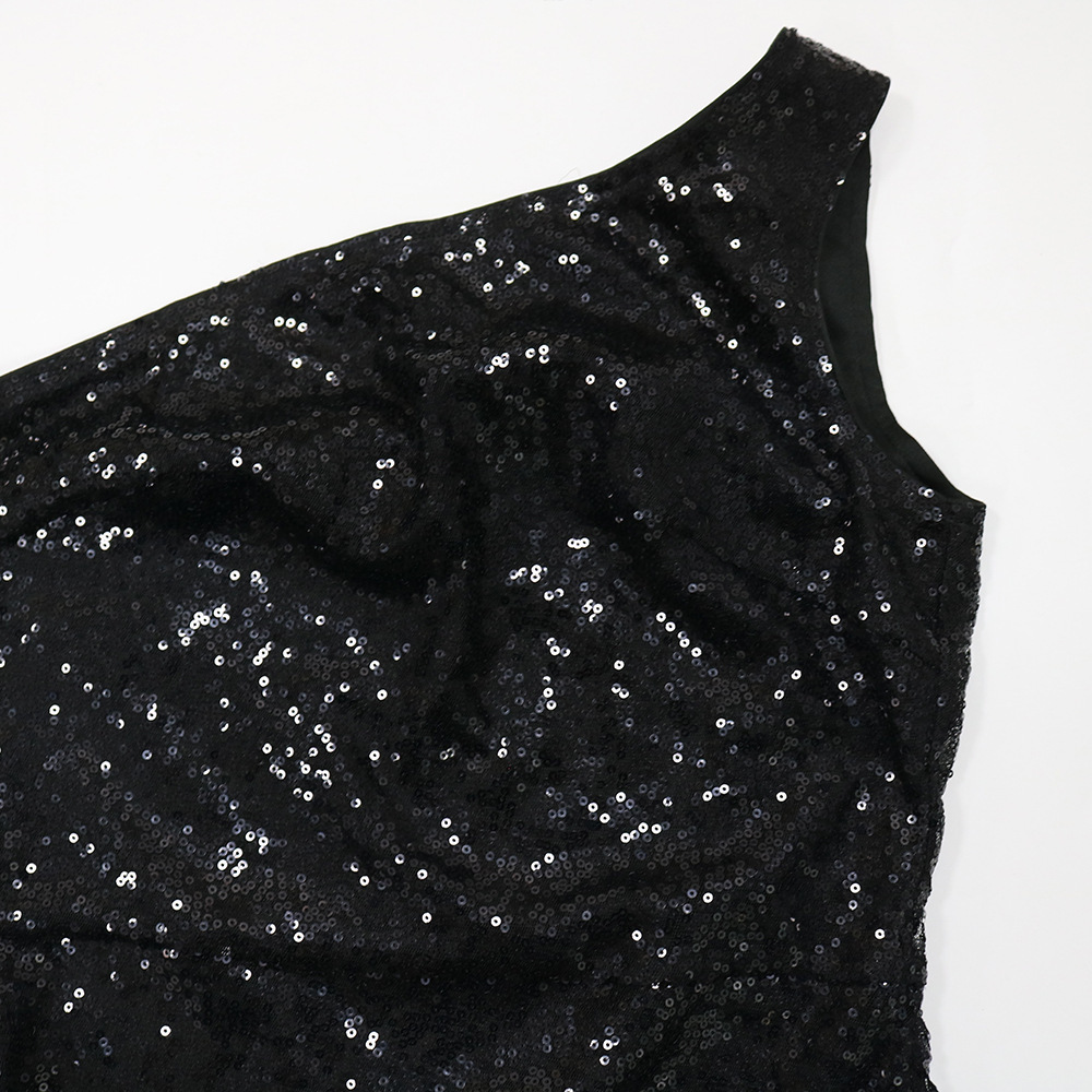 Copy| Product Name | Women One-Shoulder Asymmetrical Beaded Sequin Fringed Dress |
