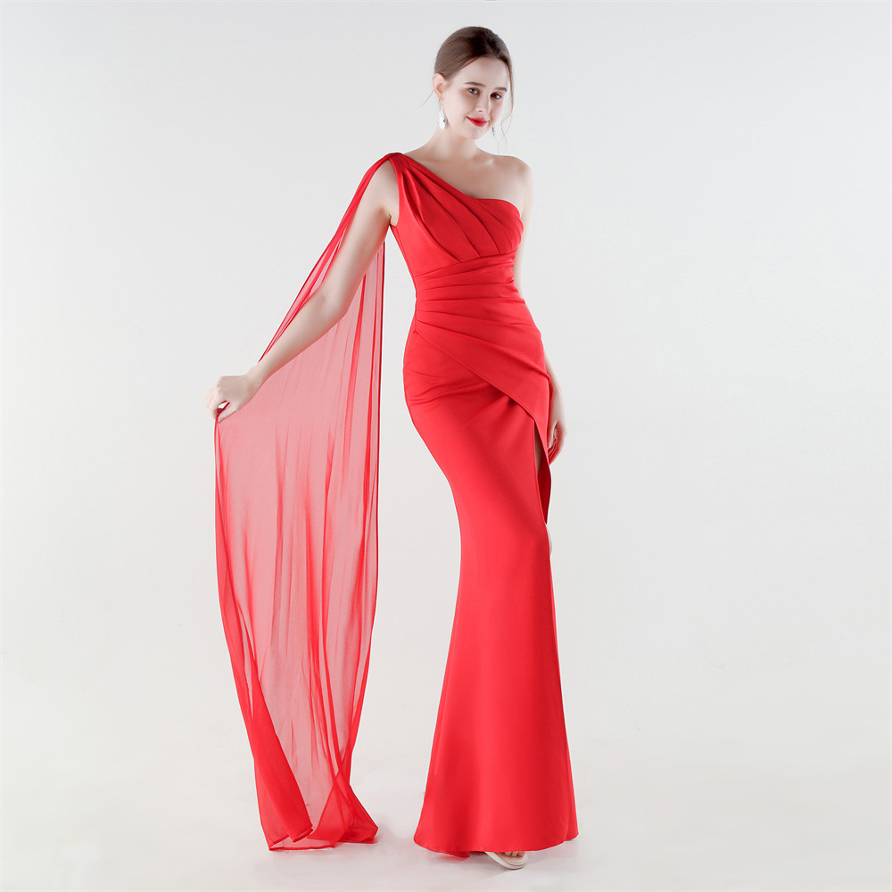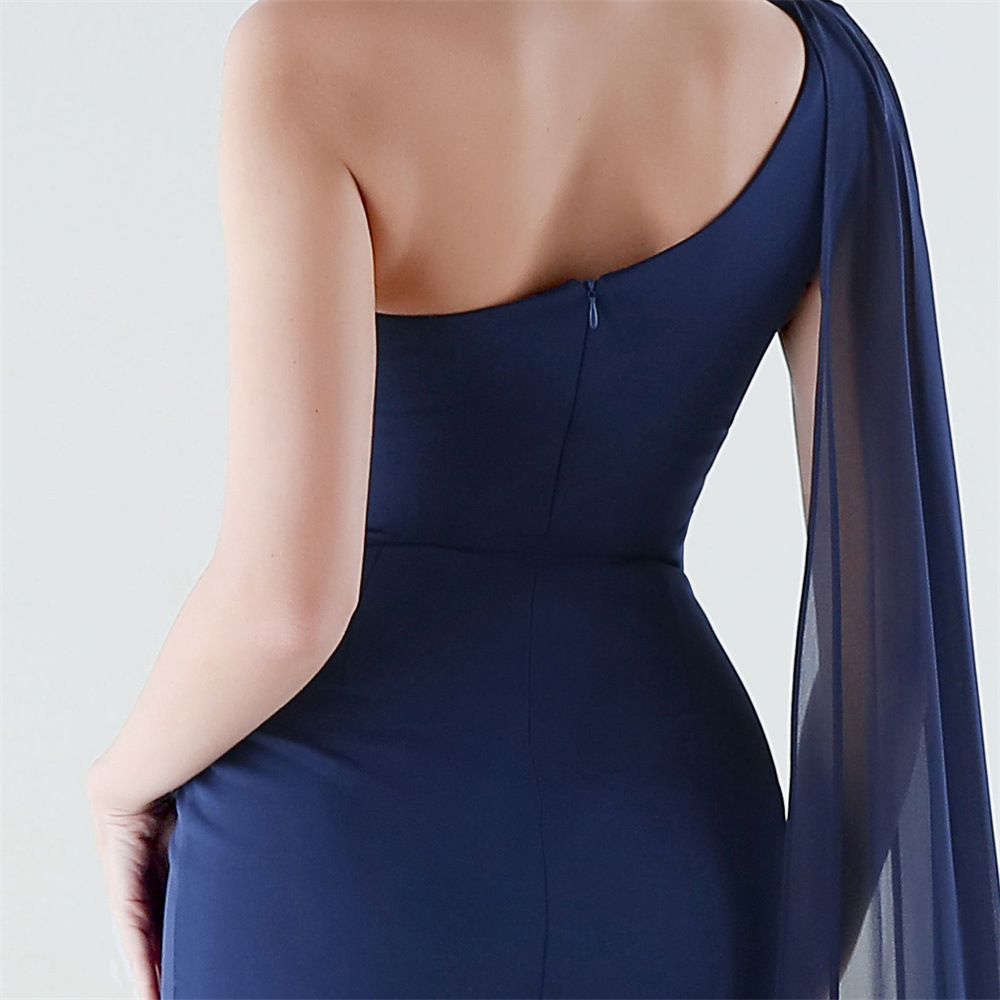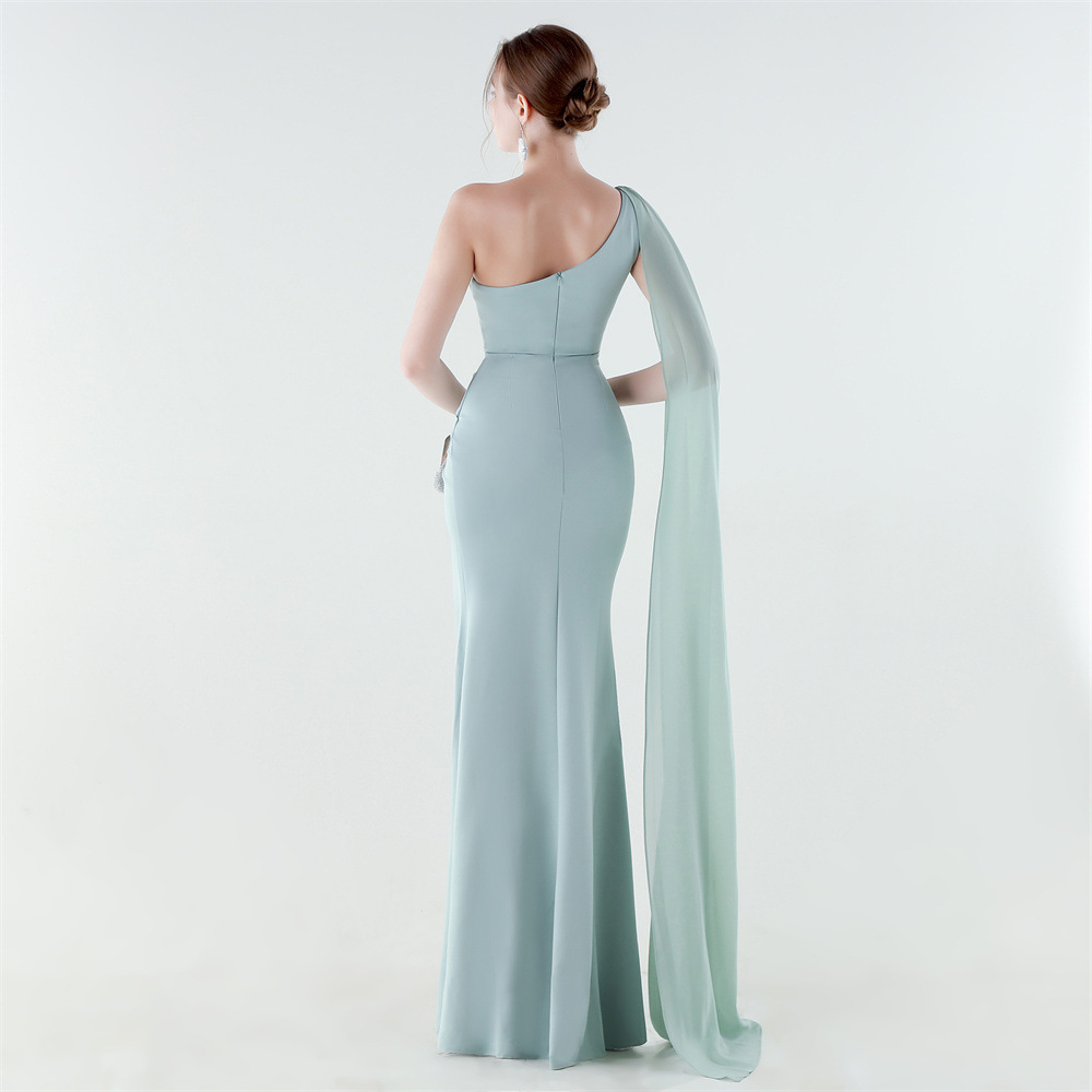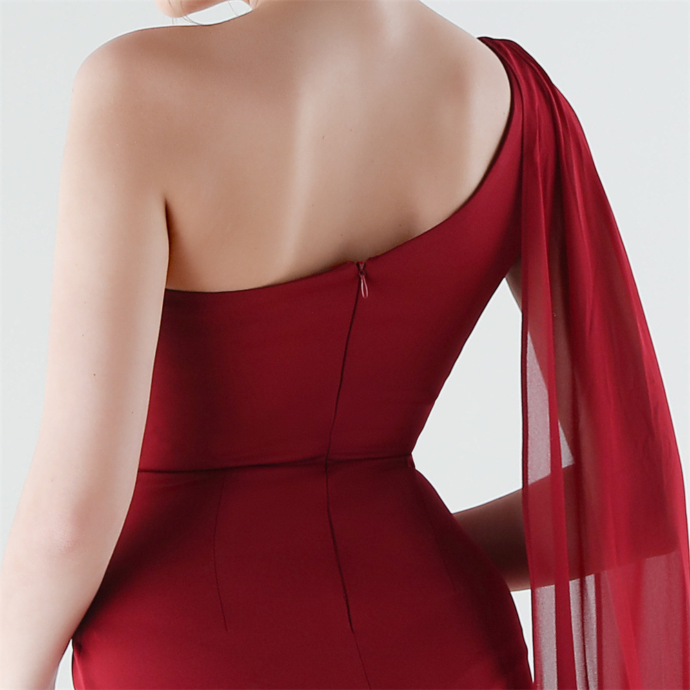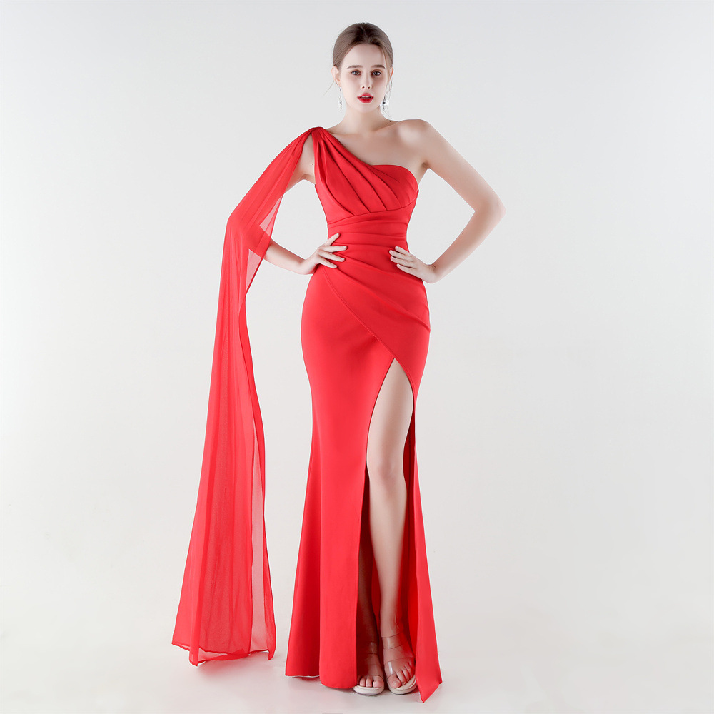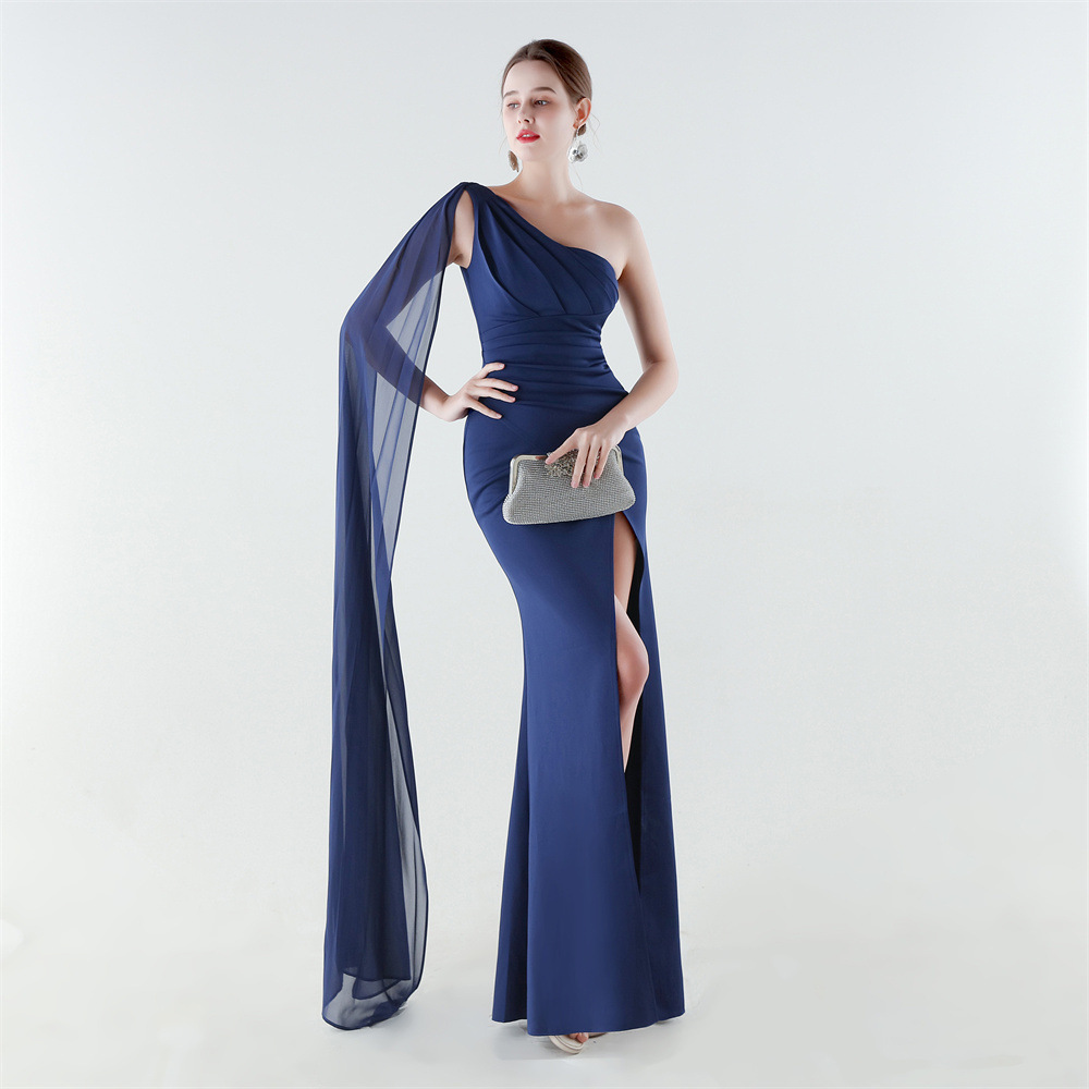 Copy| Product Name | Women One-Shoulder Flowing Ribbon Slit Mermaid Evening Dress |