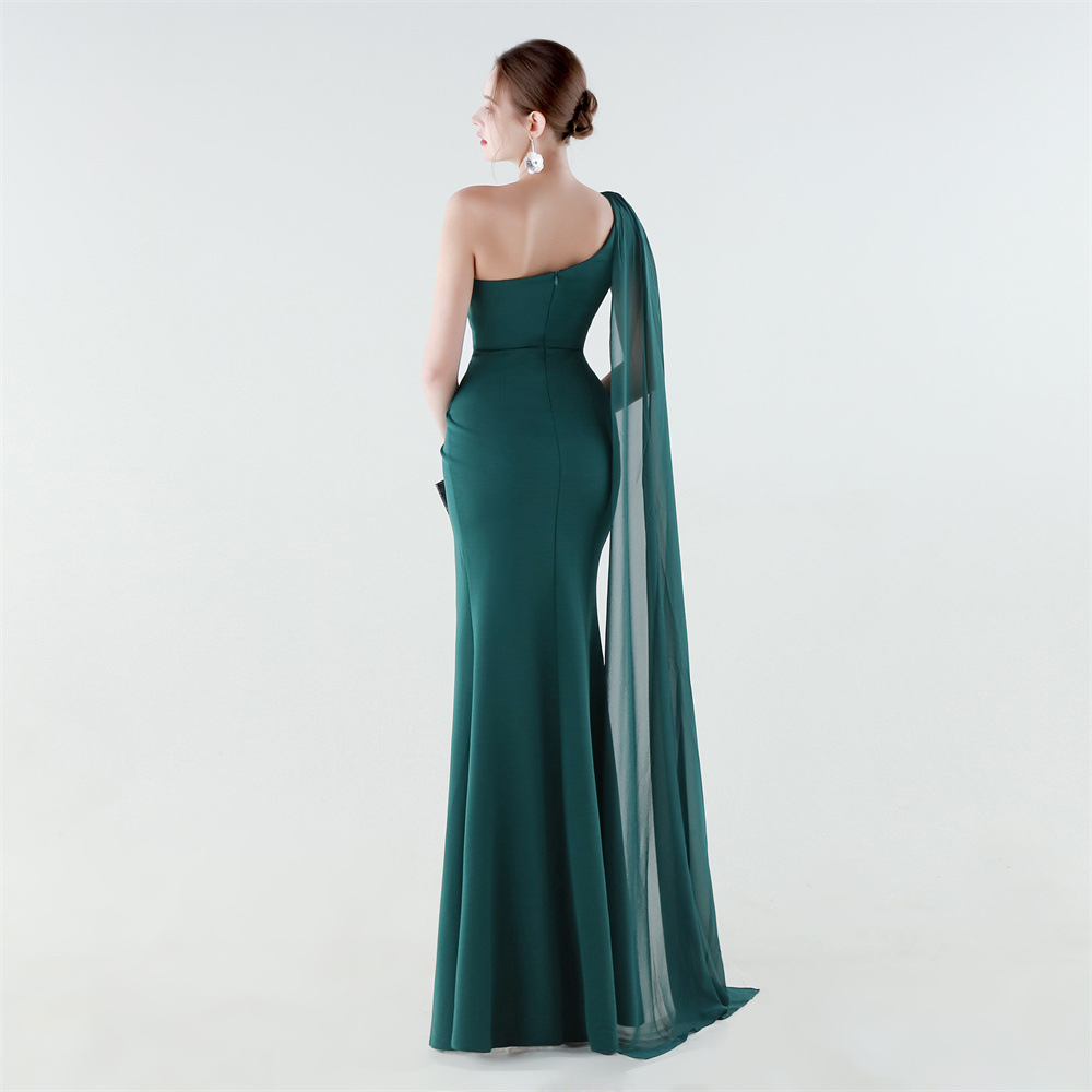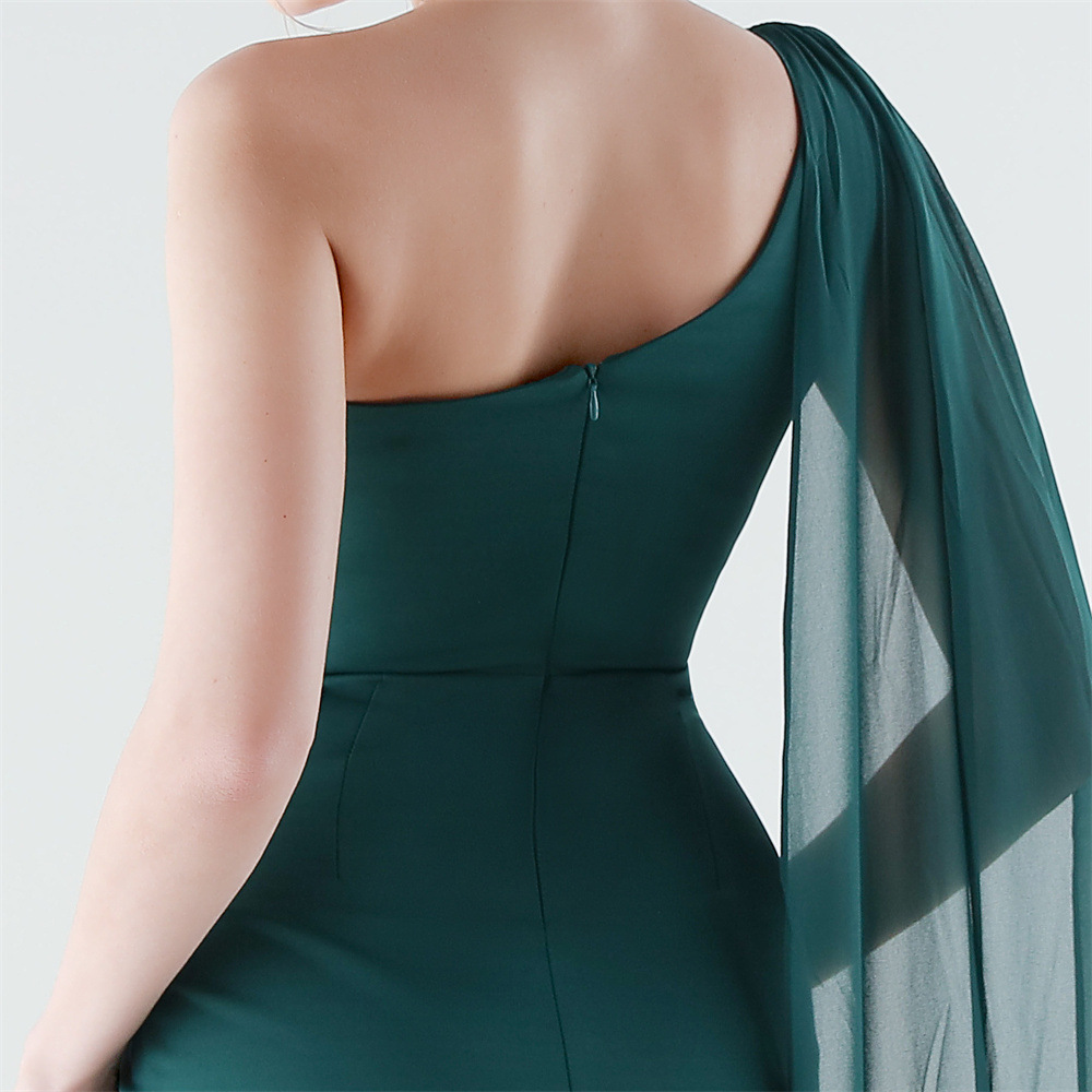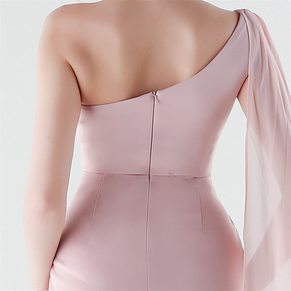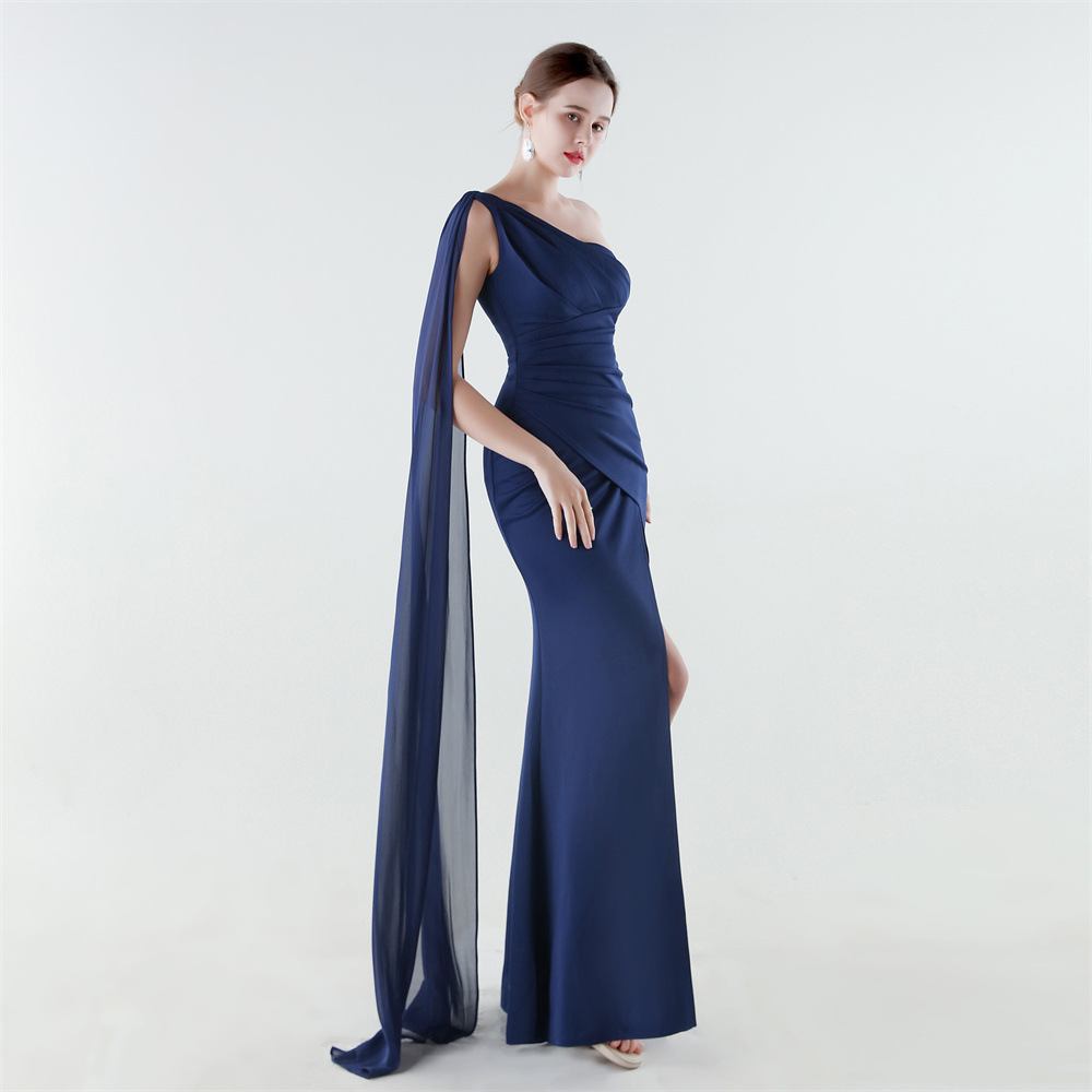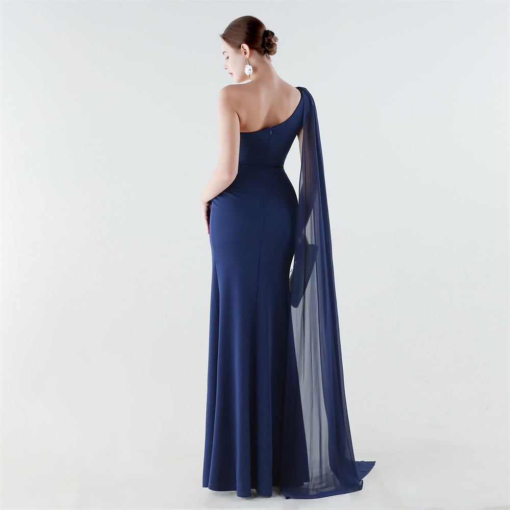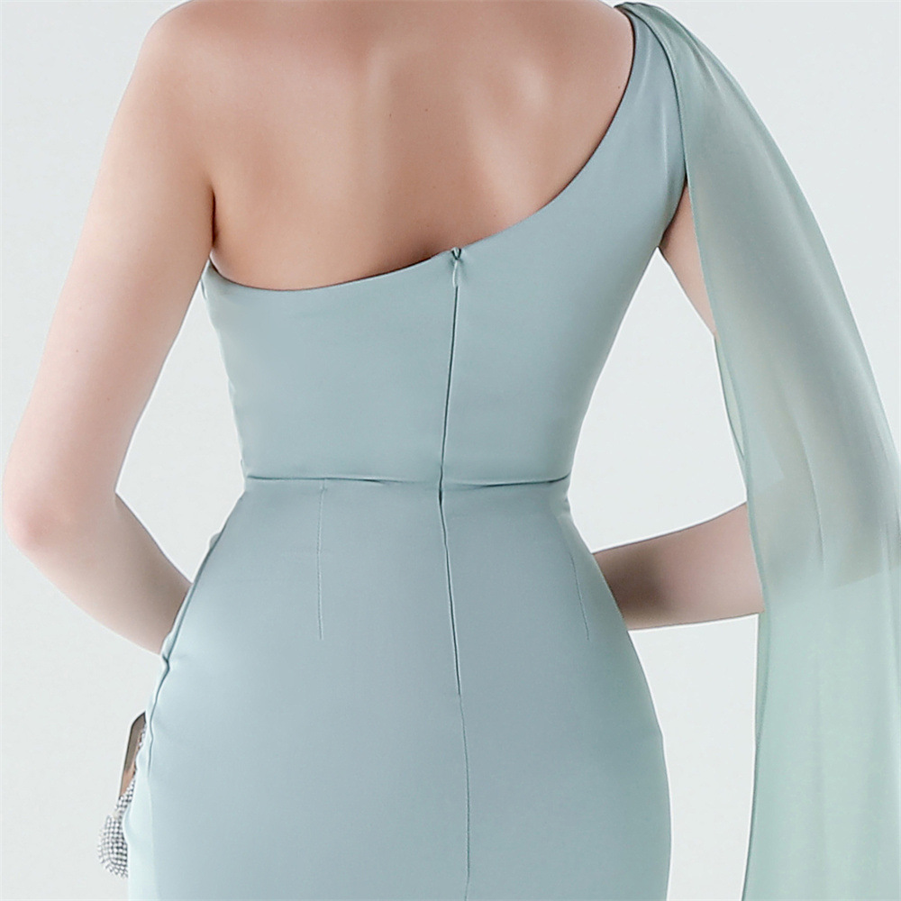 Copy| Product Name | Women One-Shoulder Flowing Ribbon Slit Mermaid Evening Dress |