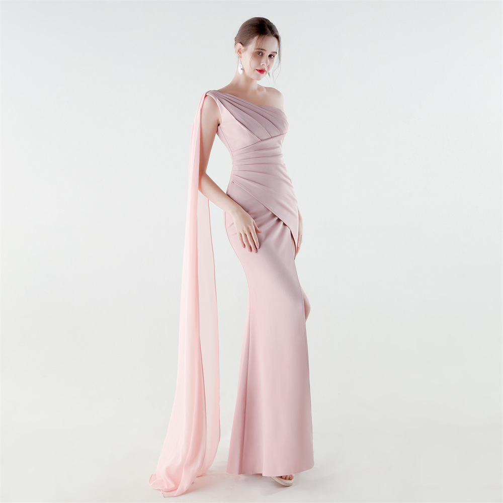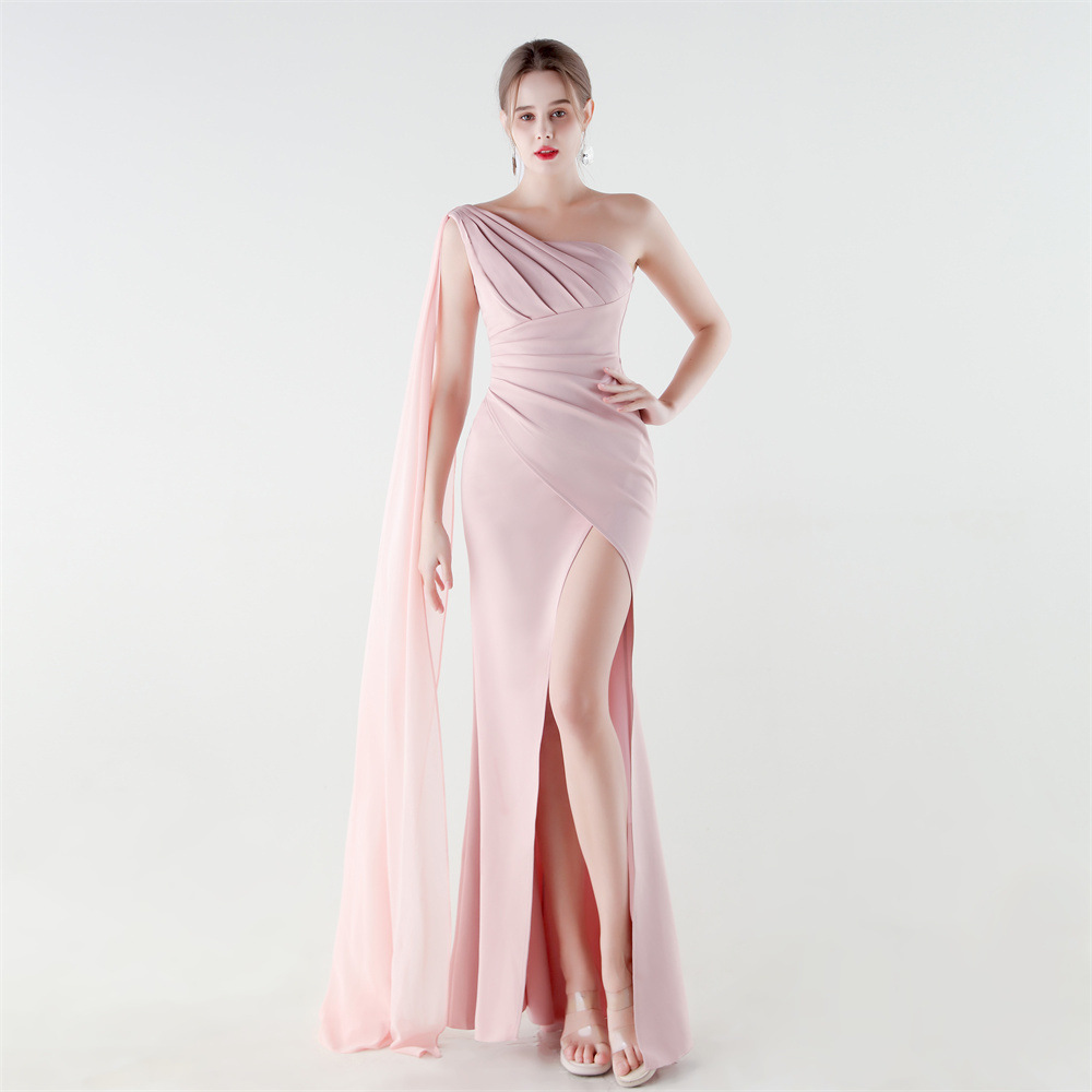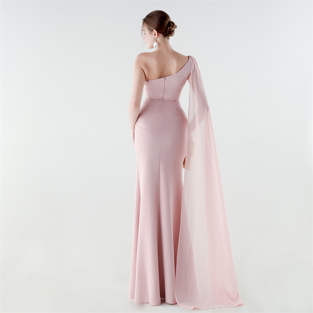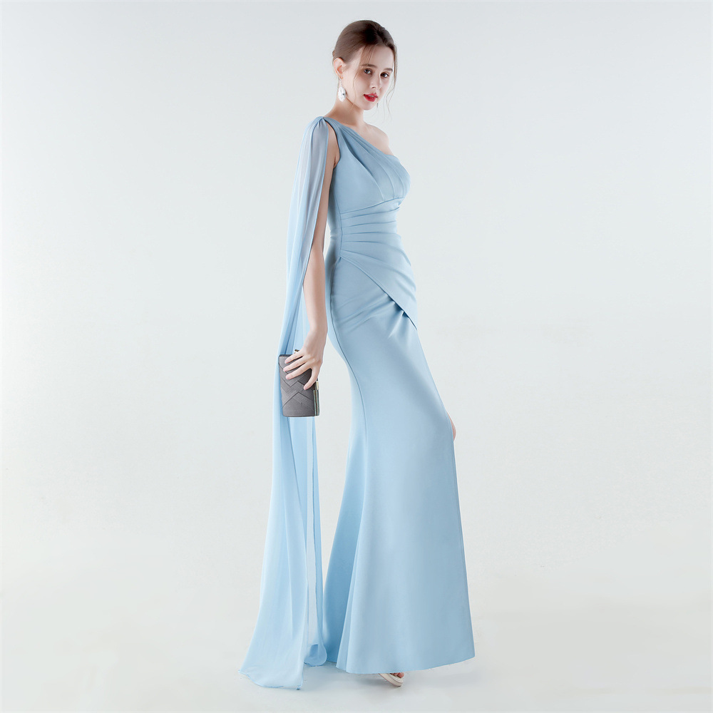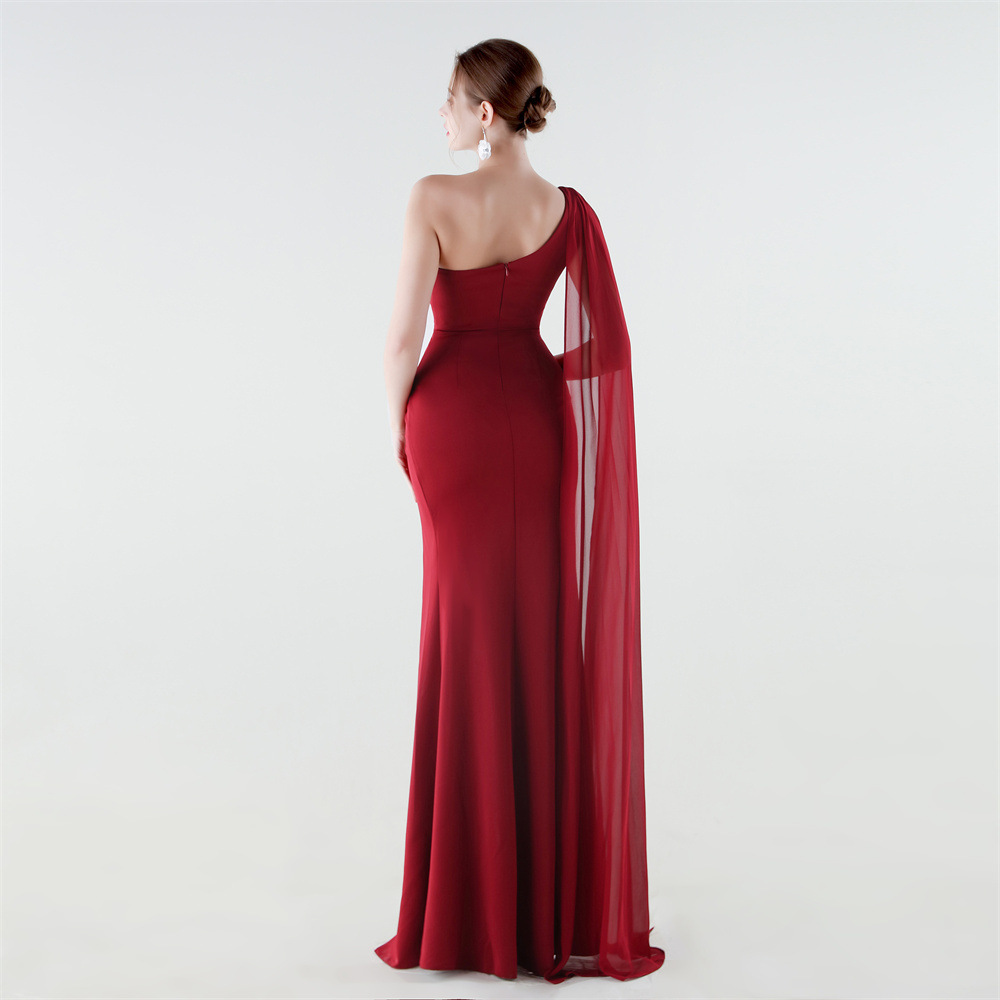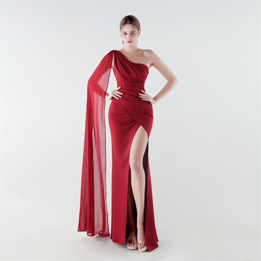 Copy| Product Name | Women One-Shoulder Flowing Ribbon Slit Mermaid Evening Dress |