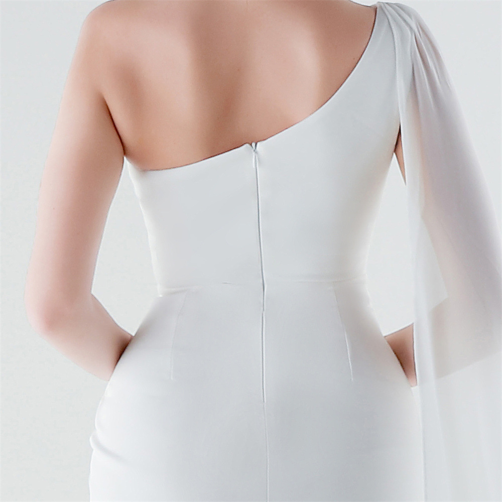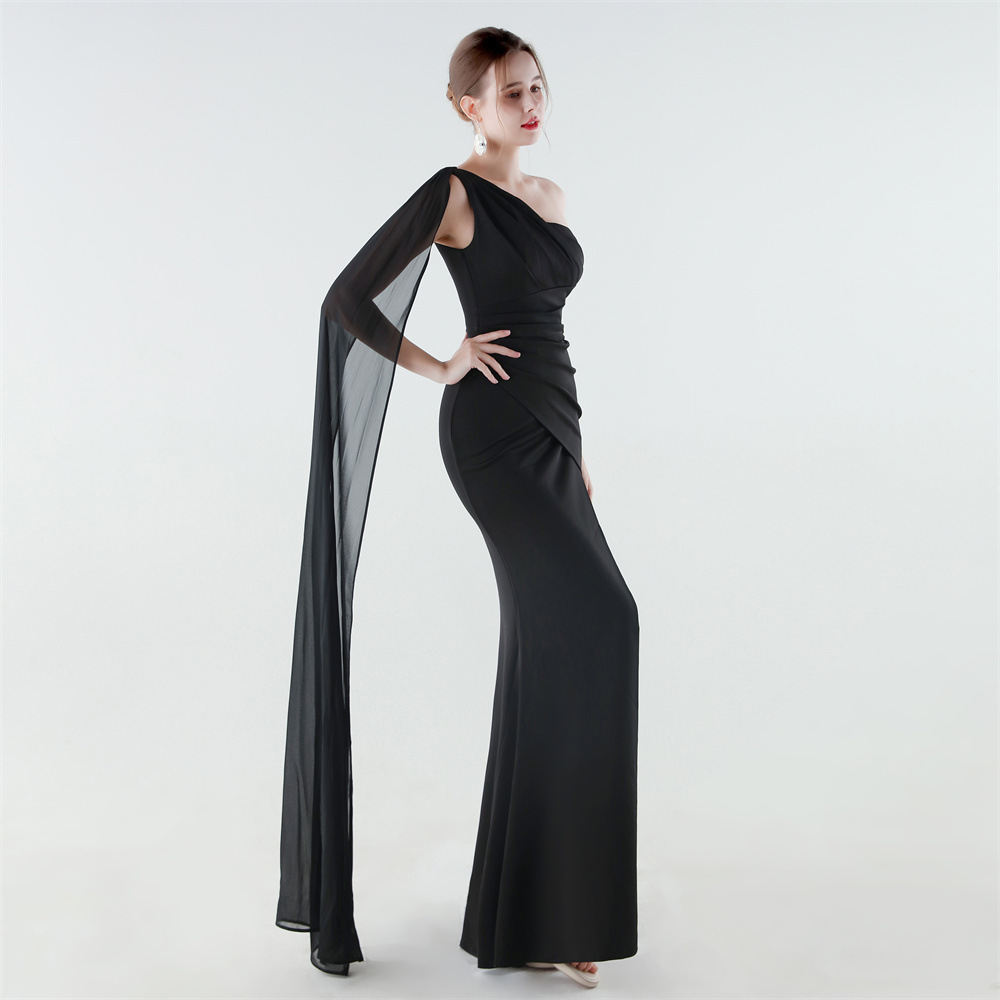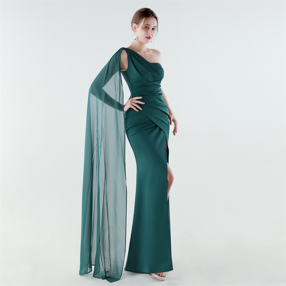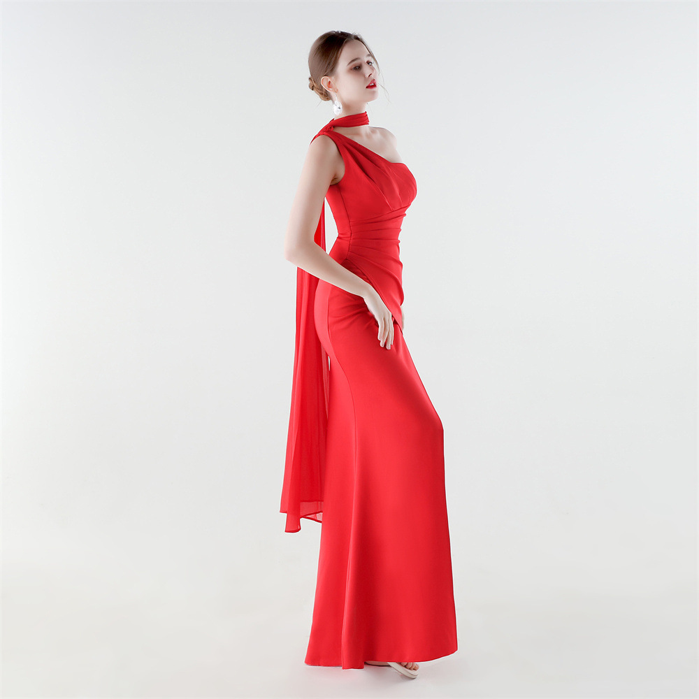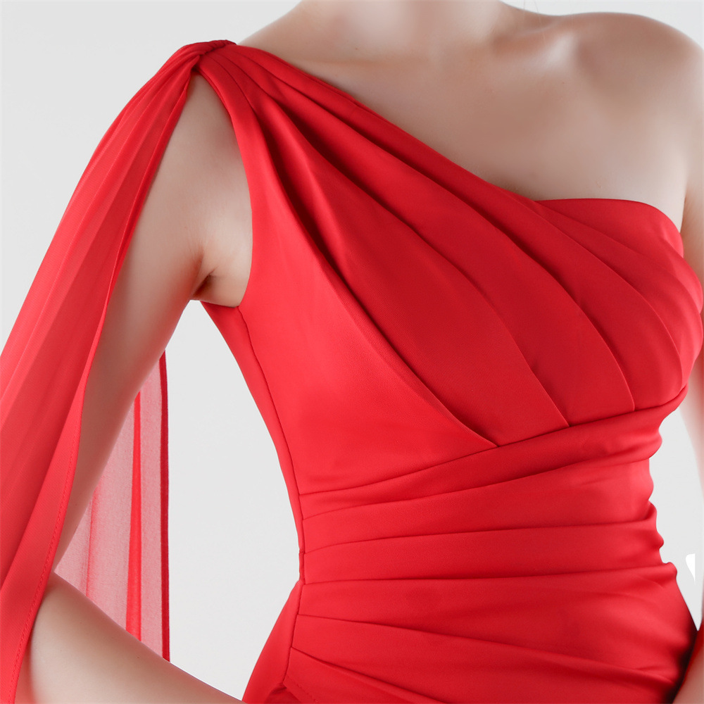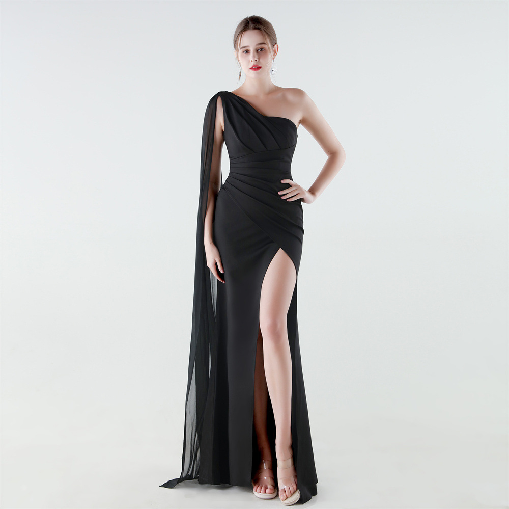 Copy| Product Name | Women One-Shoulder Flowing Ribbon Slit Mermaid Evening Dress |
