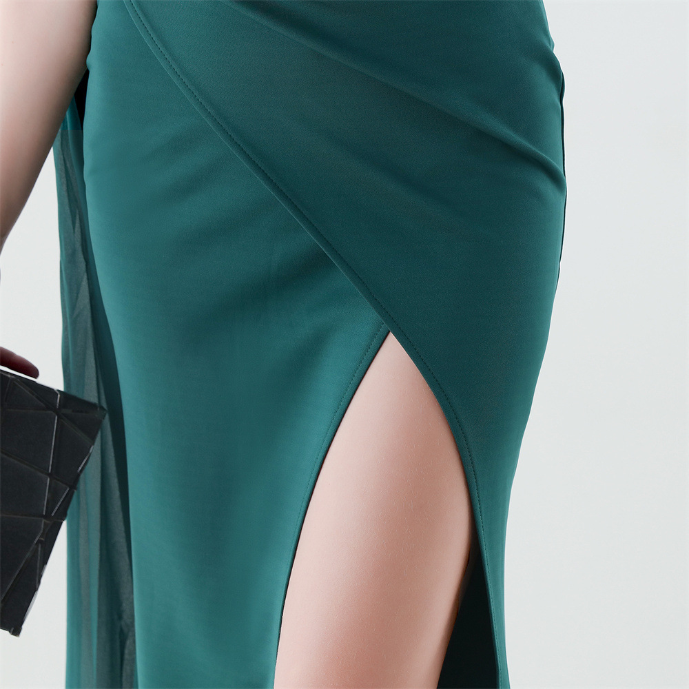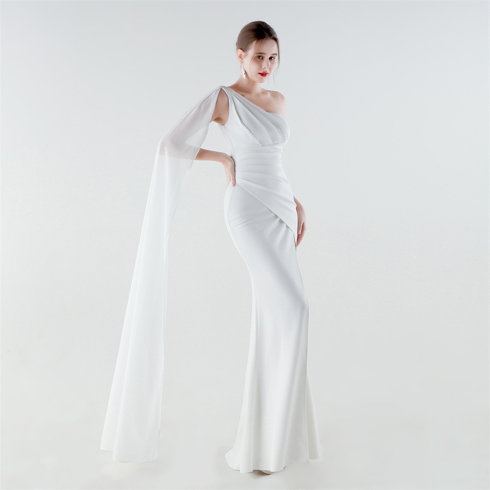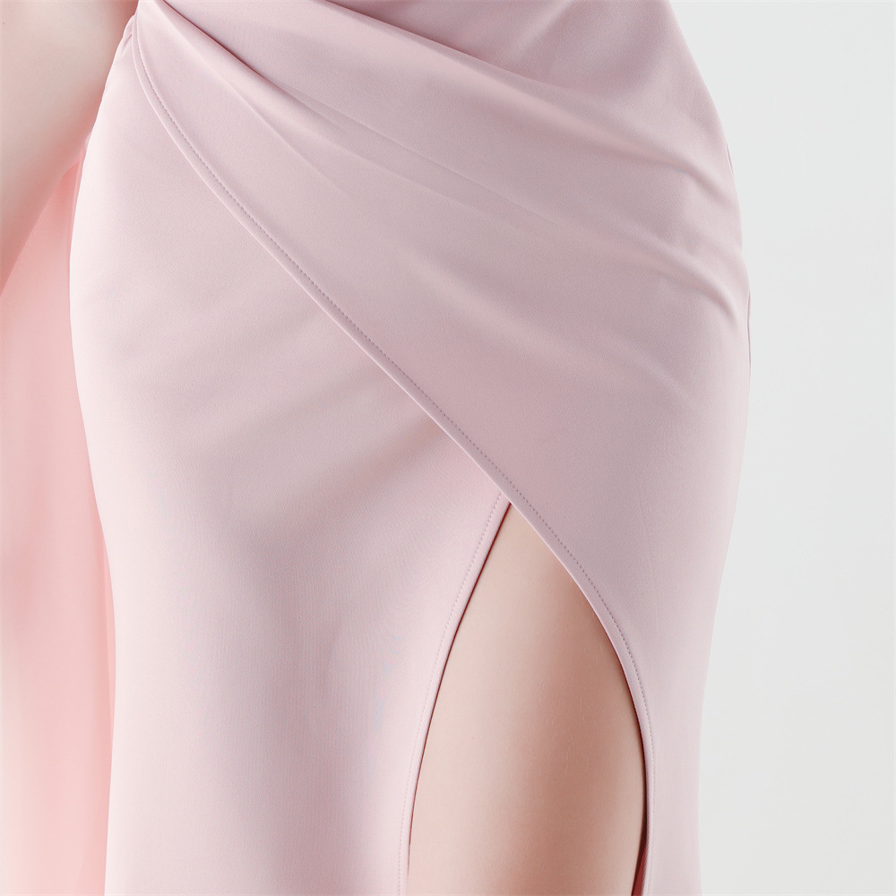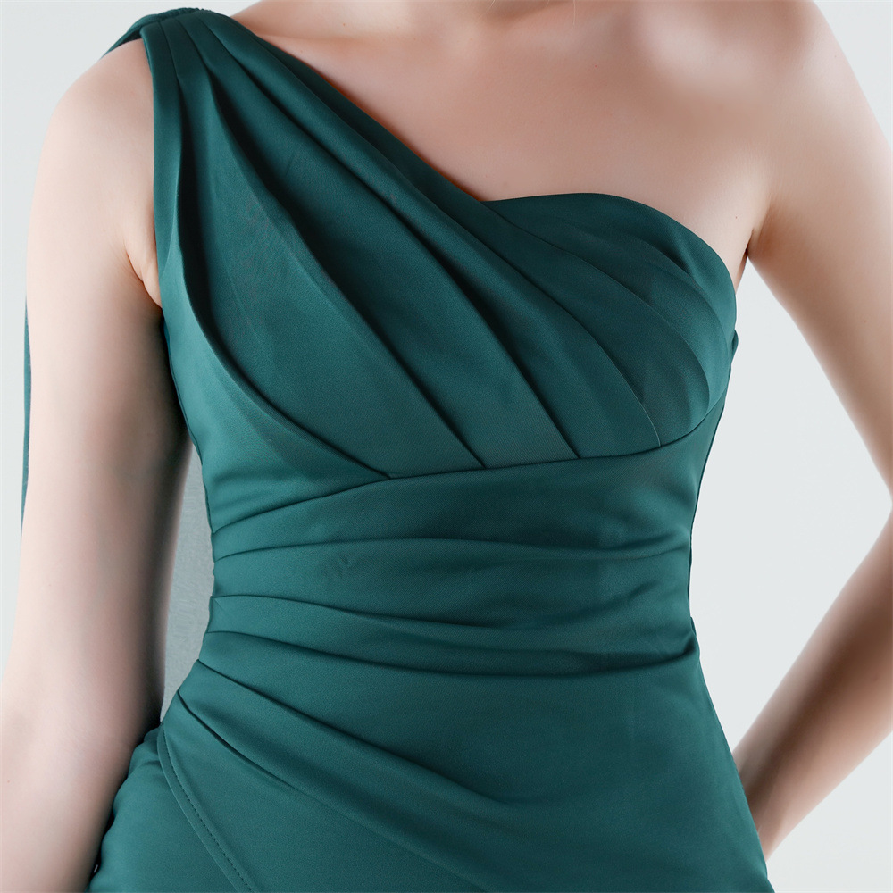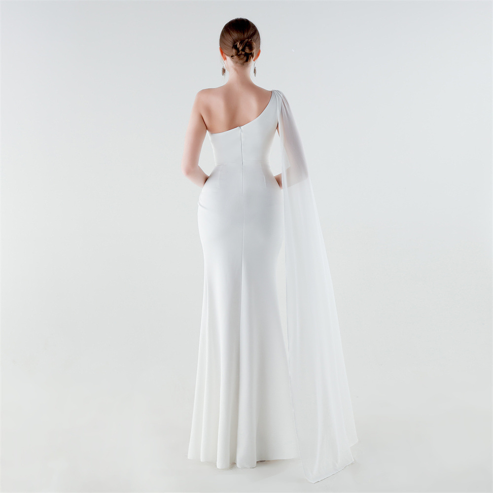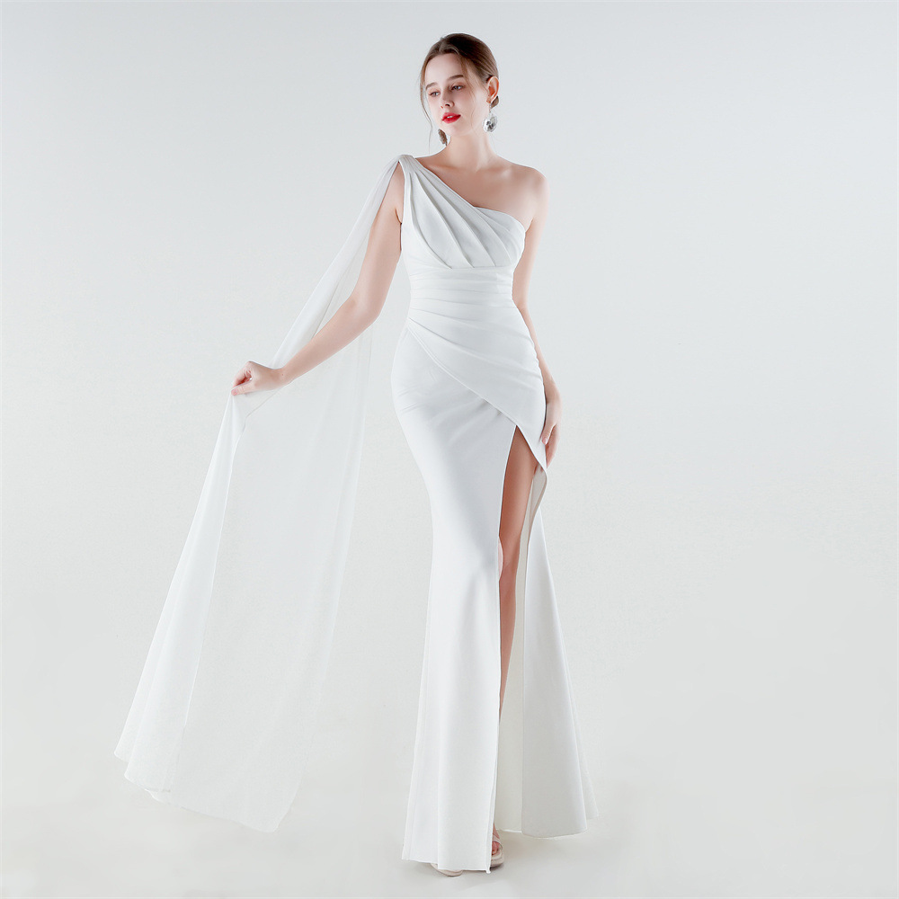 Copy| Product Name | Women One-Shoulder Flowing Ribbon Slit Mermaid Evening Dress |