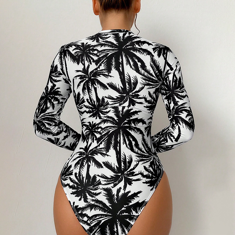 Copy| Product Name | Women Printed Long Sleeve Zipper Bikini Beach One-Piece Swimwear |