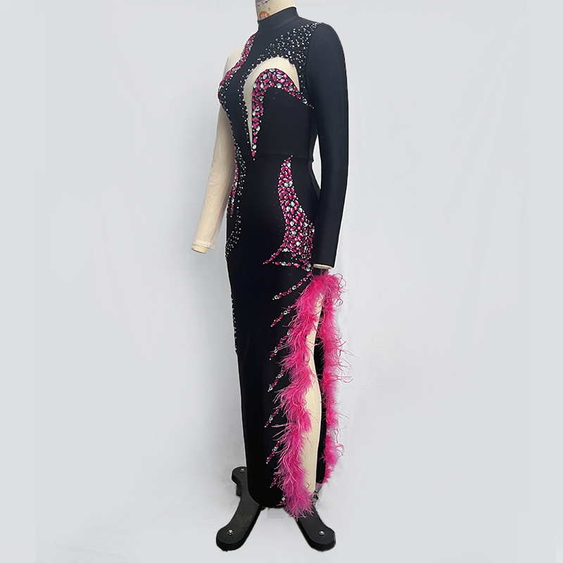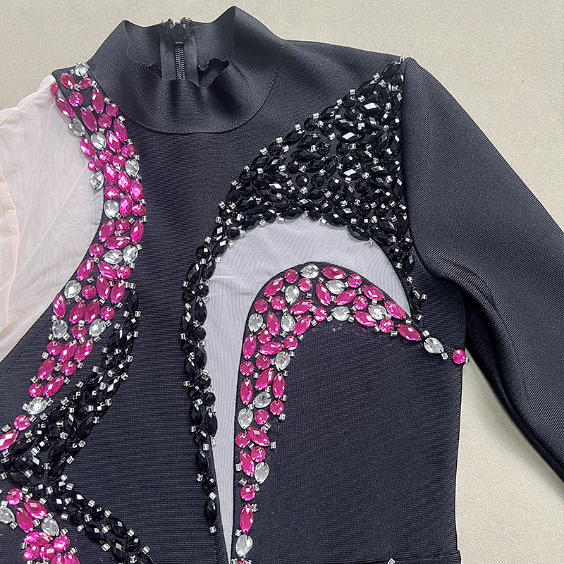 Copy| Product Name | Women Rose Rhinestone Feather Bandage Dresses |