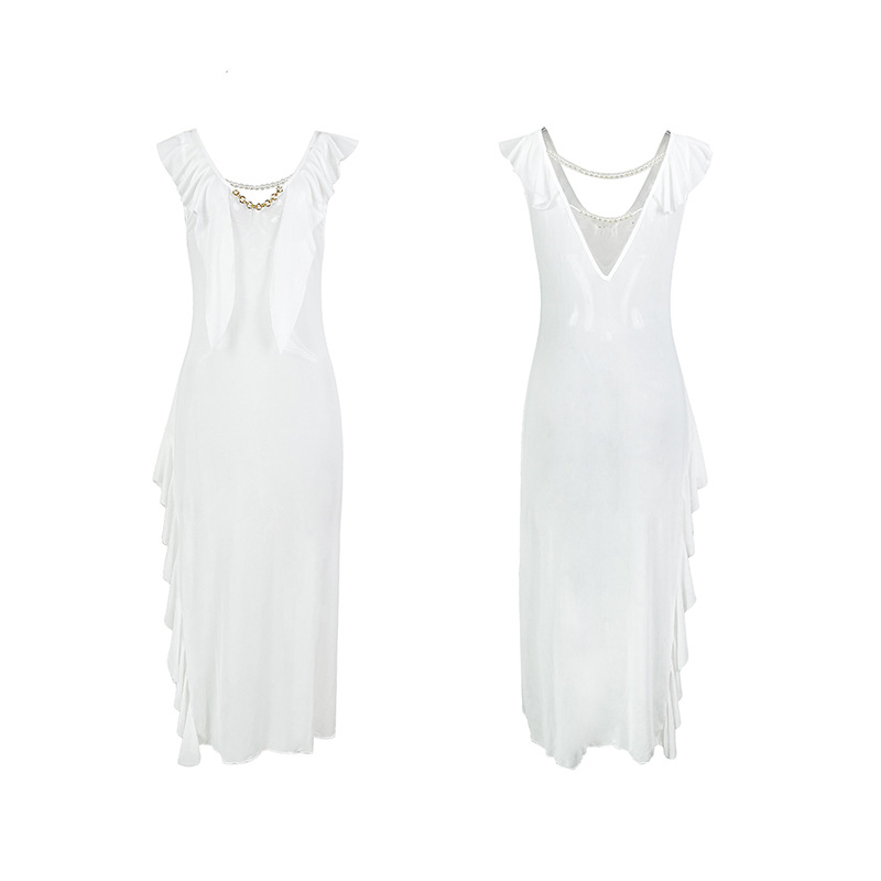 Copy| Product Name | Women Sexy Mesh See-Through Nightgown strap pearl nightdress |